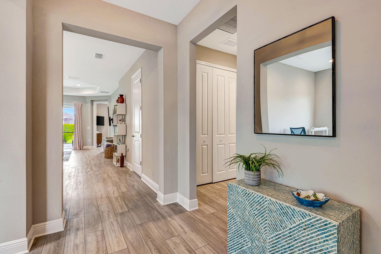 Bem-vindo a um dos modelos de villa mais desejáveis da comunidade de Canoe Creek, procurada. Esta casa de 2 quartos + den tem apenas dois anos e mostra atualizações premium, incluindo pisos de tábuas de vinil de luxo, tetos altos, bancadas de quartzo, uma ilha de cozinha de grandes dimensões e um piso de garagem revestido de epóxi. Projetado com estilo e função, esta villa também apresenta tecnologia doméstica inteligente e acabamentos cuidadosamente selecionados que a tornam realmente pronta. Como residente de Canoe Creek, você desfrutará de comodidades em estilo de resort, como uma piscina e spa particular de vilas, clube com cozinha ao ar livre, centro de fitness de última geração, eventos sociais durante todo o ano e muito mais. A comunidade é lindamente mantida, oferecendo o equilíbrio perfeito de conforto e luxo. Localizado na área de Parrish, em rápido crescimento, perto de Lakewood Ranch, esta casa oferece fácil acesso a São Petersburgo, Sarasota e Tampa - tudo a uma curta distância. Se você está procurando uma vila moderna em uma comunidade vibrante e rica em amenidades, é esse o único a ver.