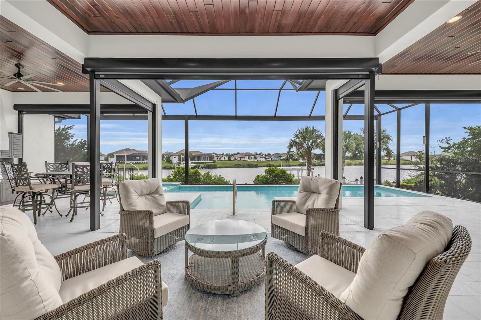 Experimente uma vida excepcional à beira-mar no condomínio fechado de The Islands, no rio Manatee. Construída em 2019, esta residência personalizada em frente ao canal está situada em quase meio acre na Zona de Inundação X preferida e oferece acesso direto ao Rio Manatee, à Hidrovia Intracoastal e ao Golfo do México - sem necessidade de sistema de bloqueio ou elevador. Uma doca TREX privada com elevador de barco de 16.000 libras, água e eletricidade fornece a configuração ideal para passeios de barco, jet ski e caiaque direto do seu quintal. Projetada para estilo e funcionalidade, a casa possui janelas e portas de impacto de furacão, tetos de 3,6 metros, piso de cerâmica neutro e uma planta de quarto dividido com 3 quartos, 3 banheiros, uma sala dedicada e uma grande sala de bônus. A cozinha em conceito aberto está equipada com eletrodomésticos GE Café, cooktop de indução, ilha grande, bancada de quartzo, armários personalizados e adega refrigerada. Portas de vidro deslizantes de canto criam uma transição perfeita para a ampla varanda para uma verdadeira vida interna e externa. A varanda com tela transparente oferece vistas tranquilas para o mar e é completa com piscina aquecida e spa, cozinha ao ar livre, fogueira e telas motorizadas contra furacões para conforto e proteção. A garagem de grandes dimensões oferece amplo armazenamento para veículos, equipamentos e equipamentos recreativos. As características adicionais incluem um aquecedor solar de piscina e ancoragem designada para jet ski. Os residentes têm acesso ao River Lodge, um espaço de encontro comunitário com academia, sala grande, área de bar, mesas de jogos, fogueira ao ar livre, quadra de bocha, putting green e doca comunitária. Golfe opcional e associações sociais estão disponíveis no River Wilderness Golf & Country Club. Sem taxas de CDD. Convenientemente localizada a apenas 5 km do Lakewood Ranch, com fácil acesso aos principais aeroportos, lojas, restaurantes e praias da Costa do Golfo, esta propriedade oferece uma rara oportunidade de desfrutar de passeios de barco, vida luxuosa e um estilo de vida de primeira linha, tudo em um único ambiente.