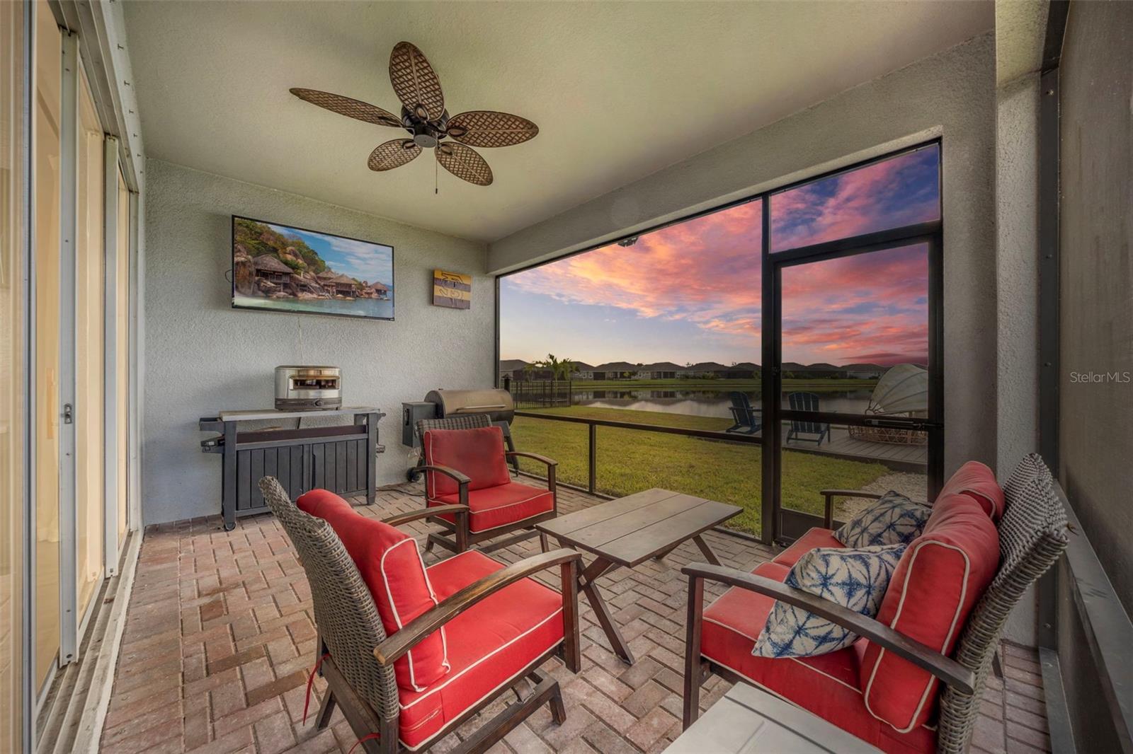 Bem-vindo a esta casa à beira do lago lindamente decorada na desejável comunidade North River Ranch de Parrish, Flórida. Construída em 2021, esta residência de 4 quartos e 3 banheiros combina perfeitamente elegância moderna, conforto e funcionalidade – oferecendo o melhor da Flórida vivendo em um bairro vibrante e familiar. A partir do momento em que você chega, a atratividade da casa brilha com uma entrada pavimentada, paisagismo maduro e iluminação externa moderna. Ao entrar, você é saudado por um piso de vinil cinza, semelhante a madeira, que flui pelas principais áreas de estar, criando um cenário elegante e elegante. Os quartos apresentam carpetes macios para maior conforto, enquanto os banheiros possuem piso de cerâmica durável e acabamentos refinados. A cozinha é um verdadeiro destaque - um sonho para qualquer chef caseiro - apresentando armários de madeira com ferragens modernas, bancadas de quartzo, uma espaçosa ilha de cozinha com assentos, eletrodomésticos de aço inoxidável, uma estação de café dedicada e armário abundante para todas as suas necessidades de armazenamento. Além das áreas de estar e jantar de conceito aberto, esta casa inclui uma sala flexível versátil – ideal para home office, sala de jogos ou academia pessoal. Cada quarto oferece armários grandes, persianas e ventiladores de teto para garantir conforto durante todo o ano. A suíte principal impressiona com seu teto em caixotões, banheiro privativo com pias duplas e chuveiro moderno com box de vidro. Saia para o seu próprio retiro privado à beira do lago. Um pátio pavimentado e protegido oferece o local perfeito para relaxar e apreciar as vistas tranquilas, enquanto um deck ao ar livre deixa você ainda mais perto da água - ideal para aproveitar o ar fresco e o sol da Flórida o ano todo. Localizados dentro da comunidade planejada de North River Ranch, os residentes desfrutam de 3 piscinas em estilo resort, clube, academia, sala de jogos, campo esportivo, parque para cães, quilômetros de trilhas panorâmicas para caminhada/ciclismo e playgrounds. Com um calendário social vibrante e vários eventos comunitários, você experimentará o que há de melhor na vida comunitária. Convenientemente localizado a poucos minutos de escolas de primeira linha, como Barbara A. Harvey K-8, com seu novo campus superior bem na comunidade e a Parrish Community High School! A poucos minutos do recém-inaugurado HCA Florida North River Ranch Emergency and Market Walk com acesso a cafés, opções de restaurantes, Publix Super Market, dentistas e muito mais! Fácil acesso à I-75 e à rodovia 301. A apenas uma curta distância de carro da cidade de Tampa, São Petersburgo, Sarasota e das belas praias da Costa do Golfo. Não perca esta oportunidade de possuir uma casa pronta para morar em uma das comunidades mais desejáveis de Parrish. Agende sua exibição privada hoje mesmo!
