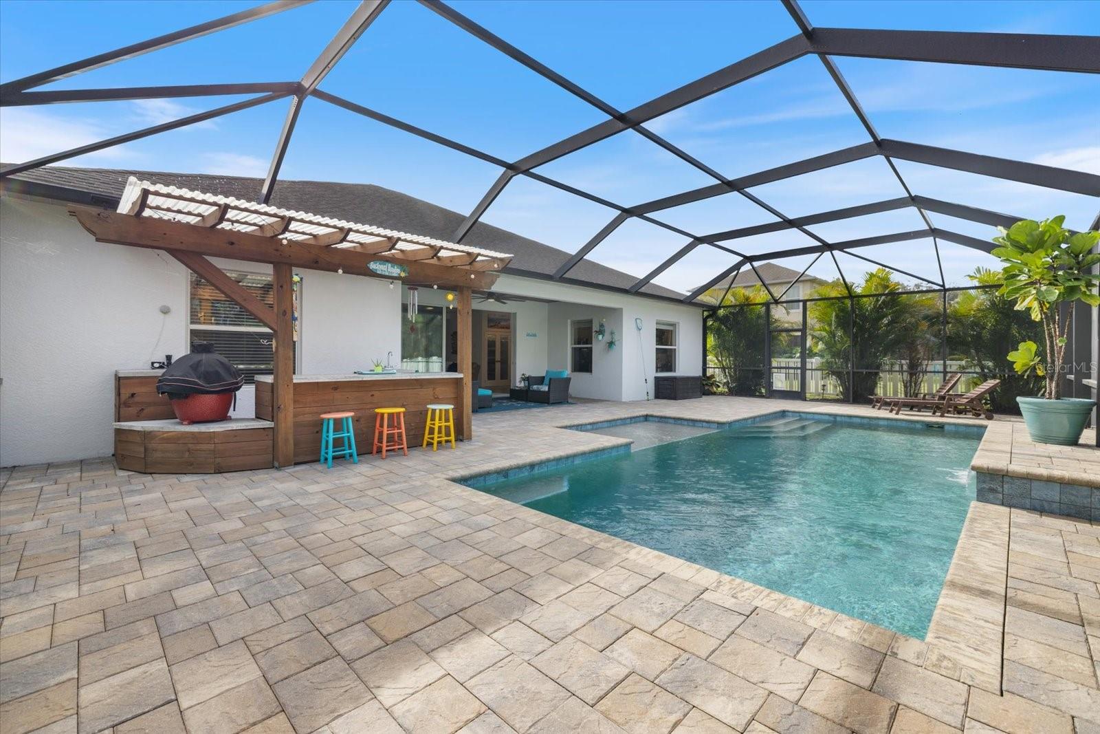 Bem-vindo à sua fuga serena em 16314 Rivers Reach Boulevard, uma casa cativante de 3 quartos e 2 banheiros situada na cobiçada comunidade de River’s Reach. Com 2.239 pés quadrados de espaço cuidadosamente projetado em um amplo lote de 18.003 pés quadrados, esta casa combina perfeitamente elegância moderna com vida tranquila. Entre em uma planta aberta projetada para relaxamento e entretenimento. A espaçosa cozinha é o sonho de um chef, completa com armários personalizados, eletrodomésticos de aço inoxidável, bancadas de granito, backsplash de azulejos de vidro e uma grande ilha central. A grande sala, adornada com tetos de bandeja, flui facilmente para um deslumbrante oásis ao ar livre. Seu retiro no quintal oferece piscina privativa, Tiki Bar e uma cozinha externa personalizada equipada com churrasqueira/fumante Kamado e geladeira - tudo cercado por exuberantes árvores frutíferas maduras, incluindo manga, banana e cereja de Barbados. O quintal cercado garante conforto para você e seus entes queridos. As atualizações adicionais incluem pisos de garagem revestidos de epóxi, uma cama embutida no espaço de escritório e encantadores tetos de madeira de cipreste na entrada e na varanda. Esta casa inteligente, equipada com tecnologia Google/Wyze, aceita animais de estimação e está localizada em uma comunidade vibrante. Aproveite o acesso a uma piscina comunitária, academia, lançamento de caiaque, playground, quadras de vôlei e muito mais. O fácil acesso às estradas locais e atrações recreativas torna esta casa zen o seu refúgio costeiro perfeito.
