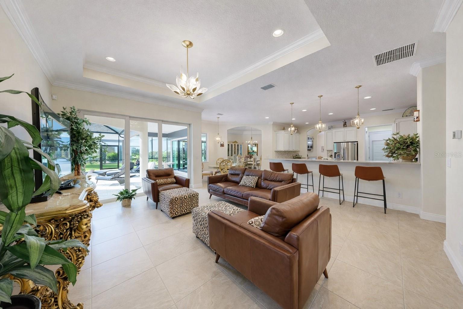 Bem-vindo a um estilo de vida refinado da Flórida, onde design elegante, privacidade e vida interna e externa sem esforço se unem em uma área residencial de quase meio acre apoiada em uma reserva dentro da reserva fechada em Twin Rivers. A partir do momento em que você chega, a impressionante atratividade da casa cativa, com um paisagismo exuberante e bem cuidado, uma ampla entrada pavimentada e uma garagem para três carros. Construída pela Medallion Homes, esta residência oferece mais de 4.600 pés quadrados de área coberta, combinando artesanato atemporal com a paz de espírito moderna, incluindo JANELAS E DESLIZADORES DE IMPACTO DE FURACÃO por toda parte, TELHADO DE TELHA, CALHAS e um novo GERADOR PARA CASA INTEIRA alimentado por um TANQUE DE PROPANO ENTERRADO DE 500 GALÕES. Entre para descobrir detalhes arquitetônicos elegantes, com TETOS DE BANDEJA e MOLDURA DE COROA por toda parte. A frente da casa possui uma sala de jantar formal, uma convidativa sala de estar e um escritório privativo com portas francesas de vidro e estantes embutidas. Ideal para receber convidados ou trabalhar em casa. Na parte de trás, a casa se abre sem esforço para o exterior. Os controles deslizantes da sala de estar, cozinha, suíte principal e sala bônus fornecem acesso perfeito a uma varanda em estilo resort, PISCINA DE ÁGUA SALGADA AQUECIDA e SPA. Cercada por palmeiras exuberantes para maior privacidade, a varanda inclui uma COZINHA AO AR LIVRE, perfeita para refeições ao ar livre, entretenimento ou relaxamento em um retiro tropical. A cozinha é bonita e funcional, com uma grande ilha de cozinha, armários atualizados, bancadas de quartzo, assentos no bar, despensa com prateleiras embutidas e despensa de mordomo. A área de jantar do café é destacada por uma janela de aquário, trazendo um toque de natureza para dentro. A planta dividida oferece privacidade e conforto. A suíte principal é um retiro sereno com controles deslizantes para a piscina, closets duplos e banheiro privativo inspirado em spa com pias duplas, área de maquiagem dedicada, box amplo e banheiro privativo com bidê de porcelana separado. Dois quartos compartilham uma banheira Jack-and-Jill com banheira, enquanto um quarto quarto perto da sala bônus desfruta de um banheiro completo com acesso à piscina e chuveiro. A SALA DE BÔNUS, localizada fora da sala de estar, é uma verdadeira peça de exibição com teto em CAIXO, BAR EMBUTIDO com REFRIGERADOR DE VINHO, dramática PAREDE DE PEDRA EMPILHADA, LAREIRA ELÉTRICA EMBUTIDA e controles deslizantes que abrem diretamente para a varanda e piscina. O lugar perfeito para entreter ou relaxar. Localizada em um condomínio fechado sem taxas de CDD e baixas TAXAS DE HOA QUE INCLUEM CABO E INTERNET, esta propriedade excepcional oferece privacidade rara enquanto permanece perto de Parrish, Bradenton, Lakewood Ranch, lojas e restaurantes de primeira linha e das praias da Costa do Golfo. Esta é a vida refinada da Flórida no seu melhor, onde interiores elegantes, amplos espaços internos e externos e atualizações cuidadosas criam um lugar verdadeiramente extraordinário para chamar de lar. CLIQUE nos links para VÍDEO e TOURS 3D!
