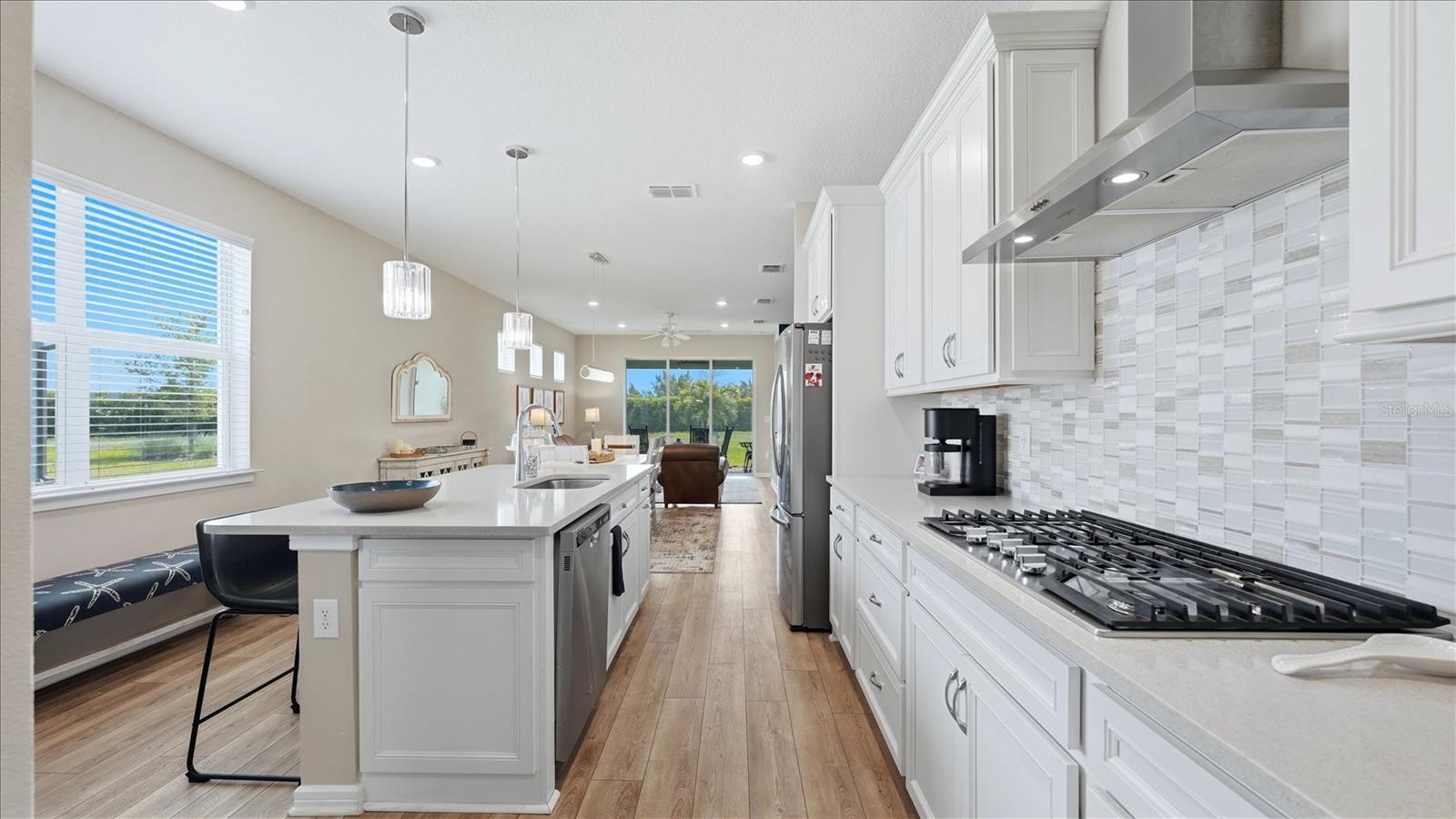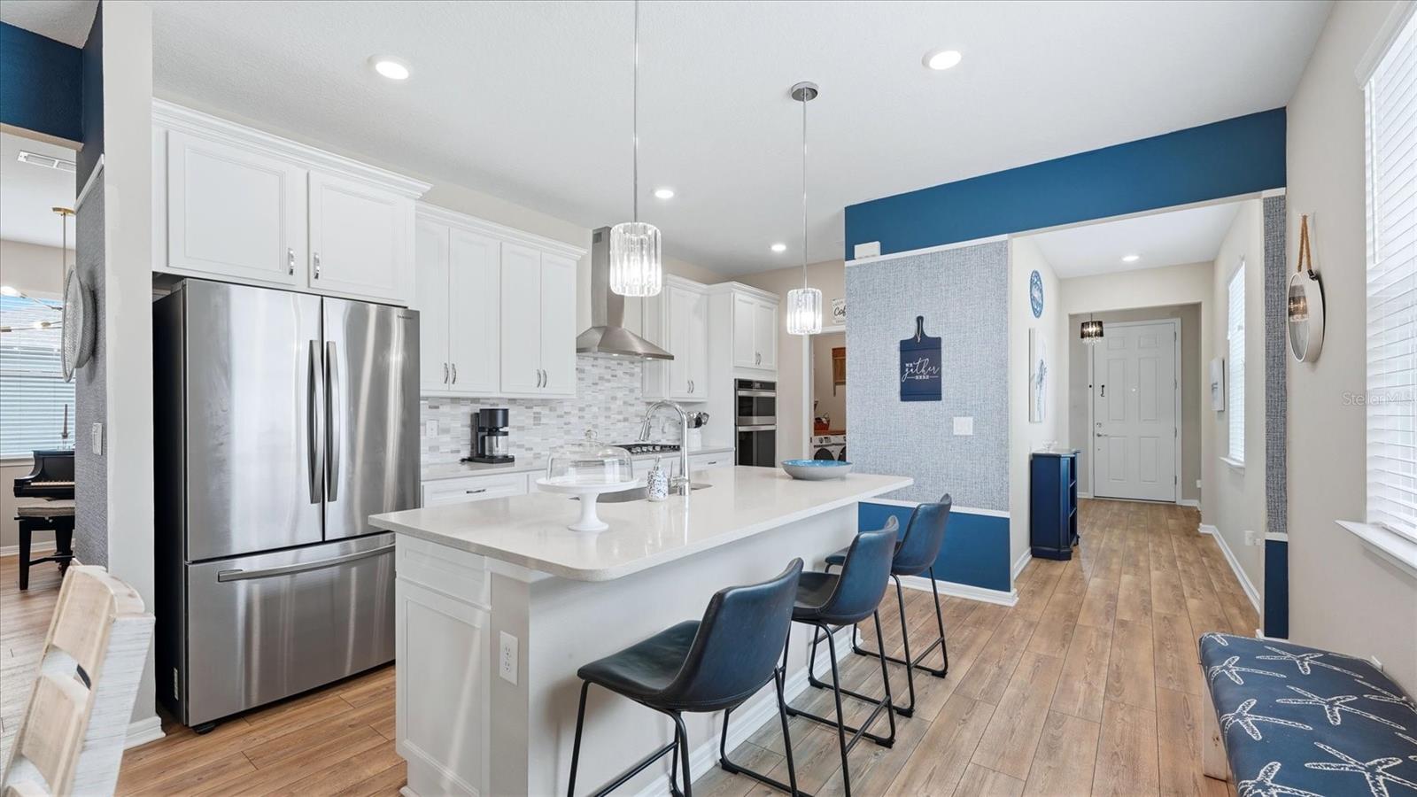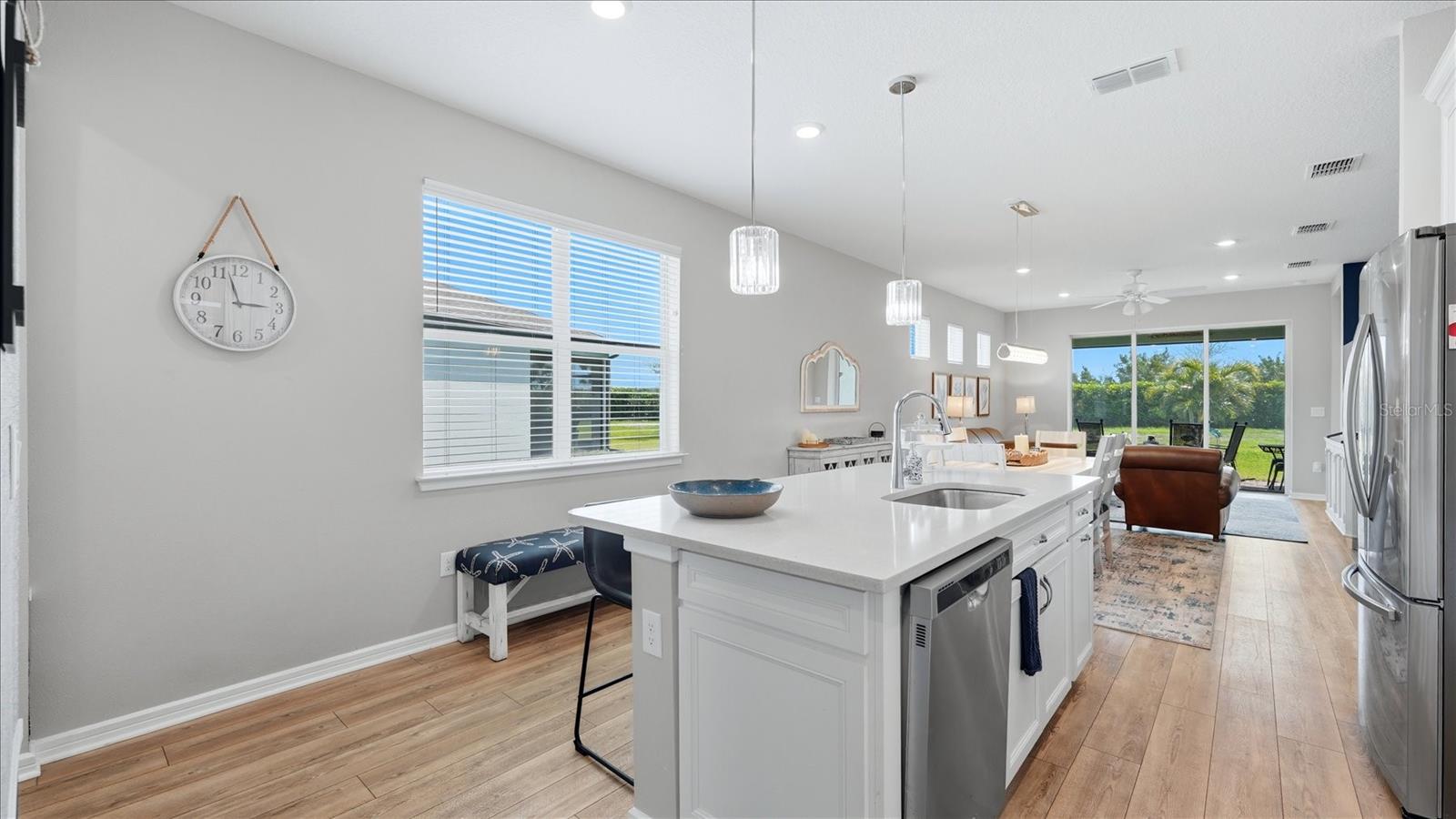 Situada perto do final de um beco sem saída, esta casa lindamente conservada foi apreciada sazonalmente e mantida com amor. Originalmente decorado com uma vibração de casa de campo azul à beira-mar, os vendedores encontraram uma casa maior no condomínio que amam e restauraram muitas áreas à cor original do interior. A cozinha de um chef com gavetas inferiores removíveis é o coração da casa. A garagem estendida de 1,2 m oferece espaço para dois veículos, além de oficina ou armazenamento – uma atualização rara e valiosa. O layout interior inclui dois quartos divididos, dois banheiros completos e uma versátil sala flexível atualmente usada como sala de música, além de excelente armazenamento por toda parte. Os controles deslizantes desaparecem completamente, permitindo que a tela panorâmica da varanda traga o exterior para dentro. Os vendedores estão se mudando dentro da comunidade para acomodar um piano Steinway, refletindo seu amor pela vizinhança e pelo estilo de vida. Vendedores motivados definiram preços agressivos para esta casa. Del Webb Bay View oferece comodidades de estilo de vida ativo, incluindo pickleball, tênis, bocha, academia, jardins comunitários, shuffleboard, dois parques para cães e um bar e churrascaria no local. Compatível com carrinho de golfe! Acesso conveniente aos aeroportos de Tampa, São Petersburgo e Sarasota, praias de classe mundial, lojas e restaurantes à beira-mar. HOA inclui manutenção de árvores e jardins, TV a cabo e internet. O CDD está incluído no valor do imposto corrente. Esta casa NÃO está localizada em uma zona de inundação.