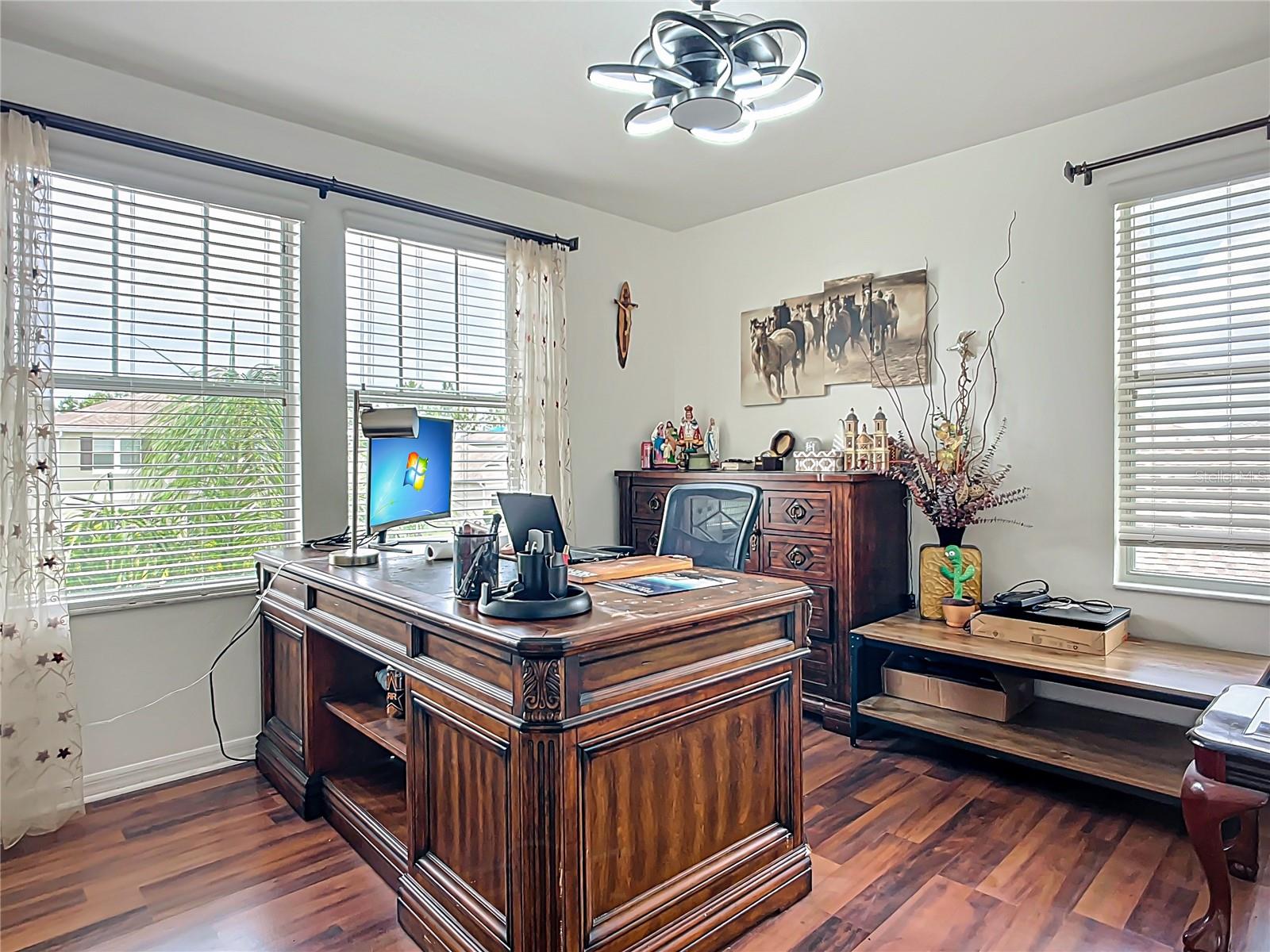 A impressionante casa de 5 quartos em bloqueio de brecha com vistas serenas de lagoas: Bem-vindo a esta casa de dois andares bem atualizada no condomínio fechado procurado da Comunidade de Creekside Reserve. Com mais de 3.400 pés quadrados de espaço cuidadosamente projetado, esta residência de 5 quartos e 3 banheiros oferece uma mistura perfeita de elegância, conforto e conveniência moderna. A partir do momento em que você chega, você ficará encantado com a garagem de ladrilhos de porcelana personalizada, a passarela e a varanda da frente - definindo o tom para o estilo e os detalhes que aguardam dentro. Passe pela porta da frente para uma espaçosa sala de estar formal e depois siga o corredor até o coração da casa: uma grande sala brilhante e arejada que se conecta perfeitamente à cozinha e à área de jantar. A cozinha é o sonho de um chef, com bancadas em granito, armários de madeira, tetos altos e uma despensa de mordomo de um butler, de maneira inteligente, equipada como um vinho e café. Desfrute de uma vida interior fora de fora com uma sala de bônus flexível na parte traseira da casa que se abre para um lanai coberto com um pátio elevado e com tampa de pérgola. Apresente vistas tranquilas da lagoa e da natureza, ou reunir -se ao redor da fogueira ao ar livre e da área de lounge do lado de fora do gabinete da tela. O quintal também está pronto para uma cerca de ferro forjado, se desejar. No interior, você encontrará ladrilhos personalizados e pisos de vinil de luxo por toda parte, juntamente com um belo trabalho de acabamento, incluindo trilhos de cadeira personalizados. No andar de cima, a expansiva suíte master inclui um quarto de bônus conectado que virou quartos, agora transformado em um luxuoso armário personalizado e retiro privado. Uma segunda área de estar no andar de cima oferece ainda mais espaço para entretenimento ou relaxamento. Localizado na encantadora área de Ellenton, o Creekside Reserve é um condomínio fechado que oferece tranqüilidade e uma localização privilegiada. Desfrute de acesso conveniente a compras, restaurantes e entretenimento com melhor classificação, além de rotas rápidas para a I-75 para facilitar viagens a Tampa, São Petersburgo, Sarasota e praias nas proximidades da Costa do Golfo. Esta propriedade excepcional combina estilo, espaço e uma localização fantástica - veja hoje e experimente a Flórida que vive no seu melhor!