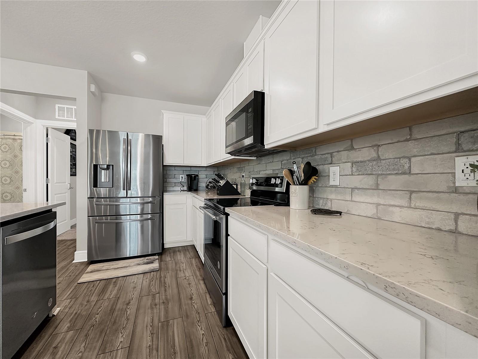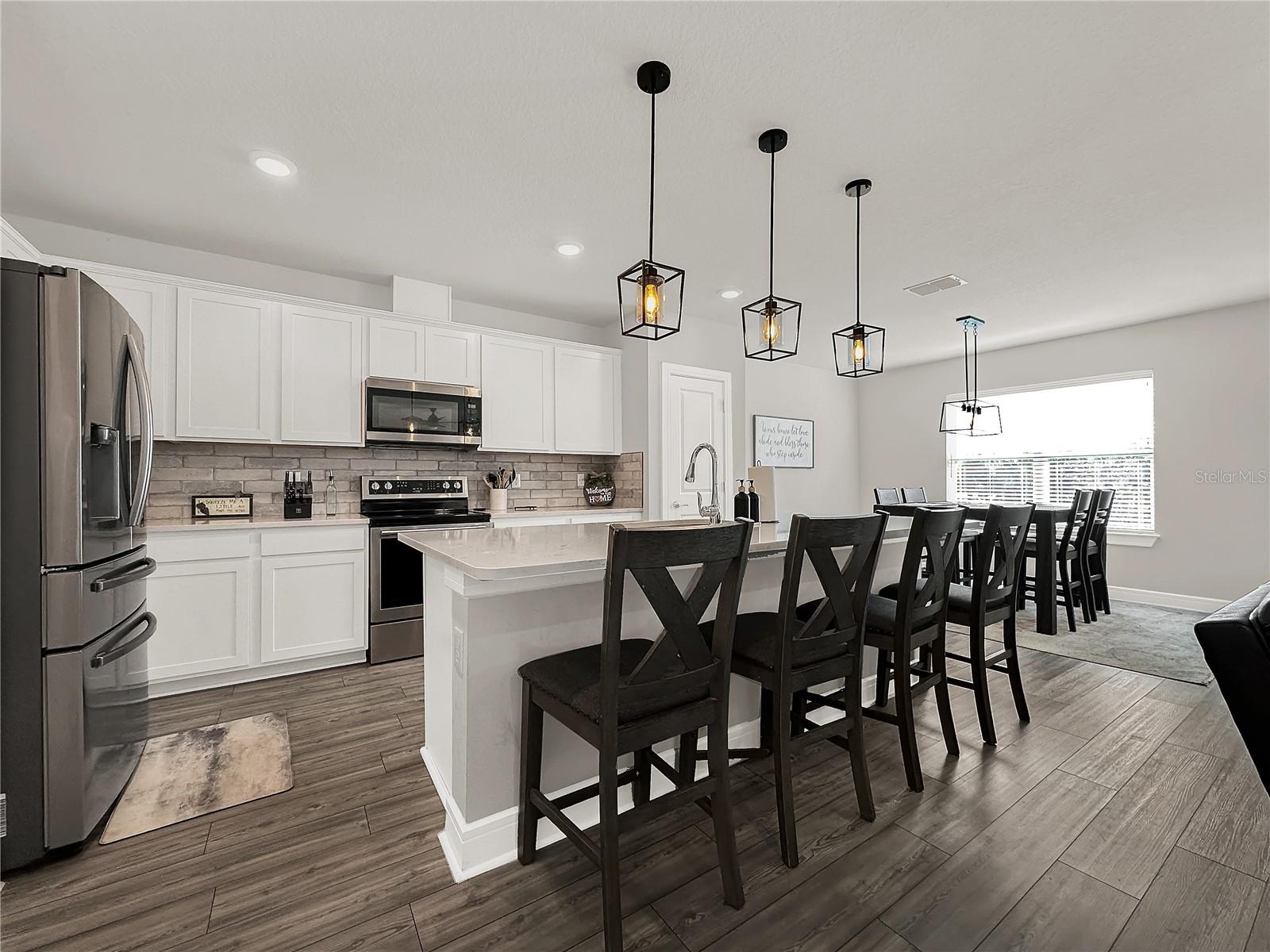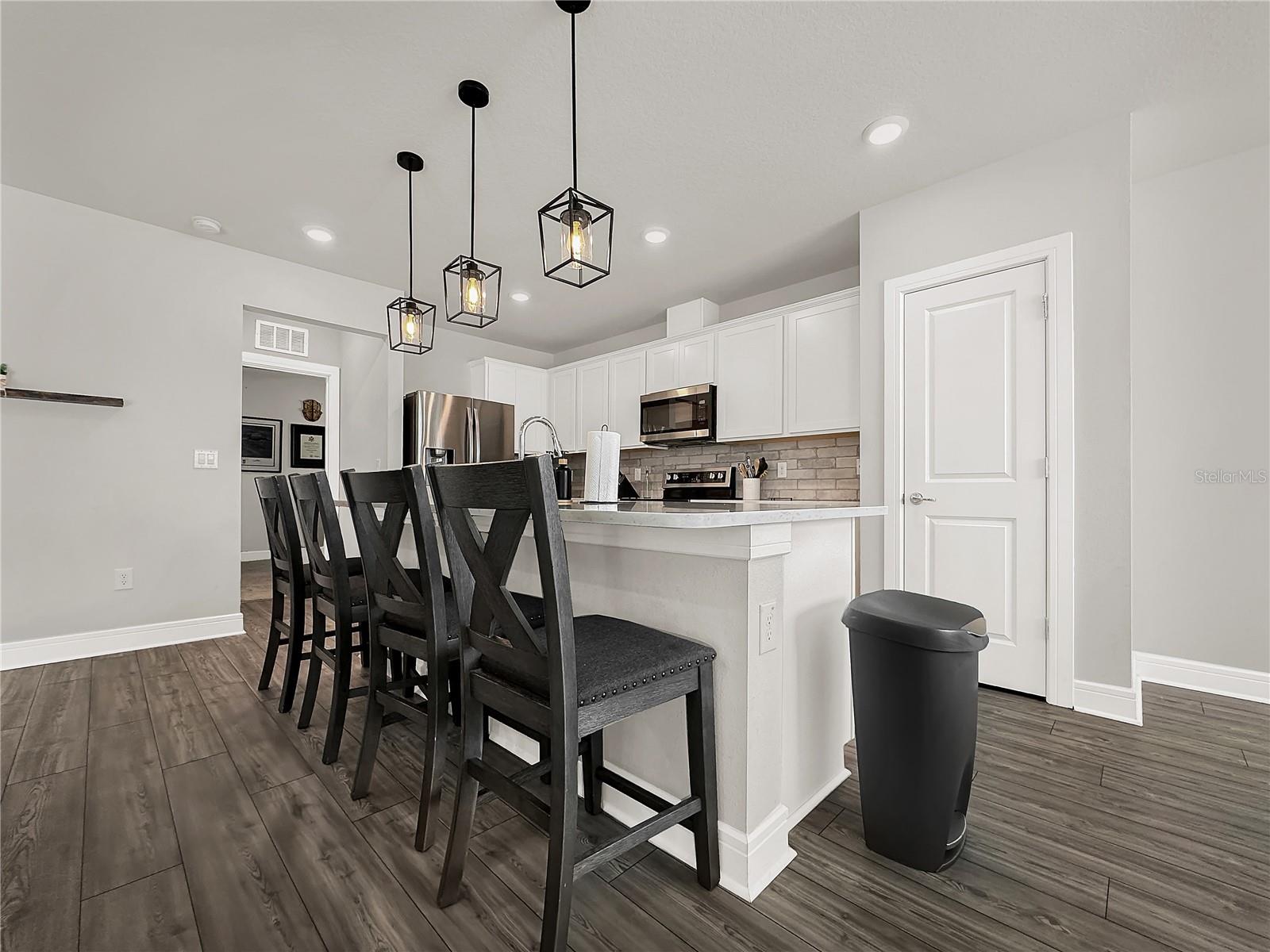 Bem-vindo à sua nova casa localizada na comunidade de North River Ranch, na bela Parrish Florida, esta espaçosa residência de 5 quartos e 3 banheiros foi construída em 2022. Uma servidão adjacente fornece um buffer adicional entre você e um de seus vizinhos, enquanto a parte de trás da propriedade ignora um telmal de esbranquiçado com o vizinho não retro. Ao entrar, você será recebido por uma planta baixa que facilita o entretenimento sem esforço. A casa apresenta luminárias atualizadas e ladrilhos de estilo de madeira que fluem perfeitamente em todas as áreas de estar, criando uma estética coesa. A cozinha é o sonho de um entusiasta da culinária, equipado com utensílios de aço inoxidável, um backsplash decorativo, bancadas de granito natural, uma despensa e uma barra de café da manhã iluminada pela iluminação pendente. O amplo espaço está cheio de luz natural, cortesia de portas de vidro deslizantes que se abrem para um pátio coberto. A casa oferece um quarto de tamanho amplo no primeiro andar com um banheiro dedicado, ao subir ao segundo andar, descobrirá uma área de bônus e quatro quartos de tamanho generoso, incluindo uma espaçosa suíte primária completa com um banheiro privativo com pias duplas, um chuveiro e um closet. Os quatro quartos restantes oferecem amplo espaço para todas as suas necessidades. Uma lavanderia convenientemente localizada melhora a funcionalidade. Localizado na comunidade de North River Ranch, esta casa fornece acesso a uma riqueza de comodidades, incluindo uma piscina comunitária, parque de cães, fitness center, clubhouse, trilhas para caminhada e playground. Com uma curta distância de carro da I-75 e da Rodovia 301, convenientemente localizada para Tampa St Pete, Bradenton Beaches, Sarasota Beaches, navegar na área é uma brisa. Esta casa certamente impressionará - não perca esta grande oportunidade, agende sua exibição hoje.
