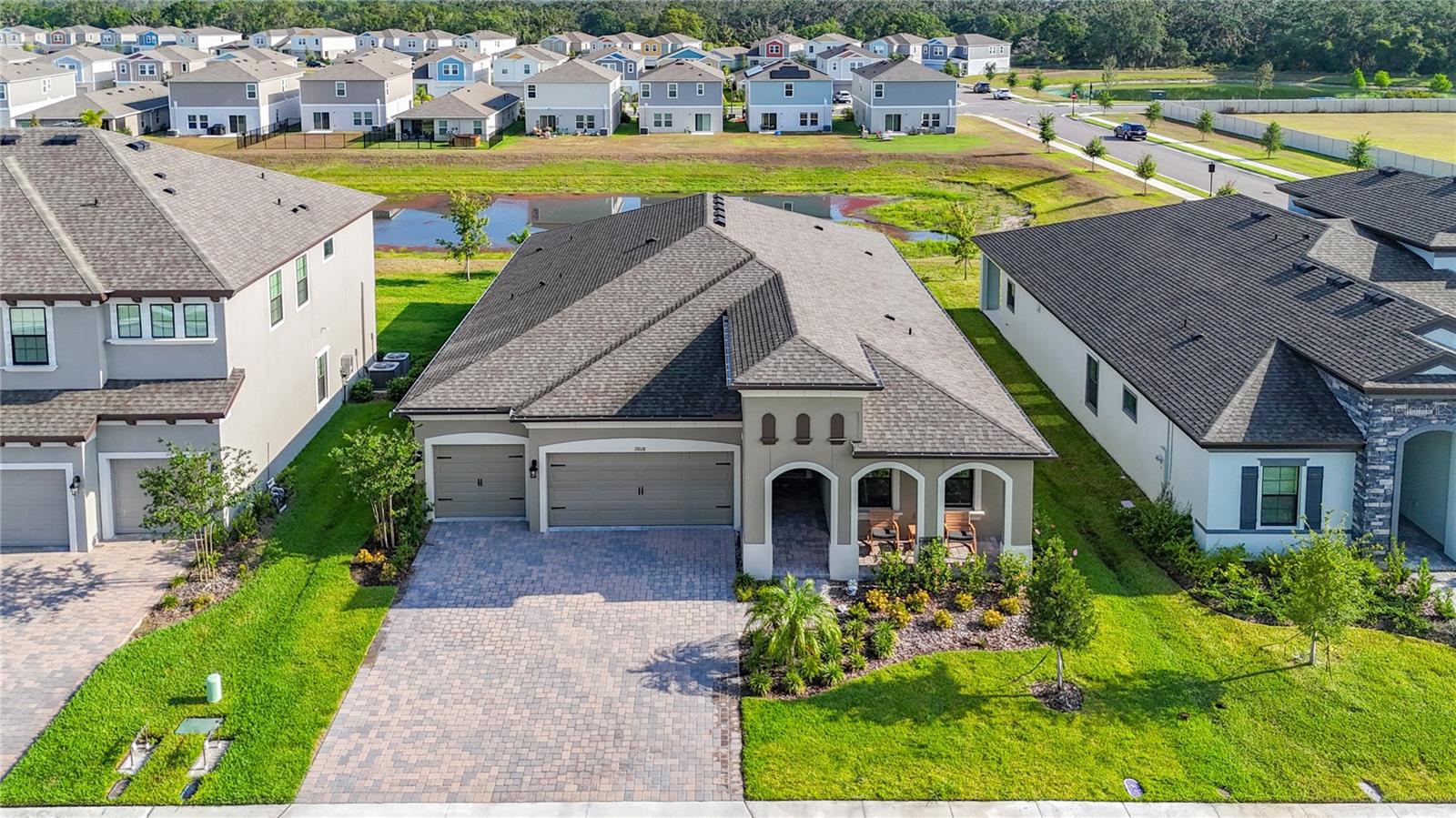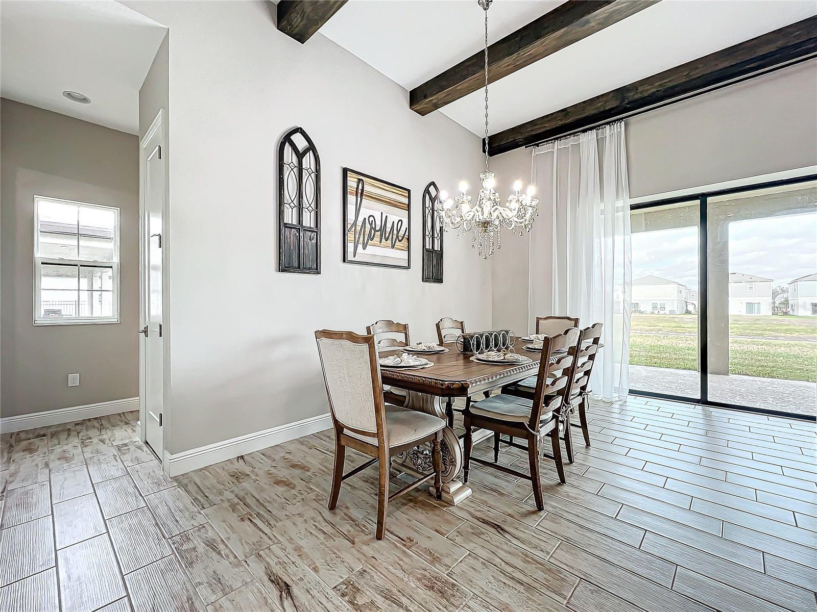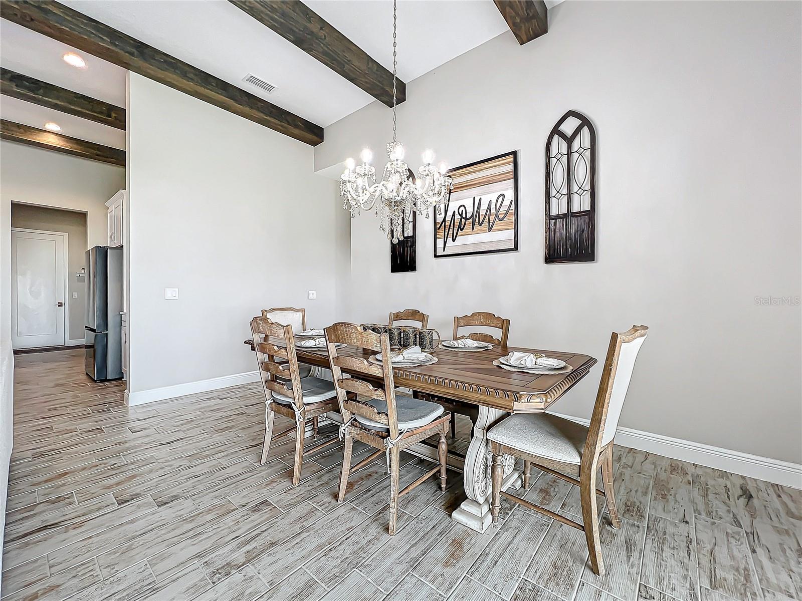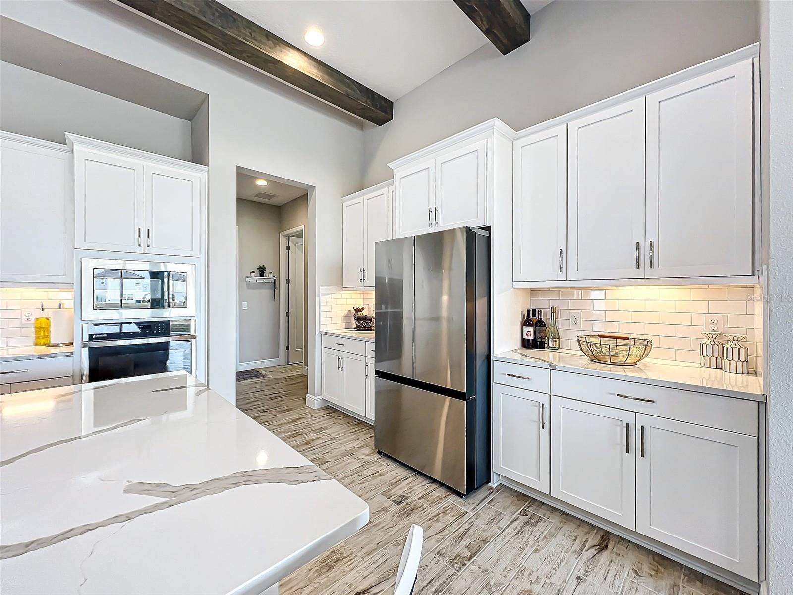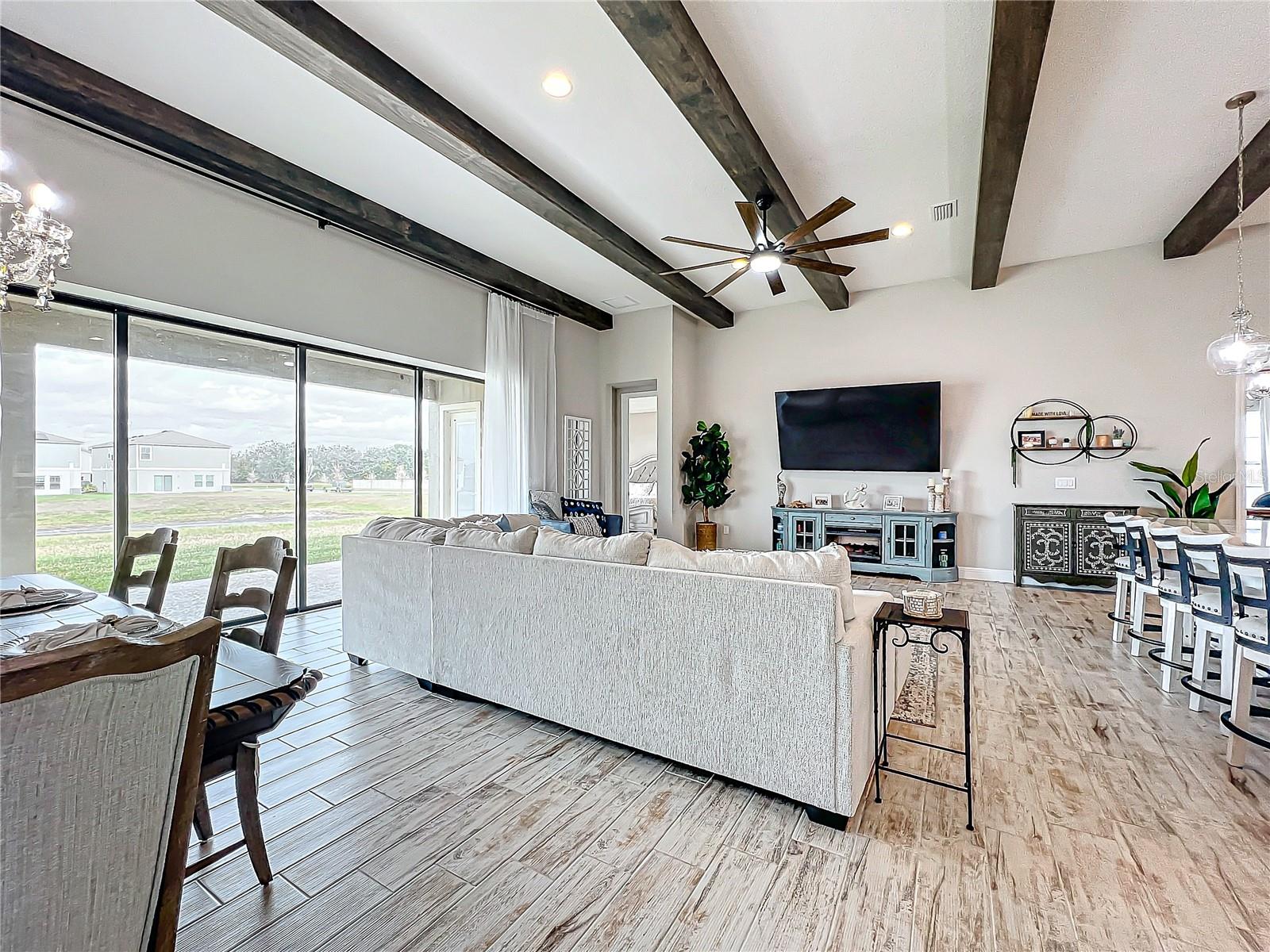 ** Melhoria de preços! ** O vendedor ajudará nos custos de fechamento! Após a entrada, este plano de piso de 2.535 pés quadrados o cumprimenta com um vestíbulo alongado que flui para a impressionante sala, uma cozinha cuidadosamente projetada, sala de estar e combinação de sala de jantar que cria um layout aberto e convidativo perfeito para a vida entre entretenimento e cotidiano. Os tetos altos de 12 pés são lindamente acentuados com vigas impressionantes de teto, acrescentando um toque grandioso e refinado ao espaço, enquanto as portas de bolso de vidro deslizantes de quádruplos inundam a área com luz natural ao longo do dia. Esta incrível casa de um andar destaca acabamentos elegantes, incluindo pisos de ladrilhos de tábuas de madeira de luxo, portas internas de 8 'e luminárias requintadas que adicionam um toque de sofisticação a todos os quartos. The gourmet kitchen is a true centerpiece, showcasing stainless steel appliances, stunning quartz countertops, subway tile backsplash, modern range hood, gas cooktop, microwave wall oven combo, undercounter lighting, and upgraded 42” wood cabinets with crown molding - supplying the chef with all the necessary tools to create culinary masterpieces. An oversized island allows for extra eating space and doubles as an additional O Breakfast Bar, fornecendo amplo assento para todos. Banheiro, tornando-o um espaço ideal para hóspedes ou sogros. Um chuveiro de chuva montado no teto e um chuveiro montado na parede para uma experiência personalizada e indulgente. O pôr do sol, misturando perfeitamente a vida interna e externa. Sarasota, Tampa ou São Petersburgo.