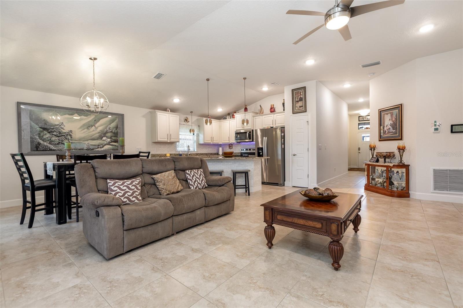 Bem-vindo a esta casa lindamente atualizada de 3 quartos e 2 banheiros em aviário no Rutland Ranch, onde o estilo, o conforto e a funcionalidade se misturam perfeitamente. Entre e descubra áreas de estar espaçosas adornadas com pisos duráveis de ladrilhos e elegantes ventiladores de teto de designer e iluminação, criando um ambiente convidativo. Todos os três quartos oferecem um retiro quente com piso de tábua de vinil de luxo e amplo espaço no armário. O coração desta casa é sua cozinha gourmet, uma delícia de um verdadeiro chef, com armários de madeira maciça e de perto com molduras de coroa, bancadas de granito reluzentes, um backsplash personalizado e aparelhos de aço inoxidável, todos complementados por uma conveniente despensa. Fuja para a grande suíte primária, um santuário pacífico com um luxuoso banho de suíte. Esse espaço semelhante ao spa inclui vaidades duplas, bancadas em granito, acessórios elegantes e um espaçoso closet. A planta baixa da casa garante a privacidade, com dois quartos adicionais compartilhando um banheiro bem equipado com bancadas em granito e equipamentos atualizados. Saia para a sua vara traseira exibida, perfeita para relaxar ou divertir enquanto desfruta do estilo de vida da Flórida o ano todo. A garagem de dois carros possui um piso revestido de epóxi para durabilidade e uma aparência polida. Além da estética, este lar possui atualizações práticas para maior conforto e paz de espírito, incluindo janelas coloridas para eficiência energética e privacidade, todo um protetor de onda doméstica para proteção adicional e paisagismo sustentável com três macieiras de açúcar produzindo, uma planta de amora próspera e papaya recém -estabelecida. Morando em aviário no Rutland Ranch concede acesso a comodidades comunitárias de primeira linha, incluindo uma piscina aquecida no estilo resort, playground, quadras de pickleball e basquete e trilhas cênicas. Perfeitamente localizado a poucos minutos das praias de tirar o fôlego, atrações locais populares, compras e refeições, esta casa oferece a mistura ideal de tranquilidade e conveniência