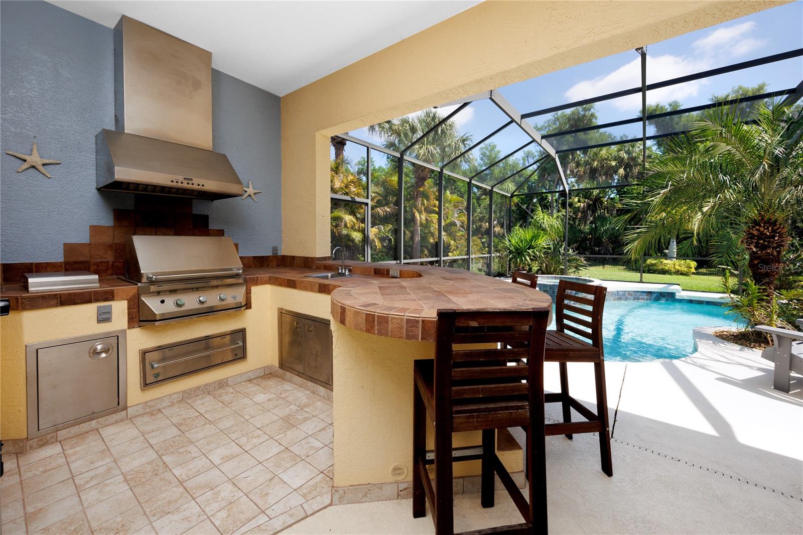 Uma ou mais fotos foram virtualmente encenadas. Situada na pacífica e altamente desejável comunidade de Ancient Oaks, esta excepcional residência de quatro quartos e três banheiros oferece uma mistura refinada de luxo, privacidade e vida elevada na Flórida. Posicionada em uma área residencial de grandes dimensões com mais de um terço de acre, a propriedade oferece amplo espaço ao ar livre, paisagismo exuberante e um ambiente de preservação sereno que cria uma atmosfera de retiro privado. Projetada para uma vida interna e externa perfeita, a casa se abre facilmente para uma varanda com piscina de água salgada aquecida e spa, além de uma cozinha externa totalmente equipada, criando um verdadeiro ambiente de estilo resort, ideal para entretenimento e relaxamento diário. O quintal cercado, o paisagismo tropical, a iluminação paisagística e as calhas de chuva completam o exterior meticulosamente mantido da casa. A cozinha externa foi cuidadosamente projetada para entretenimento em qualquer escala e inclui churrasqueira a gás, gaveta de aquecimento, pia, geladeira, barra de azulejos e alto-falantes de som surround integrados que se estendem por toda a casa, proporcionando uma experiência de entretenimento interna e externa perfeita. No interior, a cozinha do chef é elegante e funcional, apresentando eletrodomésticos Samsung atualizados, um backsplash de design personalizado e impressionantes bancadas de granito com tons mais claros ao longo do perímetro, complementadas por uma dramática ilha de ônix que serve como um ponto focal impressionante. A espaçosa suíte principal serve como um santuário privado, completa com portas de vidro deslizantes que levam diretamente à varanda, banheira de imersão, box amplo separado e pia dupla, oferecendo um retiro semelhante a um spa com acesso direto à piscina e áreas de estar ao ar livre. Os banheiros em toda a casa possuem bancadas de quartzo, enquanto atualizações adicionais incluem piso de bambu em dois quartos, carpete macio na suíte principal e no quarto de hóspedes, iluminação e ventiladores de teto atualizados, sistema de aspiração central, controle inteligente de porta de garagem e sistema de irrigação inteligente controlado por telefone. Uma espaçosa garagem para três carros oferece amplo armazenamento, e o bairro tranquilo e estabelecido oferece baixas taxas de HOA e sem taxas de CDD. Idealmente localizada a poucos minutos do Buffalo Creek Park, com campos de atletismo, quadras de basquete, playgrounds, áreas de pavilhão e um campo de golfe profissional de 18 buracos, bem como lojas e restaurantes convenientes no Ellenton Premium Outlets, esta casa oferece a combinação perfeita de luxo, privacidade e localização.