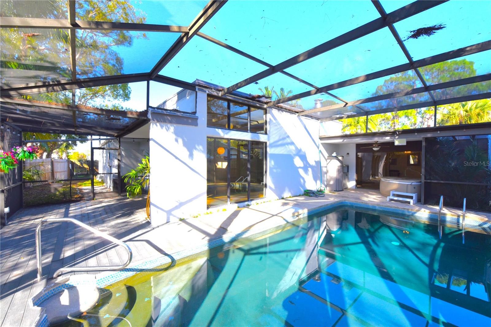 Esta casa não está em uma zona de inundação não foi totalmente afetada por Milton e Helene. Esta casa moderna de Frank Lloyd, de meados do século, foi encomendada por Lowell Lytle, o ator que personificou o capitão do Titanic para a empresa que foi até o naufrágio! Agora, ele foi totalmente remodelado e possui 5 quartos (3 dos quais são quartos primários verdadeiros com banheiros de suíte) e 4 banheiros completos! Cheio de luz natural graças à sua arquitetura única, que leva a um átrio de 12 pés de altura completo com lindas paredes de pedra falsa e árvores vivas plantadas. A sala de estar adjacente de 37 pés de comprimento com seu teto alto, com muitas janelas na parte superior e duas grandes portas deslizantes que se abrem para o deck coberto externo, pátio e piscina, mistura harmoniosamente o espaço interior com a natureza externa, assim como Frank Lloyd Wright pretendia. Você poderá viver a vida da Flórida protegida pela gaiola da piscina recém -resgatada com suas portas totalmente abertas. A longa cozinha nova da galera se abre para a sala de estar e está pronta para entreter seus convidados O proprietário também teve os pisos atualizados com novas tábuas de vinil por toda parte. O lote está totalmente cercado e há muito espaço de grama, além da área de piscina exibida. Você será recebido por lindas palmeiras e plantas na frente da casa e por uma longa calçada circular para seus carros. A lista de melhorias recentes é realmente extensa para poder listá -las em um espaço tão pequeno. Venha ver esta jóia rara pessoalmente.