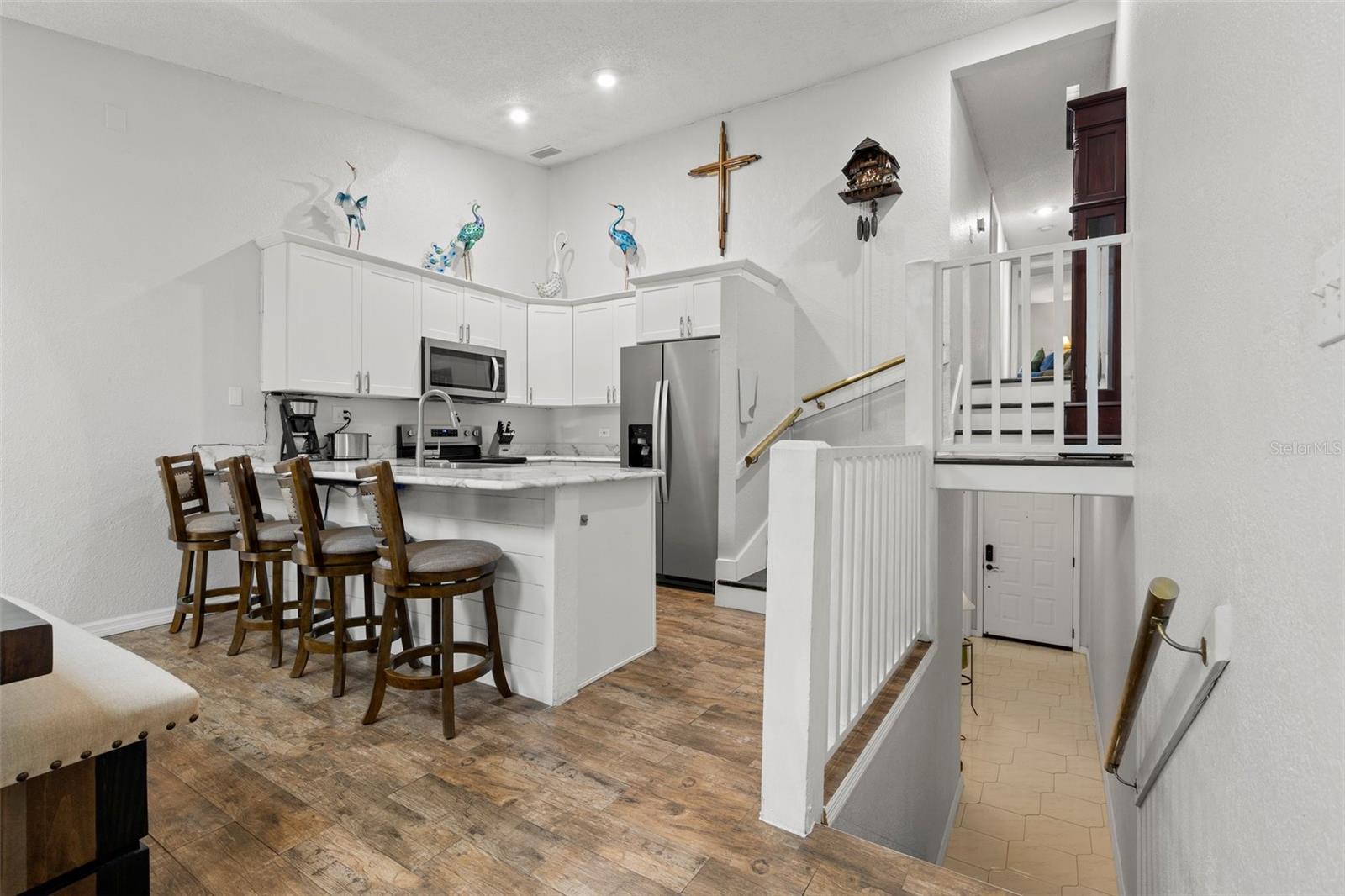 ENORME AJUSTE DE PREÇO!!! Se você está sonhando com aquele estilo de vida descontraído da Flórida, esta moradia atualizada de 2 quartos e 1,5 banheiros no coração de Pinellas Park preenche todos os requisitos. Escondida em uma comunidade tranquila localizada a apenas 15 minutos das praias do Golfo, acorde com seu café da manhã na sua varanda privada, faça um passeio noturno pelo parque do outro lado da rua ou passe os fins de semana à beira da piscina com vista para o lago comunitário, esta casa permite que você viva perto de tudo sem sacrificar o conforto ou a conveniência. Entre e desfrute da sensação fresca de uma cozinha recém-atualizada com armários estilo shaker, eletrodomésticos Whirlpool de aço inoxidável - NOVO FRIGORÍFICO E ELIMINAÇÃO DE LIXO, bancadas de superfície sólida em estilo mármore e uma ilha funcional com amplo assento de bar. Tetos abobadados e clarabóias trazem muita luz natural, enquanto o piso de cerâmica com aparência de madeira (sem carpete!) Mantém o ambiente aconchegante e de baixa manutenção. O layout de dois andares oferece um ótimo fluxo com quartos espaçosos e banheiros no andar de cima e uma área de estar aberta no andar de baixo que leva ao seu pátio coberto, perfeito para relaxar ao ar livre. O quarto principal possui varanda privativa, amplo armário com detalhes em porta de celeiro e acesso ao banheiro privativo compartilhado pelo banheiro de hóspedes. O quarto de hóspedes oferece outro armário grande (muito espaço de armazenamento aqui!) E há até uma rampa de lavanderia para economizar alguns passos no dia da lavanderia. Uma garagem para um único carro se conecta à sua área de serviço interna ou sala de bônus que pode ser usada como escritório doméstico ou academia. Manutenção meticulosamente, com atualizações cuidadosas, como NOVOS DESLIZADORES DE IMPACTO DE FURACÃO, TRABALHO DE DUTOS e HVAC e aquecedor de água mais recentes, proporcionam conforto e tranquilidade para os novos proprietários. O que mais você poderia querer? Localizado a poucos passos do Parque Helen Howarth e da Trilha Equestre, do Centro Recreativo Forbes e a uma curta distância de carro de lojas, restaurantes e praias premiadas; esta não é apenas uma casa, é uma atualização de estilo de vida. Você está pronto para morar onde outros passam férias? Agende sua exibição hoje mesmo!