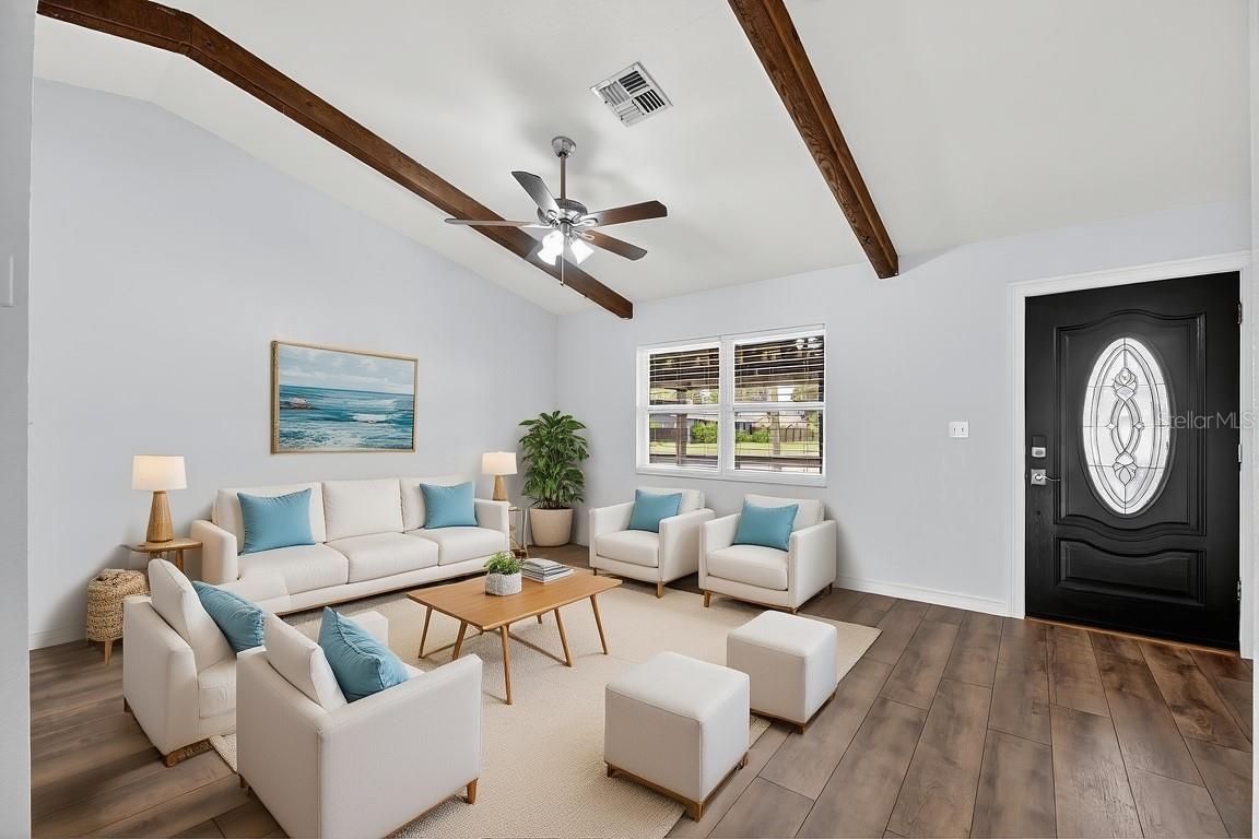 Procurando charme, espaço e atualizações modernas? Você acabou de encontrar! Bem-vindo a esta casa lindamente atualizada de 3 quartos e 2 banheiros com garagem para 2 carros, escondida em um beco sem saída tranquilo na desejável comunidade Grand Arcade de Pinellas Park. No interior, tetos abobadados, sancas e pintura fresca criam uma planta baixa brilhante e convidativa. A cozinha atualizada possui bancadas de granito e eletrodomésticos de aço inoxidável. A sala bônus oferece espaço flexível - perfeito como escritório doméstico, área de hóspedes ou sala de jogos. (Atualmente não está sob AC central, mas é facilmente adaptável, se desejado.) As principais atualizações incluem telhado substituído em 2021, novo piso laminado e banheiros atualizados. Do lado de fora, o grande quintal cercado é um verdadeiro destaque – sem vizinhos no lado direito para maior privacidade e muito espaço para adicionar uma piscina ou projetar seu próprio retiro ao ar livre. Convenientemente localizada perto de lojas, restaurantes, escolas e a apenas uma curta distância de carro das praias do Golfo, esta casa está pronta para morar e aguardando seu próximo proprietário para desfrutar do estilo de vida da Flórida.