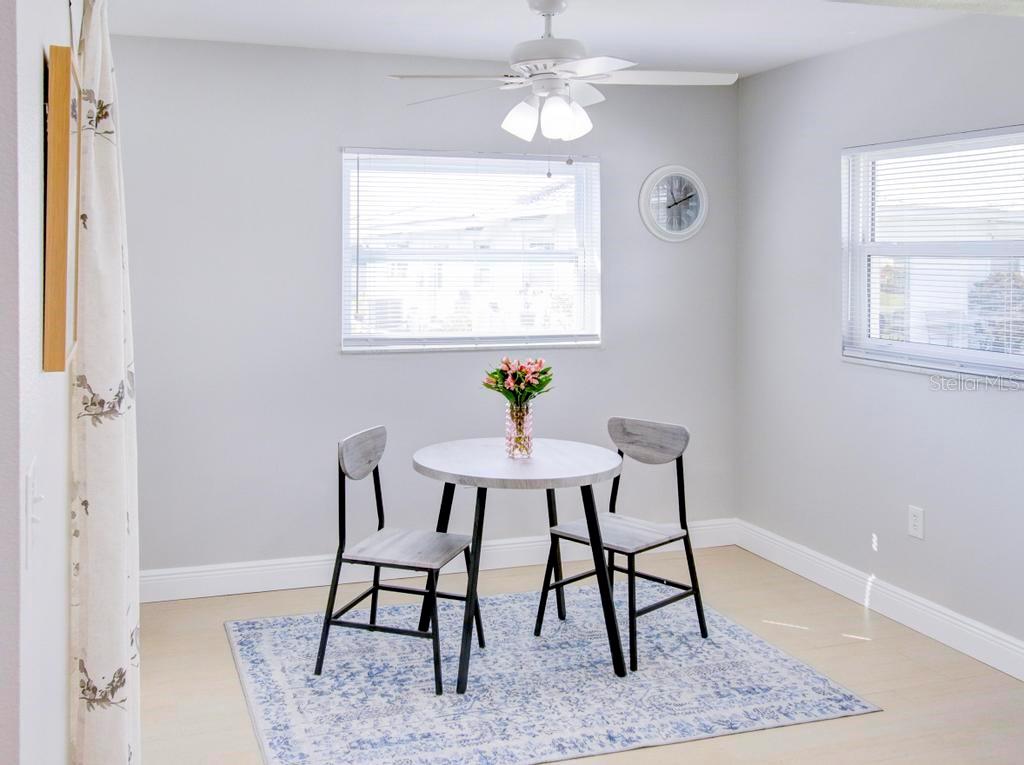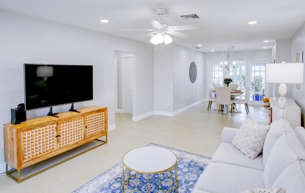 Esta casa iluminada e iluminada de 2 quartos e 2 banheiros foi lindamente remodelada com novo porcelanato por toda parte, novos armários de cozinha, eletrodomésticos inoxidáveis, utensílios e banheiros. Ao entrar, você é recebido por uma espaçosa sala de estar. Depois da área de jantar, pelas portas francesas você entra na aconchegante sala Florida com vista para um lindo pátio onde você pode saborear seu café da manhã ou uma noite tranquila com os amigos. Em um corredor privativo, passando pelos grandes armários, há uma suíte principal de tamanho considerável com banheiro privativo e acesso ao quarto Florida. Traga suas roupas, esta casa está pronta para morar. As comodidades da comunidade incluem clubhouse, piscina aquecida, biblioteca, auditório, sala de jogos com mesas de sinuca e bingo, shuffleboard e sala de ginástica com equipamentos atualizados e a taxa HOA inclui TV a cabo, internet, exterior do prédio e corte de grama, água, esgoto e coleta de lixo. Convenientemente localizado perto de lojas, restaurantes, entretenimento e recreação e a uma curta distância de carro da I-275, aeroportos, São Petersburgo, Tampa e belas praias do golfo.