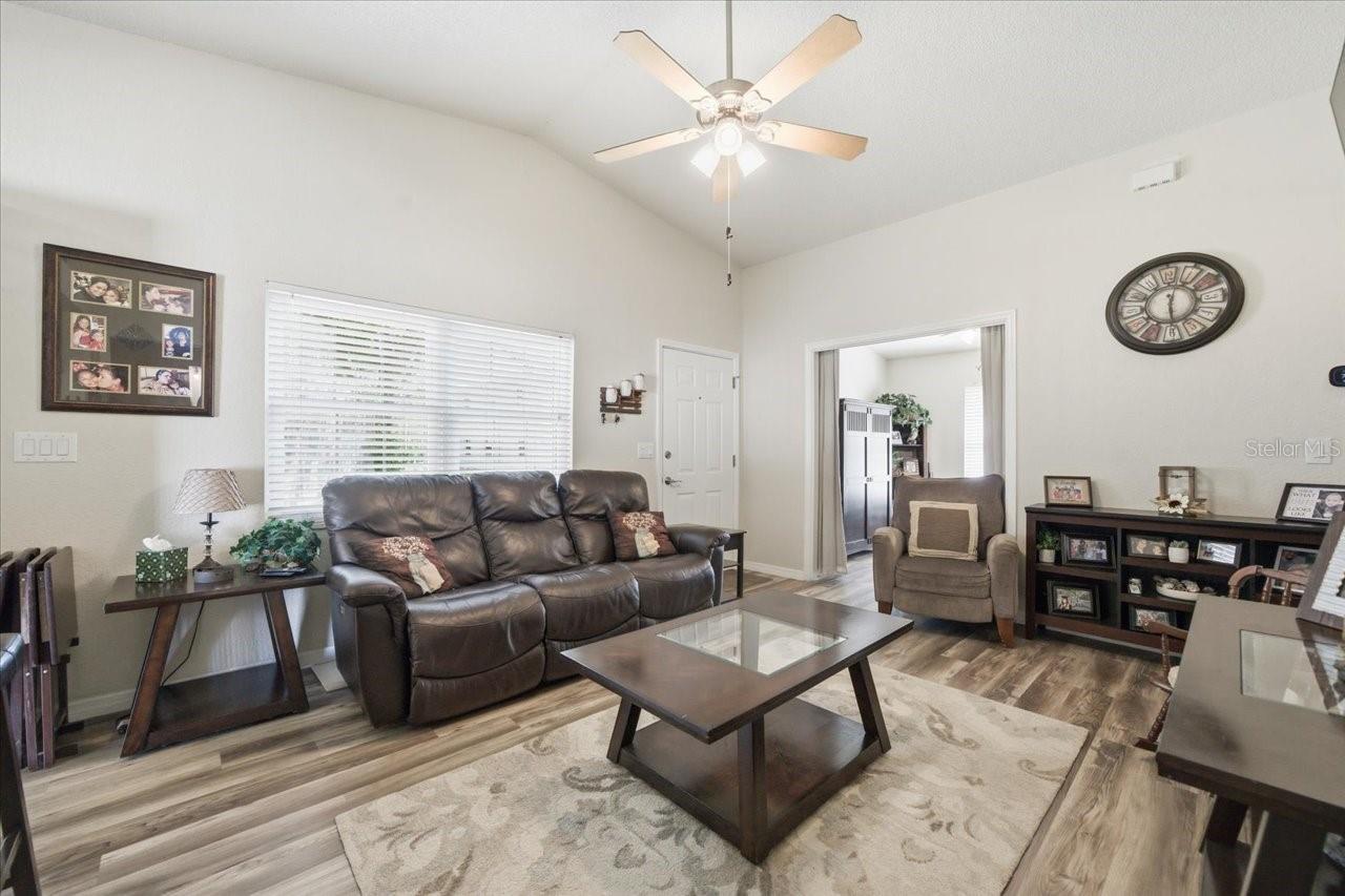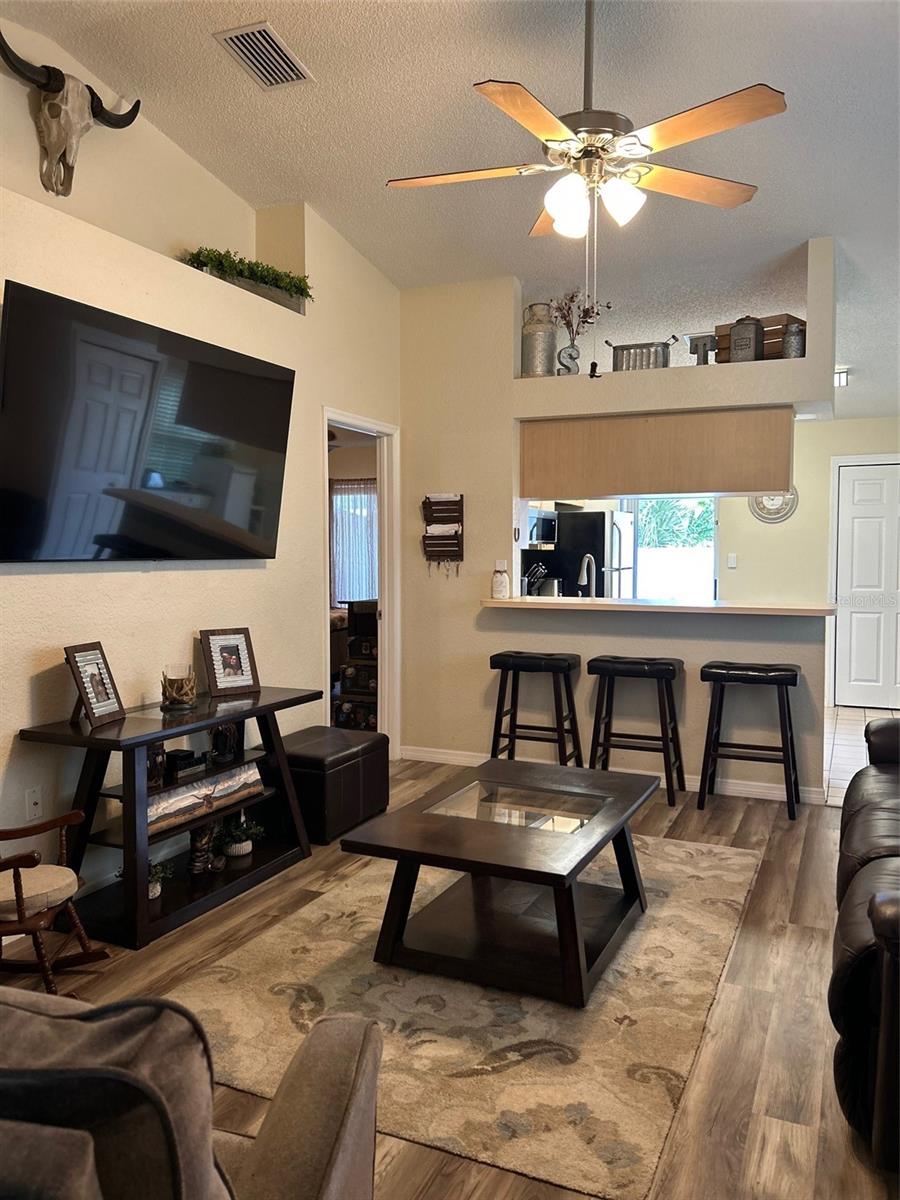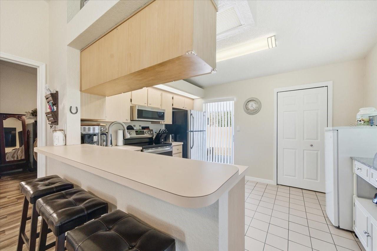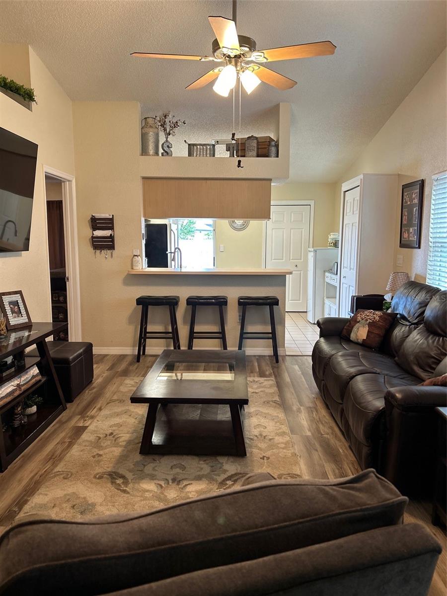 A Villa da UNIDADE FINAL, iluminada e iluminada, com 3 quartos e 2 banheiros completos, já está disponível! Village at Bonnie Bay é uma comunidade popular com apenas 9 residentes e baixa rotatividade. Há muito estacionamento para você e seus convidados, e sua localização no final da 62 oferece alguma privacidade e sem trânsito. Uma vez lá dentro, a decoração de bom gosto e o ambiente confortável fazem você se sentir em casa! Você notará o mais novo piso de vinil luxuoso e os tetos de catedral, que fazem a casa parecer muito maior e com um conceito aberto. A cozinha tem uma barra de café da manhã para refeições rápidas, um micro-ondas novo e eletrodomésticos de aço inoxidável. Há um armário com despensa para maior comodidade e até espaço para uma pequena mesa. Há também armazenamento adicional na lavanderia que fica ao lado da cozinha. Saia para o seu quintal com muito espaço verde e um espaçoso deck/varanda para aproveitar o lindo clima da Flórida! O quarto principal tem um closet com acesso ao sótão e controles deslizantes para a varanda/deck dos fundos e um banheiro com chuveiro recém-revestido. Os outros 2 quartos têm boas dimensões, muita luz e armários. As atualizações incluem janelas anti-furacão, ventiladores de teto em todos os quartos, bomba de calor de 2 toneladas (janeiro de 2025), protetores de sarja no disjuntor principal, triturador de lixo e o aquecedor de água tem cerca de 6 anos. A associação (HOA) é administrada por residentes e inclui serviço de água/esgoto/lixo e gramado.