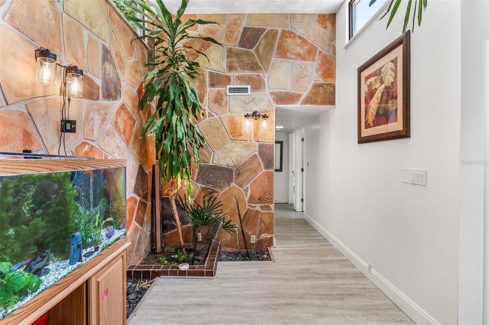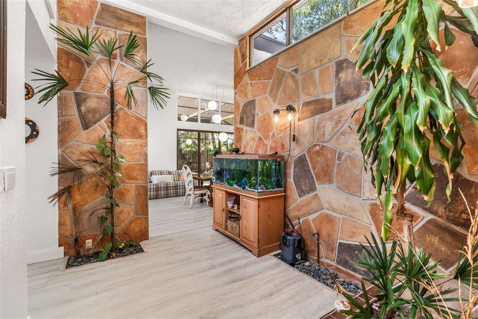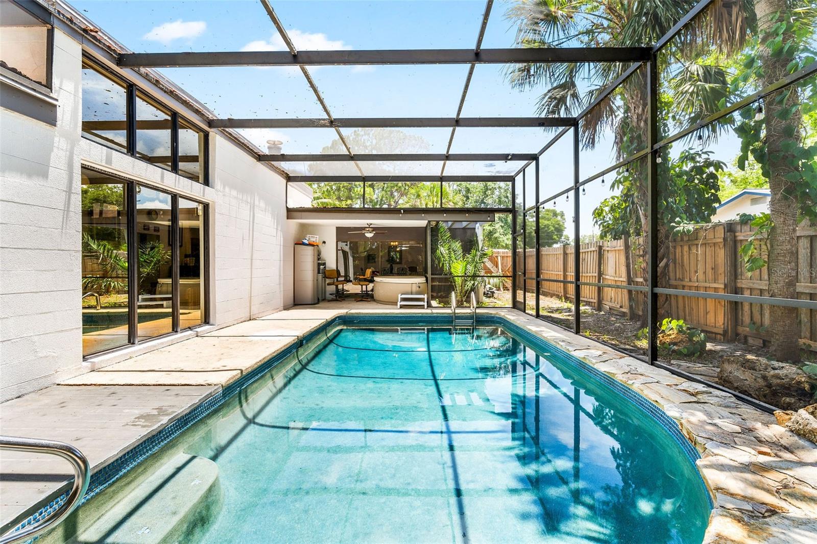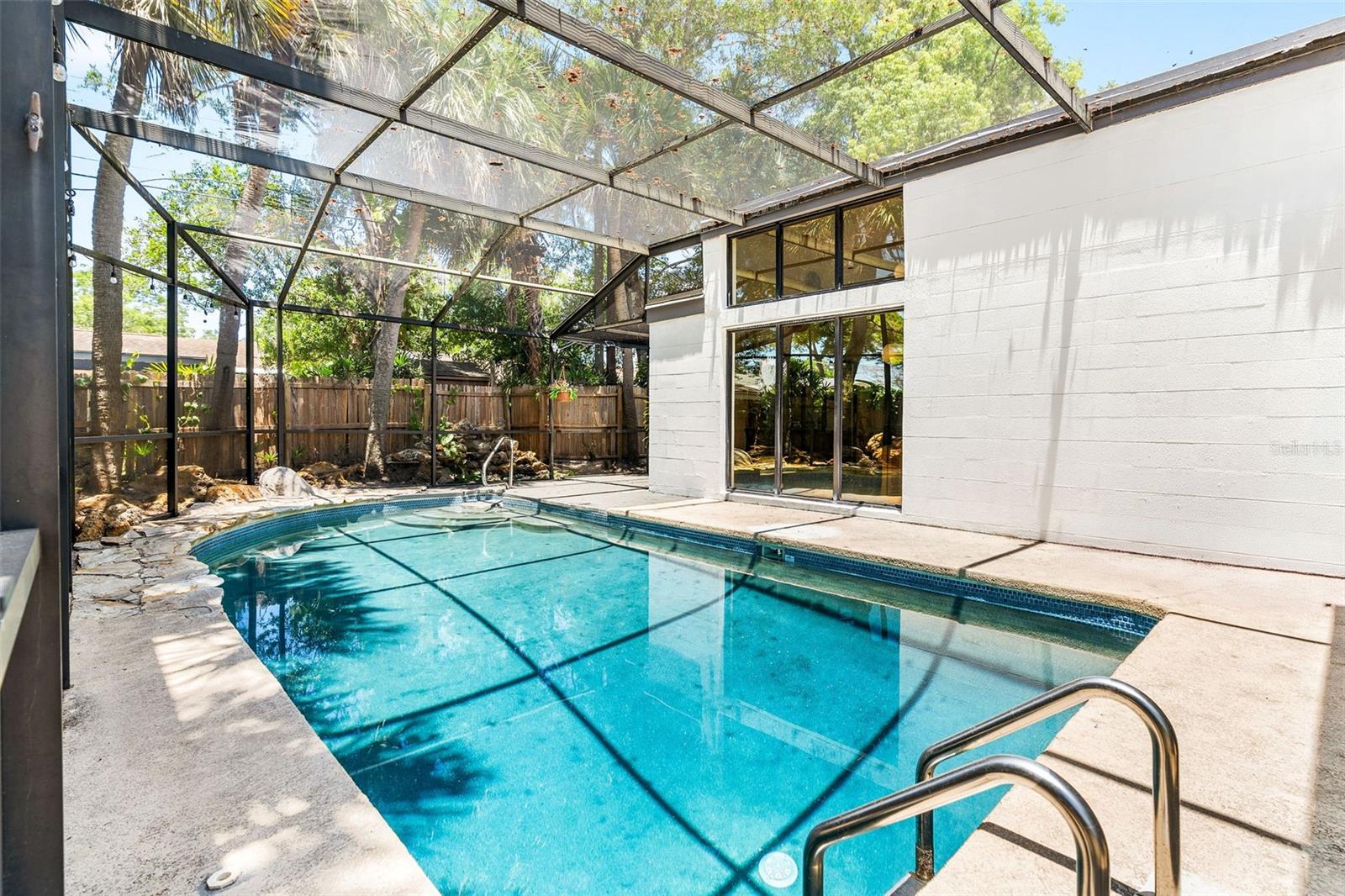 Sem zona de inundação. Esta casa não é totalmente afetada por Milton e Helene. Venha e veja este oásis moderno de Frank Lloyd, moderno de Frank Lloyd, totalmente remodelado, no coração do condado de Pinellas, na Flórida. Esta casa foi construída e projetada pelo famoso escritor, autor e ator sob o disfarce do capitão do Titanic Sr. Lowell Lytle, que conseguiu refletir perfeitamente o estilo de Frank Lloyd Wright, da qual ele é um profundo admirador. Construído em 1965 com Frank Lloyd Wright em mente, possui cinco quartos e quatro banheiros completos, e fica a pouco menos de 2500 pés quadrados de espaço vital. A casa foi totalmente remodelada e teve dois banheiros completos permitidos que acabaram de ser adicionados. A primeira coisa que você notará quando entrar nesta casa de piscina remodelada é a abundância de luz natural que ilumina a casa através das inúmeras janelas localizadas adjacentes aos tetos por toda a casa e pelas várias portas deslizantes na sala de estar e em um dos três quartos primários. Quando você entra na casa, através da porta de entrada dupla recentemente REATON, um amplo hall de entrada o receberá, que leva a um átrio de 12 pés de altura completo com paredes naturais de pedra e árvores vivas plantadas em plantadores de piso embutidos personalizados, com muitas janelas em cima para iluminar seu dia! A sala de estar adjacente de 37 pés de comprimento, com seu teto alto, muitas janelas na parte superior e dois grandes portas deslizantes que se abrem para o deck coberto externo, pátio e piscina, mistura harmoniosamente o espaço interior com a natureza externa, assim como Frank Lloyd Wright pretendia. Você poderá viver a vida da Flórida protegida pela gaiola da piscina recém -resgatada com suas portas totalmente abertas. A cozinha longa da galera se abre para a sala de estar e está pronta para entreter seus convidados, com uma nova bancada e novos armários superiores. O proprietário também teve os pisos atualizados com novas tábuas de vinil por toda parte. No lado direito da casa, há dois quartos de hóspedes, o banheiro remodelado de hóspedes e o quarto principal original com seu chuveiro recém -refeito e uma nova banheira de banho grátis. No lado esquerdo da casa, à direita pela porta de entrada, você verá o segundo grande quarto principal com seu novo banheiro privativo. Se você percorrer o comprimento completo de 37 pés da grande sala, chegará ao novo quarto primário de tamanho grande, com seu amplo banheiro e acesso direto a um pátio privado coberto e a área da piscina onde você pode saborear o café da manhã a qualquer hora do dia. O lote está totalmente cercado e há muito espaço de grama, além da área de piscina exibida. Você será recebido por lindas palmeiras e plantas na frente da casa e por uma longa calçada circular para seus carros. The list of recent improvements include the following: 2 full just built bathrooms, with a permitted extension, a new tankless water heater that services one side of the home, in addition to the new existing one, a new 2nd electric panel, the main electric panel was redone a couple of years ago, a recent major components AC change, that includes a new compressor and coils in one of the two AC systems, new vinyl floors throughout, new upper cabinets in the kitchen, new kitchen As bancadas, os dois banheiros existentes foram completamente remodelados, o teto foi recentemente totalmente revestido com a superfície de silicone e elastomérico, de seixos, foi refeito em 2020 pelo proprietário anterior, uma nova bomba de velocidade variável e um novo sistema de sal de piscina, novas telas de gaiola de piscina. Pinellas Park é amigável para aluguel de curto prazo!