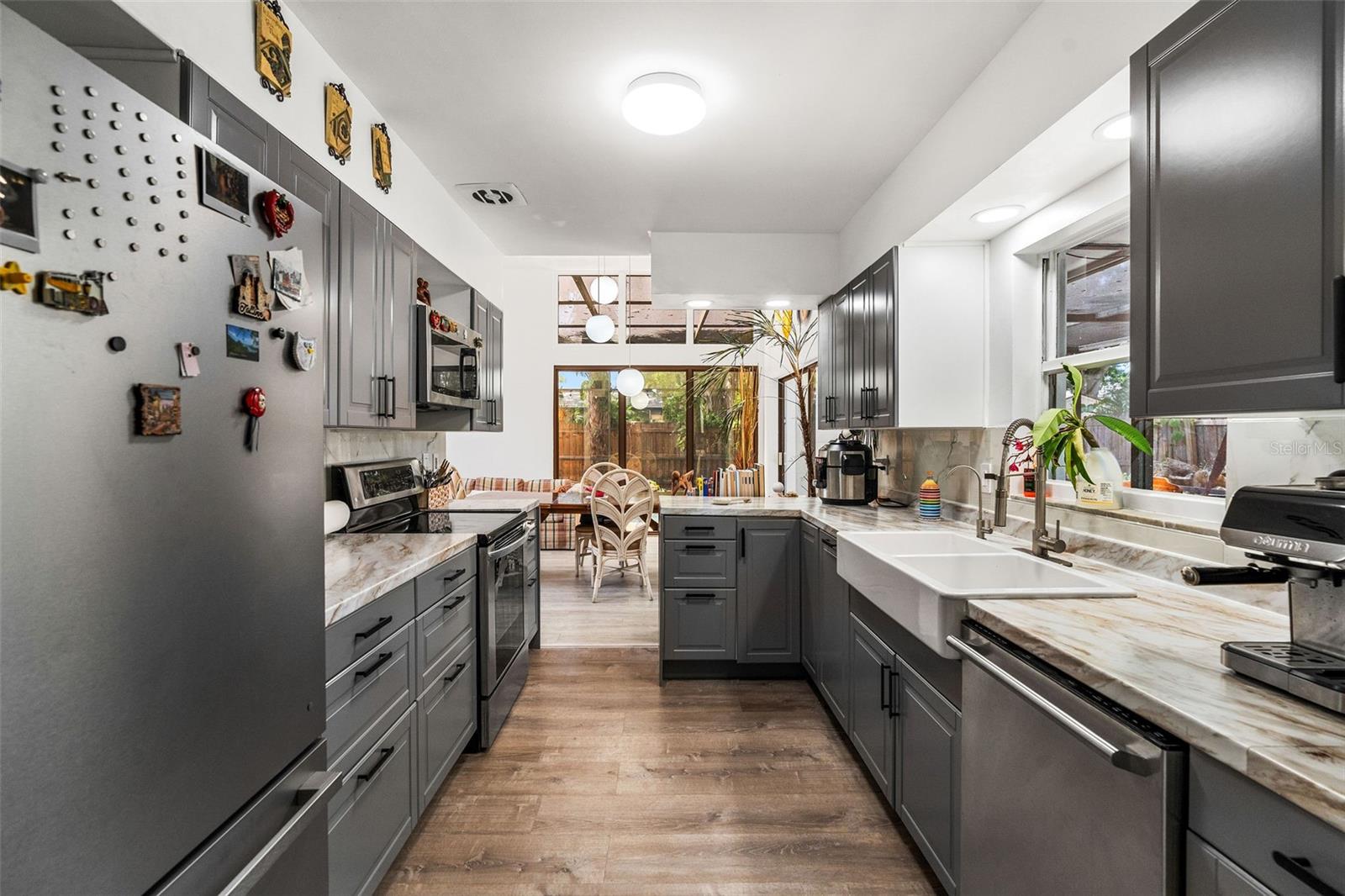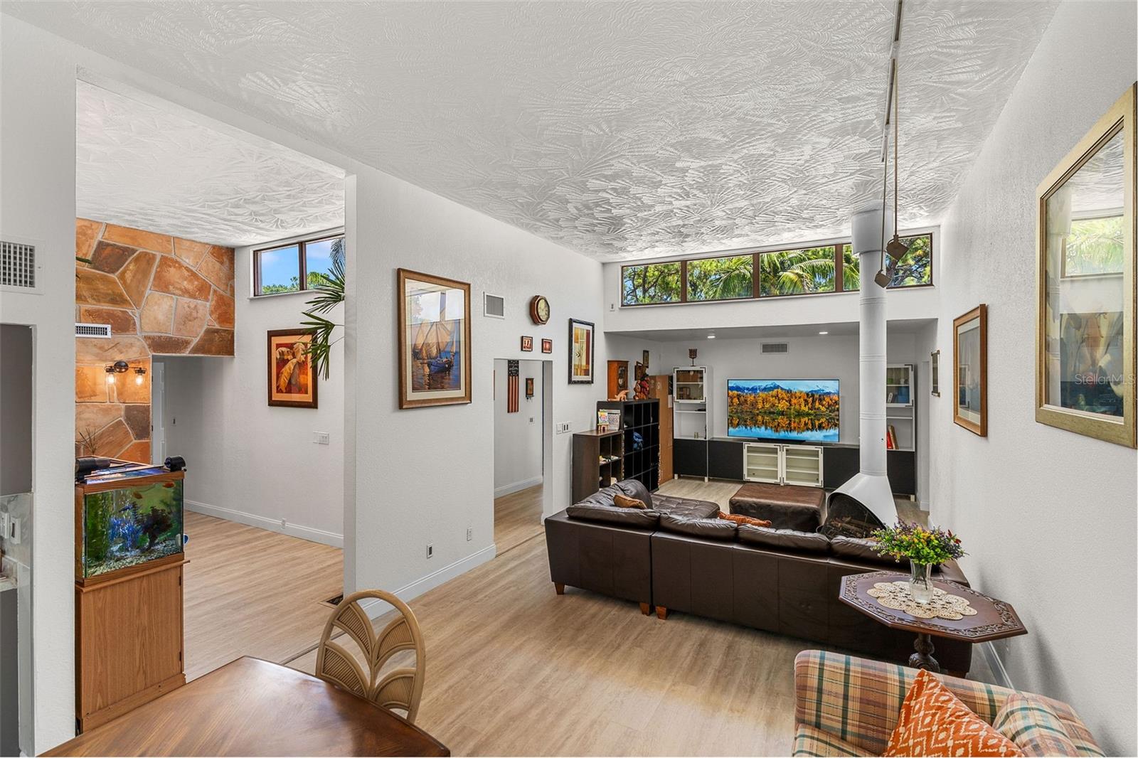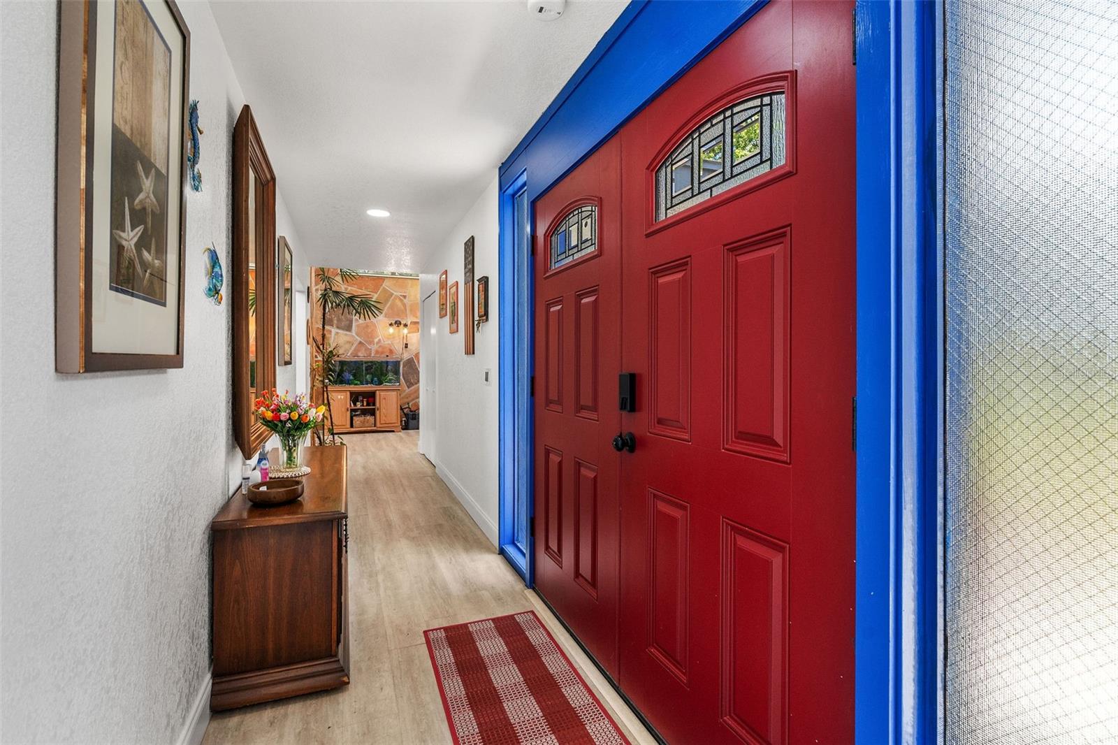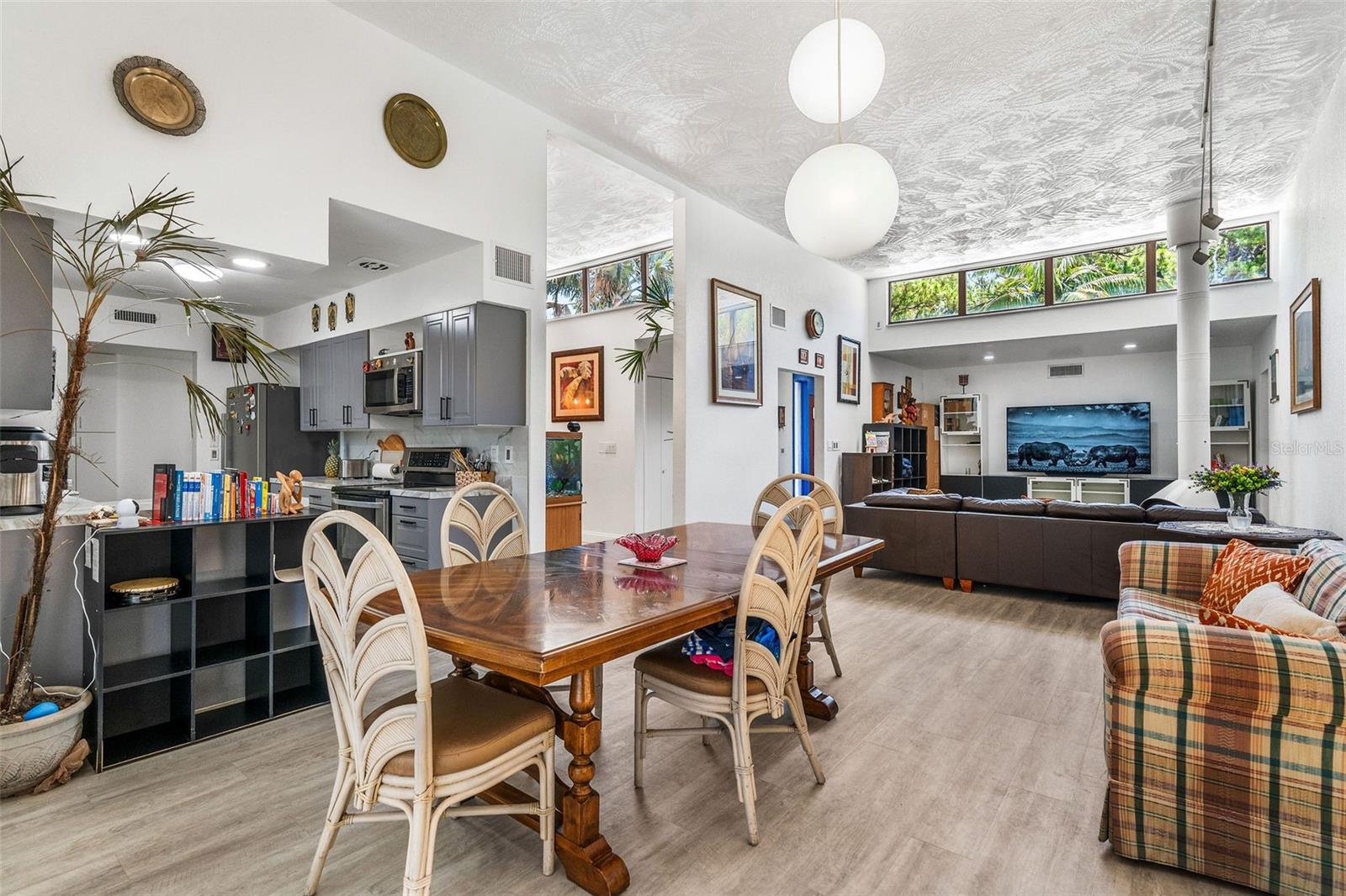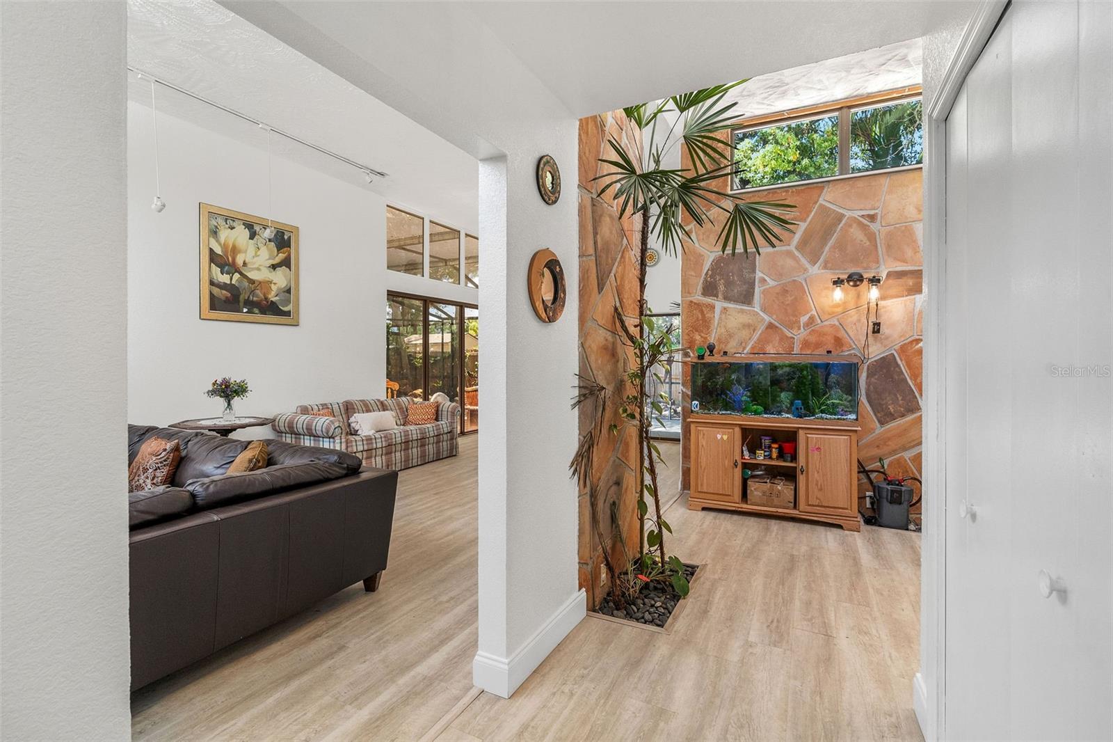 Sem zona de inundação. Esta casa não é totalmente afetada por Milton e Helene. Venha e veja este oásis moderno de Frank Lloyd, moderno de Frank Lloyd, totalmente remodelado, no coração do condado de Pinellas, na Flórida. Esta casa foi construída e projetada pelo famoso escritor, autor e ator sob o disfarce do capitão do Titanic Sr. Lowell Lytle, que conseguiu refletir perfeitamente o estilo de Frank Lloyd Wright, da qual ele é um profundo admirador. Construído em 1965 com Frank Lloyd Wright em mente, possui cinco quartos e quatro banheiros completos, e fica a pouco menos de 2500 pés quadrados de espaço vital. A casa foi totalmente remodelada e teve dois banheiros completos permitidos que acabaram de ser adicionados. A primeira coisa que você notará quando entrar nesta casa de piscina remodelada é a abundância de luz natural que ilumina a casa através das inúmeras janelas localizadas adjacentes aos tetos por toda a casa e pelas várias portas deslizantes na sala de estar e em um dos três quartos primários. Quando você entra na casa, através da porta de entrada dupla recentemente REATON, um amplo hall de entrada o receberá, que leva a um átrio de 12 pés de altura completo com paredes naturais de pedra e árvores vivas plantadas em plantadores de piso embutidos personalizados, com muitas janelas em cima para iluminar seu dia! A sala de estar adjacente de 37 pés de comprimento, com seu teto alto, muitas janelas na parte superior e dois grandes portas deslizantes que se abrem para o deck coberto externo, pátio e piscina, mistura harmoniosamente o espaço interior com a natureza externa, assim como Frank Lloyd Wright pretendia. Você poderá viver a vida da Flórida protegida pela gaiola da piscina recém -resgatada com suas portas totalmente abertas. A cozinha longa da galera se abre para a sala de estar e está pronta para entreter seus convidados, com uma nova bancada e novos armários superiores. O proprietário também teve os pisos atualizados com novas tábuas de vinil por toda parte. No lado direito da casa, há dois quartos de hóspedes, o banheiro remodelado de hóspedes e o quarto principal original com seu chuveiro recém -refeito e uma nova banheira de banho grátis. No lado esquerdo da casa, à direita pela porta de entrada, você verá o segundo grande quarto principal com seu novo banheiro privativo. Se você percorrer o comprimento completo de 37 pés da grande sala, chegará ao novo quarto primário de tamanho grande, com seu amplo banheiro e acesso direto a um pátio privado coberto e a área da piscina onde você pode saborear o café da manhã a qualquer hora do dia. O lote está totalmente cercado e há muito espaço de grama, além da área de piscina exibida. Você será recebido por lindas palmeiras e plantas na frente da casa e por uma longa calçada circular para seus carros. The list of recent improvements include the following: 2 full just built bathrooms, with a permitted extension, a new tankless water heater that services one side of the home, in addition to the new existing one, a new 2nd electric panel, the main electric panel was redone a couple of years ago, a recent major components AC change, that includes a new compressor and coils in one of the two AC systems, new vinyl floors throughout, new upper cabinets in the kitchen, new kitchen As bancadas, os dois banheiros existentes foram completamente remodelados, o teto foi recentemente totalmente revestido com a superfície de silicone e elastomérico, de seixos, foi refeito em 2020 pelo proprietário anterior, uma nova bomba de velocidade variável e um novo sistema de sal de piscina, novas telas de gaiola de piscina. Pinellas Park é amigável para aluguel de curto prazo!