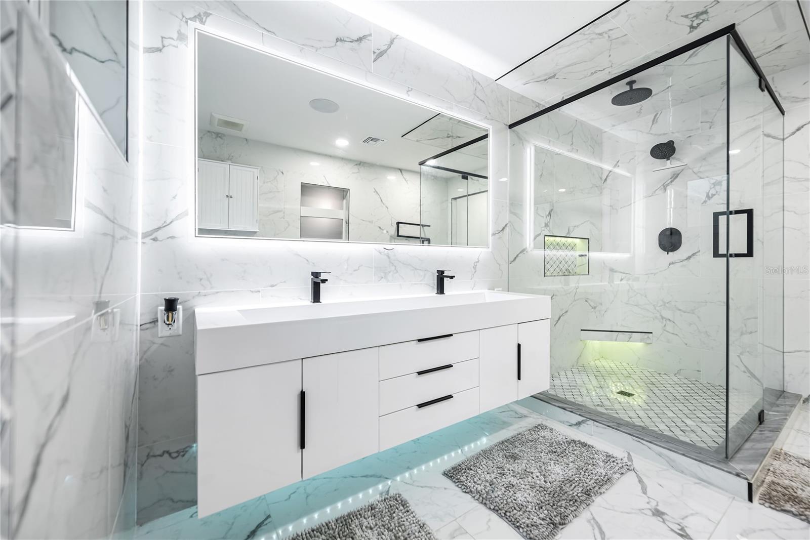 Entre na casa que você sempre sonhou! Esta residência lindamente atualizada de quatro quartos e dois banheiros na desejável comunidade de Bonnie Bay é uma joia de destaque pronta para você chamar de sua. Ao entrar, você apreciará imediatamente o luxuoso piso laminado que flui perfeitamente por toda a casa, complementado por novos rodapés de 5 1/2 polegadas e sancas deslumbrantes em todos os cômodos. A convidativa sala de estar possui uma parede decorativa elegante que inclui uma lareira elétrica embutida e uma requintada iluminação LED que realça a estética moderna, criando uma atmosfera calorosa e acolhedora. Esta casa recém-pintada tem uma planta dividida que garante privacidade e conforto. A suíte master é um verdadeiro retiro com um layout espaçoso e um banheiro meticulosamente reformado com porcelanato no chão, nas paredes e até no teto acima do lindo box amplo, que inclui vários chuveiros e um nicho iluminado com luz LED. A moderna pia flutuante, o aquecedor de toalhas montado na parede e o elegante espelho LED antiembaçante completam esta experiência de spa. O amaciante de água tem apenas 6 meses. Você também vai adorar o novo closet personalizado, que oferece amplo espaço para ele e ela, com muito espaço para sapatos! Os outros três quartos, localizados no lado oposto da casa, são generosos e bem decorados, sendo que o segundo banheiro também possui piso de porcelanato e atenção aos detalhes. Todas as portas e ferragens internas foram atualizadas para estilos modernos e todas as janelas estão equipadas com venezianas de vinil, realçando a elegância geral da casa. Ao entrar na garagem, prepare-se para se surpreender com o impressionante piso de mármore epóxi acentuado com iluminação hexagonal que cria uma sensação de showroom para seu valioso veículo. A entrada frontal de grandes dimensões oferece espaço adicional para todos os seus brinquedos e carros, garantindo comodidade para você e seus convidados. O belo paisagismo do quintal e do quintal são totalmente irrigados com água recuperada, mantendo a grama exuberante e vibrante o ano todo. Aprimore sua experiência ao ar livre com iluminação LED de alta qualidade que muda de cor tanto no quintal quanto no quintal, perfeita para aquelas noites encantadoras na Flórida. Com um telhado novo que tem apenas dois anos e painéis solares Panasonic eficientes instalados (que podem ser assumidos com uma taxa de juros baixa), suas contas de luz custam surpreendentemente baixos US $ 35 mensais! O quintal é perfeito para abraçar o estilo de vida da Flórida, oferecendo um espaço sereno para os amantes das plantas tropicais relaxarem e descontrairem em seu próprio pedaço do paraíso. Esta propriedade também apresenta uma oportunidade incrível para investidores sem restrições de período mínimo de locação no Pinellas Park, tornando-a ideal para aluguéis de curta duração! Aproveite a conveniência de estar centralmente localizado no Condado de Pinellas, a apenas 30 minutos de carro do Aeroporto Internacional de Tampa, a 15 minutos de carro do Aeroporto St. Pete Clearwater e a uma viagem fácil de 15 minutos das principais praias da Flórida, incluindo St. Pete, Ilha do Tesouro, Madeira Beach e Redington Shores. Não perca a oportunidade de possuir esta obra-prima pronta para uso, onde a elegância moderna encontra a conveniência. Seguro contra inundações não é necessário. Agende sua exibição privada hoje – esta casa deslumbrante não durará muito!