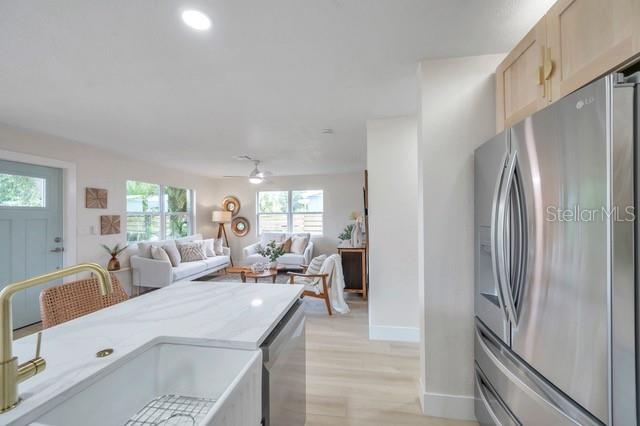 Bem-vindo a esta encantadora casa de 3 quartos e 1 banheiro nas ruas pitorescas do Parque Pinellas. Esta propriedade perfeita para o Pinterest fica em um terreno espaçoso e foi remodelada profissionalmente para apresentar bancadas de quartzo, um backsplash de azulejos elegante e belos azulejos no banheiro. A cozinha possui deslumbrantes armários de madeira natural e prateleiras flutuantes, apresentando um espaço com design impecável. Aproveite a conveniência de estar perto de praias e rodovias e aprecie a nova calçada pavimentada, o paisagismo profissional e as novas janelas. Relaxe na varanda protegida, tornando esta casa uma verdadeira jóia.