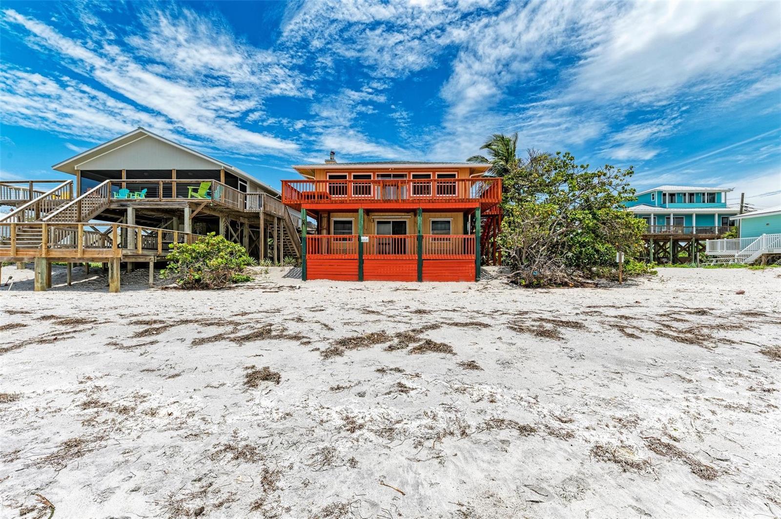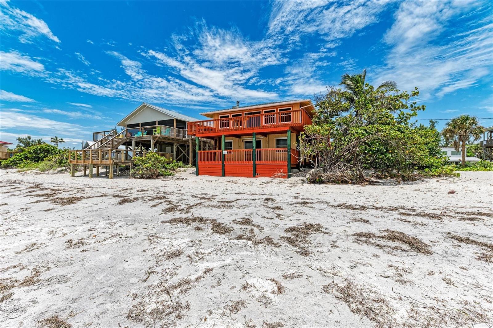 Bem-vindo ao seu próprio pedaço do paraíso! Este duplex excepcional está situado na Ilha Little Gasparilla, onde o jardim da frente é a praia de areia fina voltada diretamente para o oeste, no Golfo do México. Você terá vistas completas e diretas do pôr do sol em qualquer época do ano, criando um cenário idílico para momentos inesquecíveis. Imagine observar golfinhos nadando graciosamente nas águas azul-turquesa da sua varanda particular ou lançando uma linha de pesca nas ondas suaves direto da praia. Com a capacidade de puxar seus brinquedos aquáticos até a porta da frente, esta casa oferece infinitas oportunidades para a família e amigos se deleitarem com o estilo de vida costeiro. O nível superior apresenta uma espaçosa disposição de 3 quartos e 2 casas de banho com um design de conceito aberto, complementada por uma encantadora lareira a lenha. Enquanto isso, o andar principal possui uma conveniente suíte para sogros com 1 quarto e 1 banheiro, proporcionando flexibilidade e privacidade para hóspedes ou familiares. Ambas as unidades têm utilidades separadas e seu próprio grande deck voltado para o oeste, perfeito para apreciar as vistas deslumbrantes. Esta joia exala o charme da antiga Flórida e oferece versatilidade, quer você esteja procurando uma residência principal, um paraíso de férias ou uma propriedade de renda. Acessível apenas por transporte aquático, esta casa promete exclusividade e serenidade, fazendo inveja a familiares e amigos. Com apenas um número limitado de duplexes na ilha, oportunidades como esta são raras e muito procuradas. A doca não escriturada da casa, disponível por uma taxa nominal de aluguel anual, fica a apenas uma curta caminhada da propriedade, garantindo um deslocamento perfeito para o seu oásis na ilha. Os serviços municipais de água e fossa séptica proporcionam conveniência moderna, e um NOVO TELHADO aumenta ainda mais o apelo da propriedade. Quer seja um comprador exigente à procura de um refúgio pessoal ou um investidor à procura de uma oportunidade única de rendimento, esta propriedade irá certamente cativar compradores nacionais e internacionais. Não perca esta oportunidade de abraçar a qualidade de vida e as infinitas possibilidades que o aguardam neste paraíso costeiro! Esta é verdadeiramente uma vida de verão sem fim!
