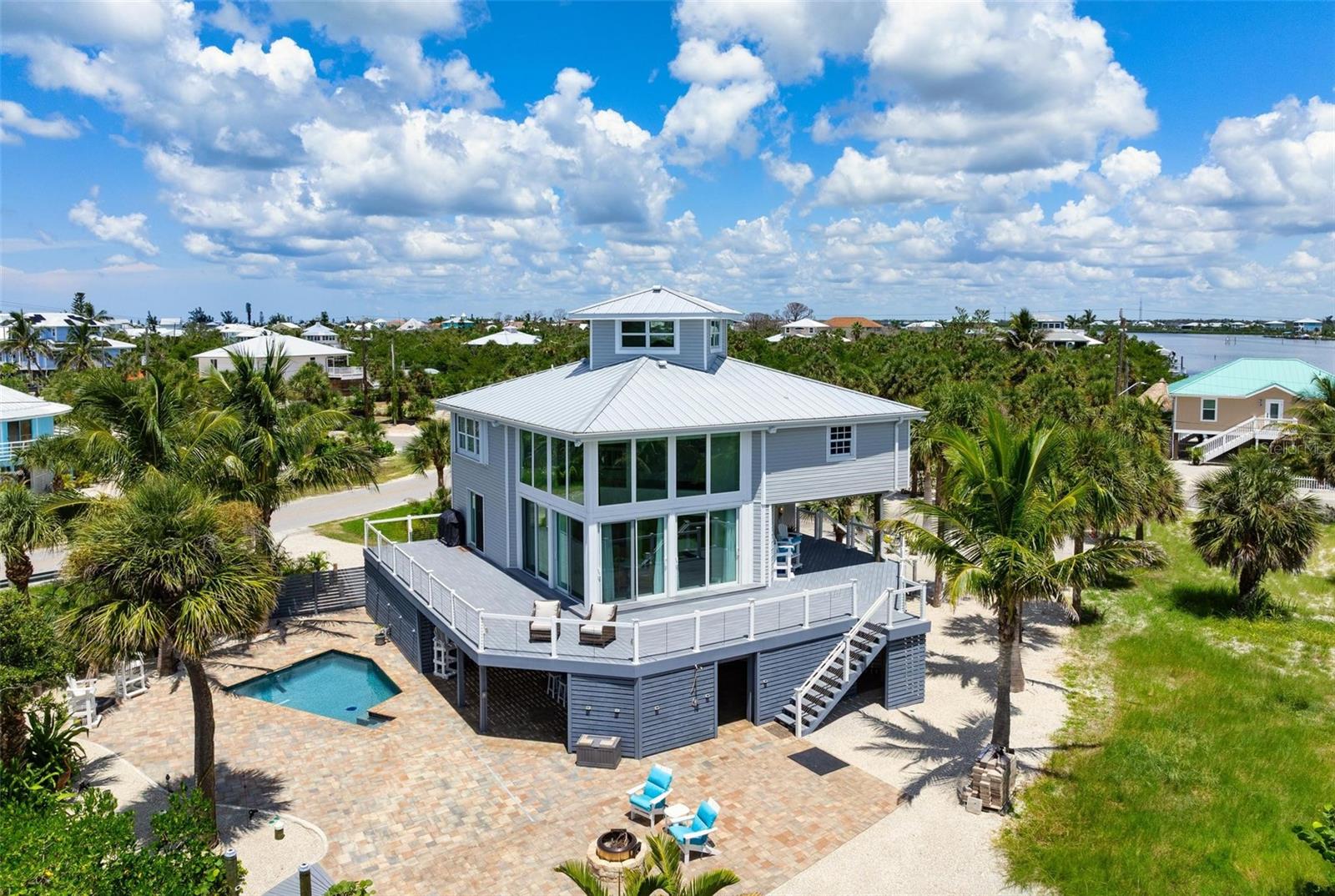 Bem -vindo a Palm Island - onde o velho charme da Flórida encontra a elegância à beira -mar. Descubra um refúgio costeiro atemporal em Palm Island, onde o ritmo suave das ondas e a brisa salgada criam um cenário sereno para a vida cotidiana. Este retiro elevado totalmente mobiliado captura a essência do estilo de vida da Flórida com praias tranquilas e forradas, abundantes animais selvagens, pesca de classe mundial e acesso direto a passeios de barco da sua doca privada, com um elevador de 10.000 libras e uma área aconchegante do lado de fora da porta dos fundos. Sem pontes entre você e a hidrovia intracoastal ou o Golfo do México, suas aventuras de barco começam sem esforço. No interior, a casa oferece 3 quartos espaçosos, 3 banheiros completos e um loft versátil ideal para um escritório em casa ou covil. A suíte de convidado no andar de baixo inclui um banho privativo de banheiro privativo, enquanto o segundo nível revela um loft iluminado pelo sol com vistas deslumbrantes da água. A suíte primária é um retiro tranquilo com seu próprio banheiro generoso, e um quarto adicional de hóspedes está convenientemente localizado perto de um banho completo. Saia para o amplo Lanai, onde várias áreas de estar e guarda -chuvas convidam você a relaxar e apreciar as vistas de tirar o fôlego do Historic Bocilla Pass. Tetos abobadados com vigas expostas e portas de vidro do chão ao teto enchem o espaço de estar de conceito aberto com luz natural, criando um fluxo contínuo de interior externo perfeito para entretenimento ou reflexão silenciosa. Abaixo da casa, um espaço de reunião sombreado oferece mais um local para hospedar amigos e familiares. Com vidro resistente ao impacto, persianas de furacões e uma série de atualizações atenciosas, incluindo um novo telhado de metal instalado em 2021, esta casa combina durabilidade com sofisticação costeira.