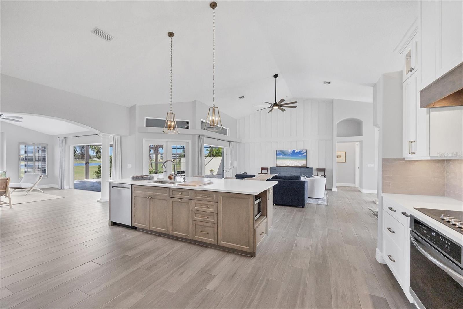 Uma ou mais fotos foram virtualmente encenadas. Experimente a luxuosa vida na Flórida nesta casa recém-remodelada de 4 quartos e 4 banheiros, perfeitamente posicionada em um terreno de esquina na cobiçada comunidade de Cape Haze Windward. Com 2.721 pés quadrados de área de estar espaçosa, esta grande residência apresenta uma planta aberta com tetos abobadados altos e três conjuntos de portas de vidro deslizantes que combinam perfeitamente a vida interna e externa, apresentando vistas deslumbrantes do campo de golfe e do lago. Completamente renovada em 2021, a peça central da casa é a deslumbrante cozinha do chef, reimaginada com uma ilha enorme, armários personalizados, eletrodomésticos de última geração, fogão e exaustor e elegantes bancadas de pedra. As atualizações continuam com um novo telhado de metal premium, banheiros lindamente remodelados e elegantes pisos de tábuas em toda a casa. Saia para a ampla varanda com tela e uma grande piscina, oferecendo um espaço sereno para relaxar enquanto aprecia as vistas panorâmicas do campo de golfe e o pôr do sol vibrante. A propriedade também oferece vistas parciais do pitoresco canal Coral Creek. Localizada perto de lojas essenciais, três marinas de serviço completo, restaurantes requintados, campos de golfe públicos e privados, e também a poucos minutos da histórica Boca Grande, pesca e passeios de barco de classe mundial, praias serenas, esta casa combina elegância, conforto e uma localização imbatível em um pacote verdadeiramente especial.