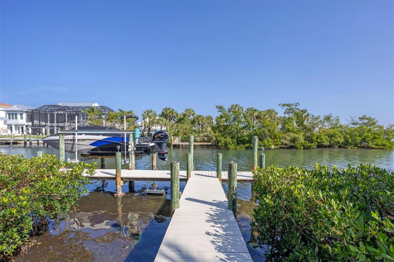 Bem -vindo a Palm Island! Se tudo se trata de passeios de barco e espaço para entreter familiares e amigos, esta casa oferece isso e muito mais. Os jardins são lindamente decorados com folhagem da Flórida e pátio pavimentado e garagem e garagem coberta. Para suas necessidades de barco, esta propriedade oferece uma doca com 10.000 # elevador de barco em um canal de água salgada, com apenas alguns minutos de passeio de barco para entrar na ICW e depois uma curta viagem ao Golfo do México sem obstruções de ponte. Esta casa de Key West Style tem uma varanda envolvente e uma área de entretenimento à beira -mar, medindo 10 x 40 na área de entretenimento. Os dois grandes conjuntos de portas de vidro deslizantes oferecem enormes vistas externas da sala de estar, sala de jantar e cozinha, com tetos altos. 3 quartos espaçosos e 2 banheiros. Venha morar em Palm Island.