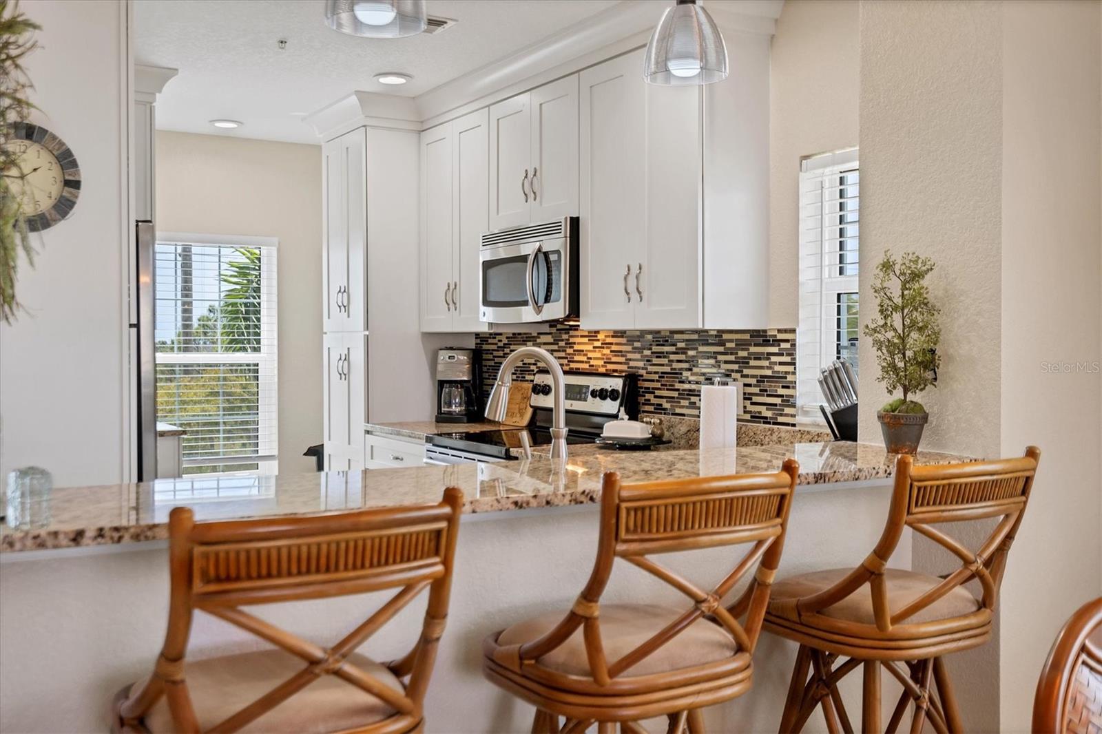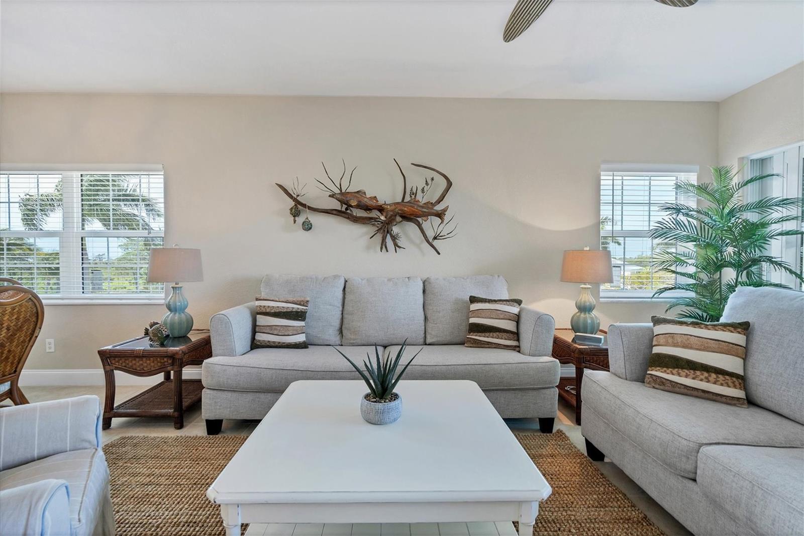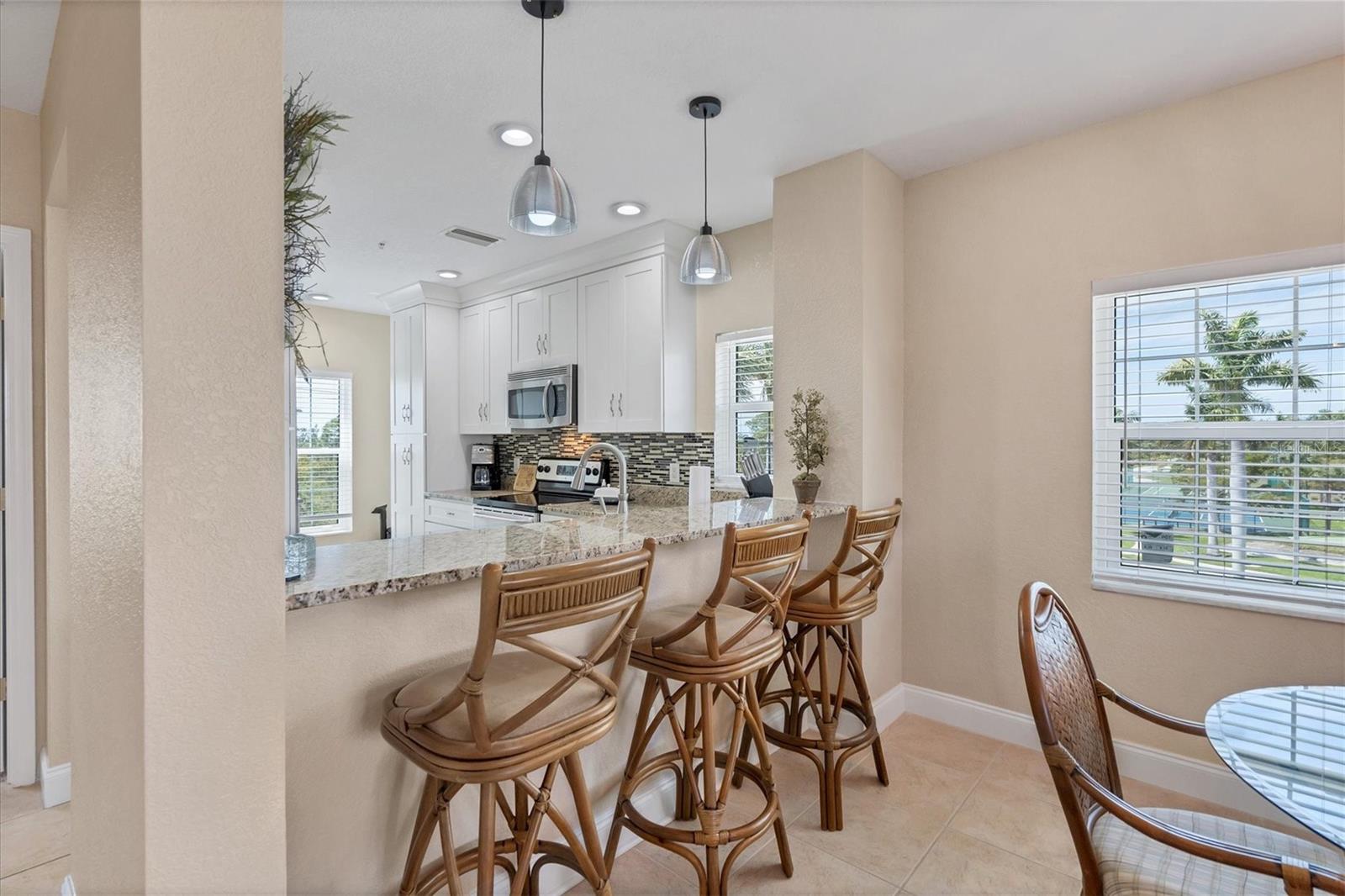 Esta requintada unidade de canto oferece vistas deslumbrantes para o lago e passou por reformas de bom gosto para atender aos padrões modernos. Com 3 quartos, 2 banheiros e garagem para 1 carro, esta residência oferece uma experiência de vida luxuosa. As atualizações recentes incluem janelas e portas resistentes a impactos instaladas em 2024, juntamente com um novo aquecedor elétrico de água. Em 2023, foram acrescentados um novo telhado metálico, intradorsos, calhas, calhas e drywall, garantindo durabilidade e apelo estético. A cozinha foi transformada com elegantes armários brancos, bancadas em granito e backsplash decorativo de azulejos, complementados por eletrodomésticos em aço inoxidável. Azulejos neutros adornam as principais áreas de estar, enquanto carpetes novos acrescentam conforto aos quartos. A suíte master possui um closet e um banheiro totalmente reformado com uma elegante penteadeira branca com pias duplas, bancadas de granito e um chuveiro recém-revestido. O banheiro de hóspedes também brilha com uma nova penteadeira branca, bancadas de granito e uma banheira/chuveiro com azulejos recém-revestidos. Relaxe ou divirta-se na varanda, que apresenta uma nova exibição no-see-um e vistas encantadoras do lago. Esta residência conta com garagem para 1 carro e depósito 7 x 7, proporcionando amplo espaço para seus pertences. A maioria dos móveis está disponível através de um contrato separado. Os residentes podem desfrutar de comodidades em estilo resort no Cape Haze Resort, incluindo piscina aquecida, spa, clube, academia, pickleball, tênis, basquete e vários eventos sociais. Convenientemente localizada perto de Boca Grande, praias, restaurantes locais, campos de golfe e muito mais, esta propriedade oferece um pedaço do paraíso para compradores exigentes.