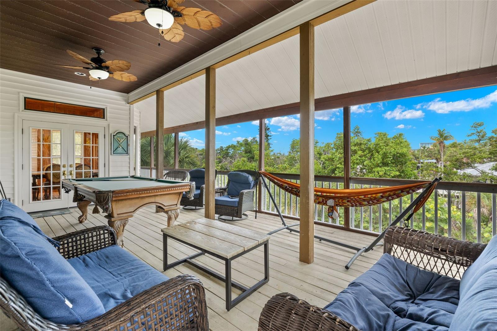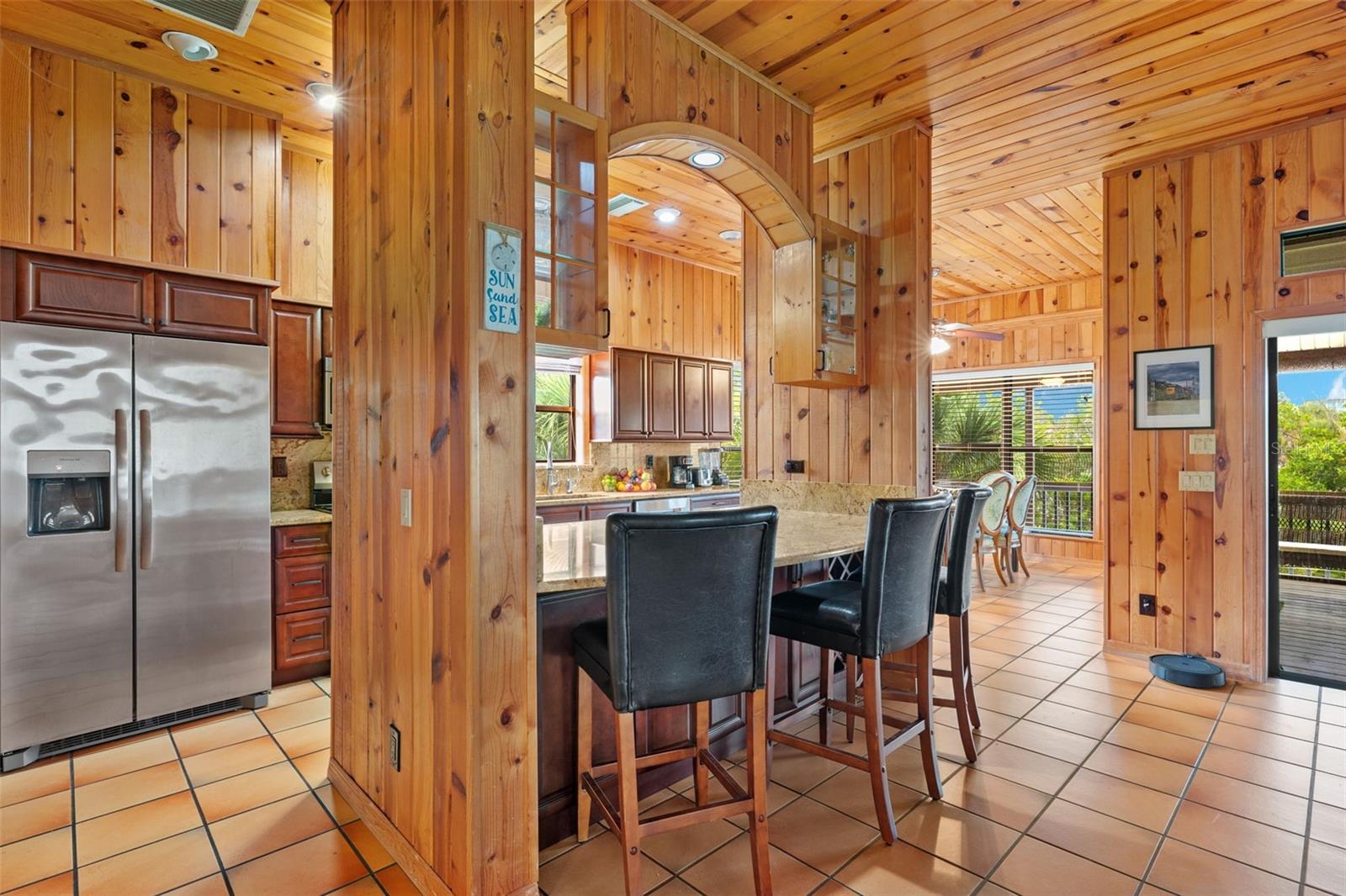 Preço certo! Localizada em uma ilha barreira com 11 quilômetros de praia imaculada, esta casa à beira-mar oferece vistas do pôr do sol e do Golfo a partir do seu quarto principal e acesso direto ao Golfo do México. Lote de esquina amplo com espaço para piscina. Atraque e levante em um canal de água salgada sem pontes para o Golfo. Planta aberta, grande sala grande, azulejos espanhóis, paredes e tetos de pinho nodoso. Cozinha remodelada com granito de palco, pia de granito, luzes embutidas, eletrodomésticos Energy Star em aço inoxidável, garrafeira, ilha de cozinha com laje de granito arqueada. Belos pisos de madeira. Banheiro principal em travertino com chuveiro de efeito chuva. Pias duplas no banheiro Master. Há uma cisterna de 1.500 galões conectada ao sistema de calhas. A casa está conectada à água pública e ao cabo Comcast. 15 seer Trane ar condicionado com luz UV. Telhado metálico com barreira radiante. Corrimão de caminhada. Varanda de tela no 2º andar. Paisagismo amigável na Flórida com várias plantas. Deck hexagonal sob as palmeiras. Todo mundo merece viver em uma ilha tropical quente cercada pela natureza, praias imaculadas, conchas e um ambiente tranquilo. A casa oferece um valor excepcional e tem o acesso direto de barco 3/2 com o menor preço em Palm Island.