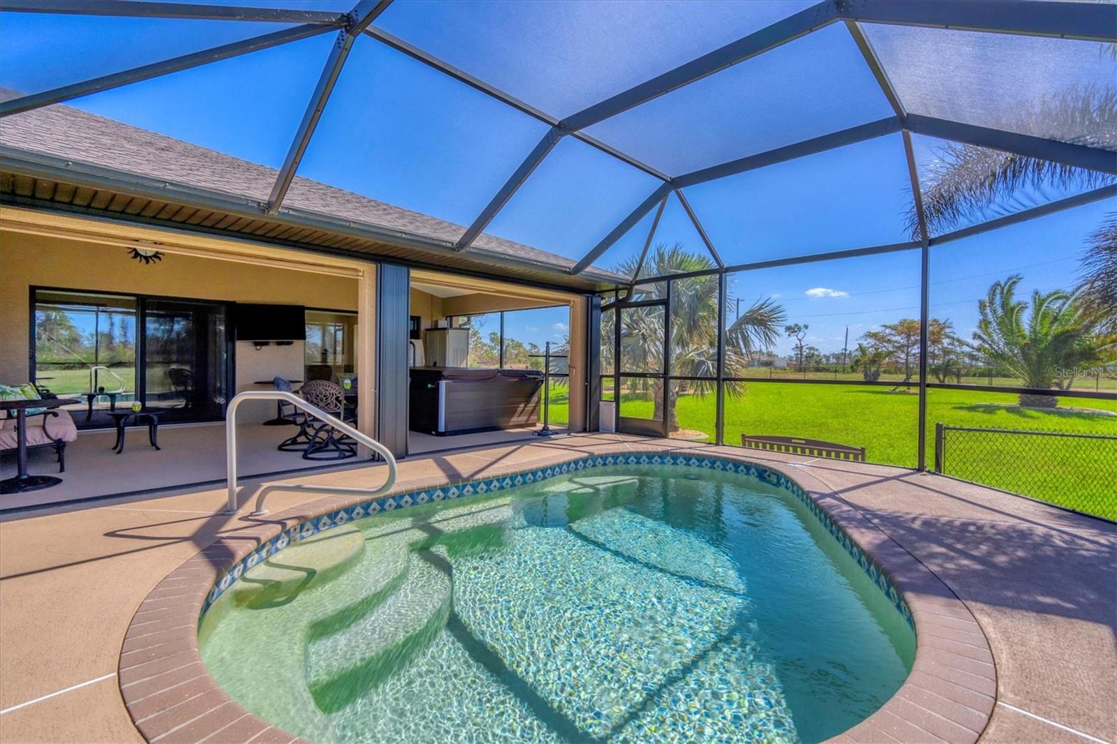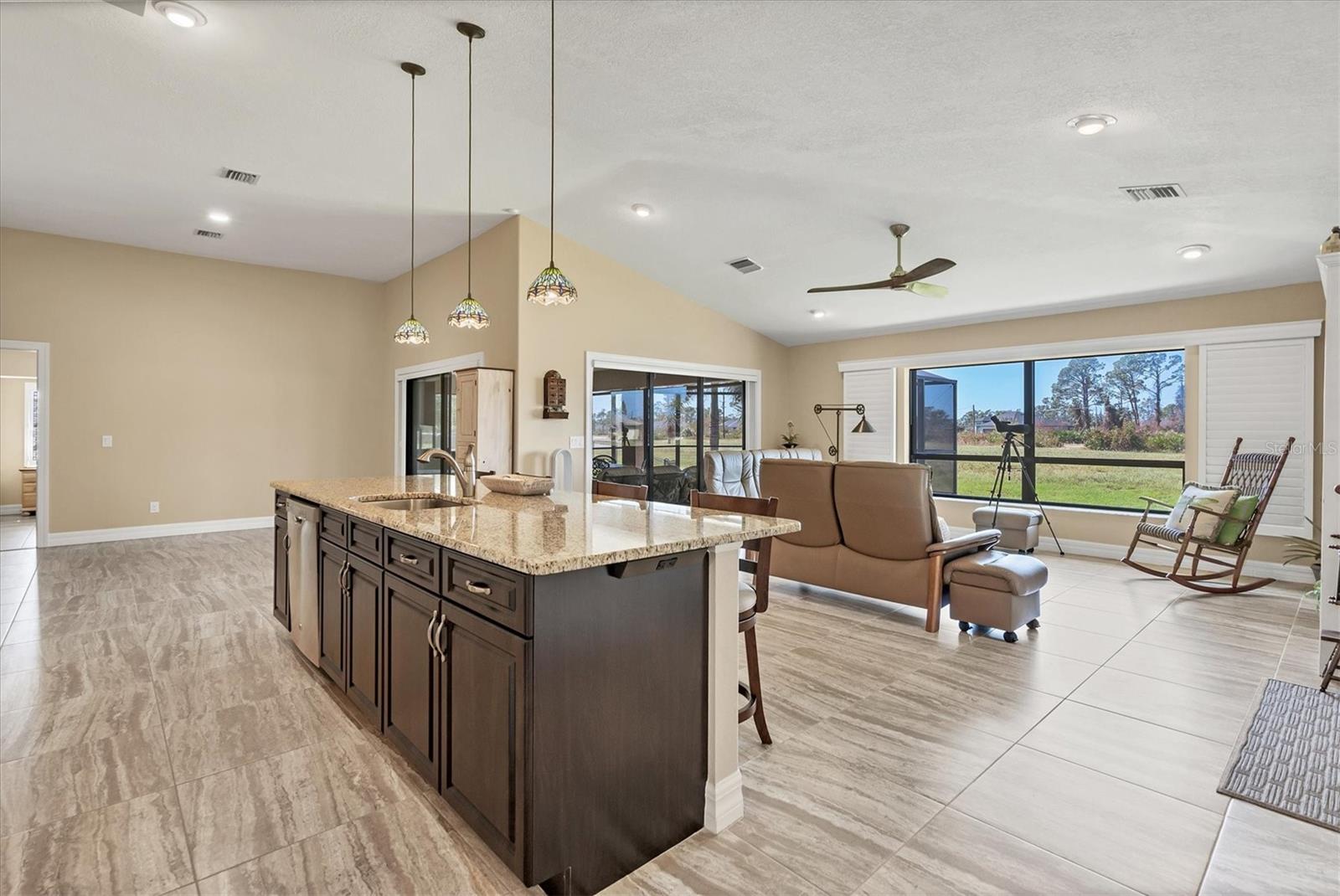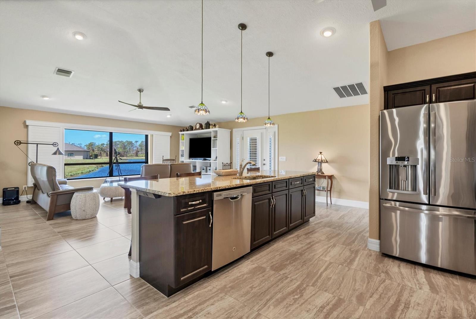 Casa construída sob medida em três lotes em uma zona de inundação X. Projetado para aproveitar ao máximo suas belas vistas abertas do lago. Quarto primário, lanai, sala de jantar e grande sala, desfrute de vistas desobstruídas da natureza em constante mudança, da vida selvagem da Flórida e da água cintilante. Sem mencionar o pôr do sol espetacular. Desde o momento em que você entra nesta grande sala aberta projetada para casa, você está banhado em luz natural das grandes janelas e inúmeras portas de vidro deslizantes que o atraem em direção à piscina de água salgada coberta de tamanho grande e enjaulado. Belos pisos de ladrilhos em toda a área de estar interior fornecem calor e facilidade de cuidado. A cozinha sofisticada possui utensílios de aço inoxidável, balcões de granito tops de ladrilhos personalizados de back-slash, fã de aço inoxidável e ilha de cozinha aberta. Banheiro primário de luxo com caminhada romana de tamanho grande no chuveiro e vaidades duplas. O quarto primário possui um teto de alojamento, portas de vidro deslizantes que se abrem para a área de Lanai e piscina e 2 armários grandes. O segundo banheiro tem um passeio no chuveiro romano e acessa o 2º. e 3 quartos. Lavanderia interna. Cercado no quintal. Generac Generac Generac inteiro conectado a uma tomada de propano de 500 libras o manterá você se o elétrico for apagado. As persianas do acordeão ajudarão a proteger contra os elementos. As atualizações incluem nova pintura exterior (2024), garagem isolada, porta mais ampla para acesso a cadeira de rodas. Venha conferir esta casa bem conservada. Convenientemente localizado para fazer compras, restaurantes, campos de golfe, pioneira de bicicleta, marinas com acesso direto ao Golfo do México e à hidrovia entre coastal, praias primitivas do Golfo, ilha de Boca Grande e pesca de classe mundial. Se você está procurando sua casa especial de sonho da Flórida, encontrou -a.