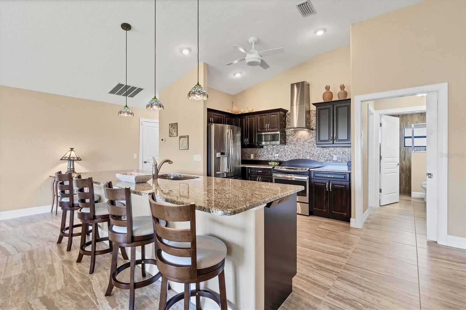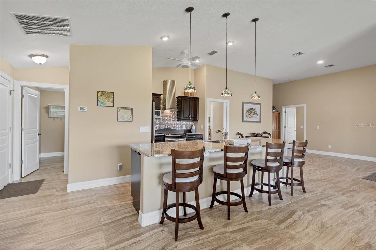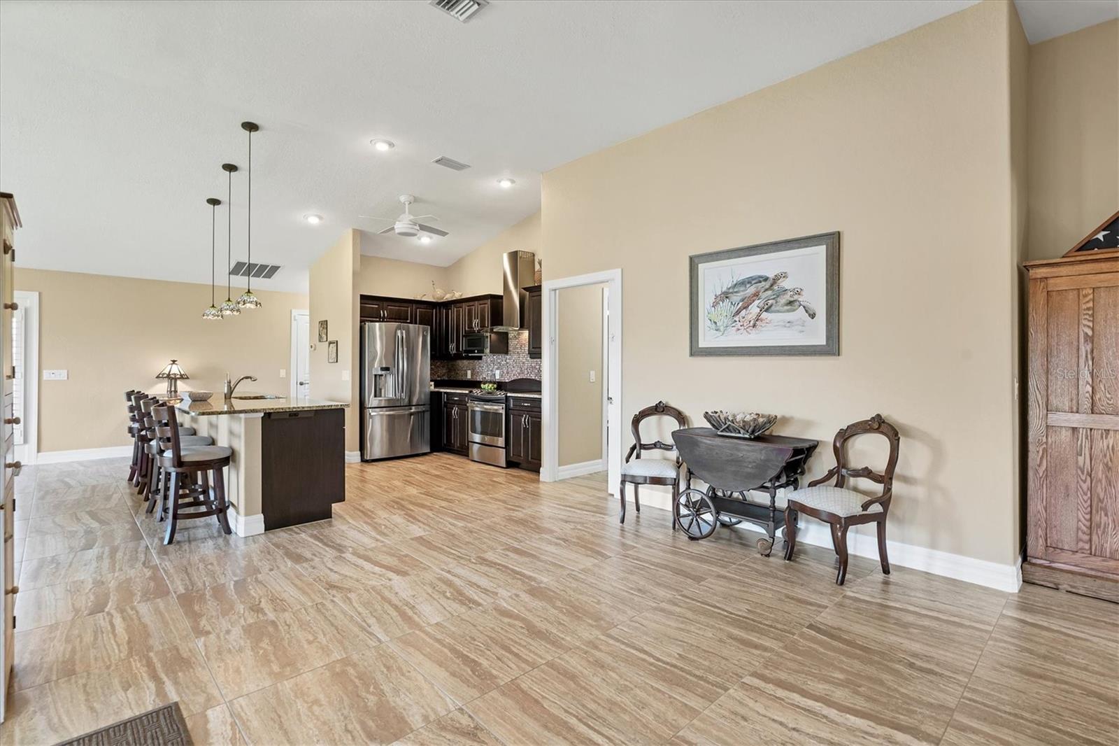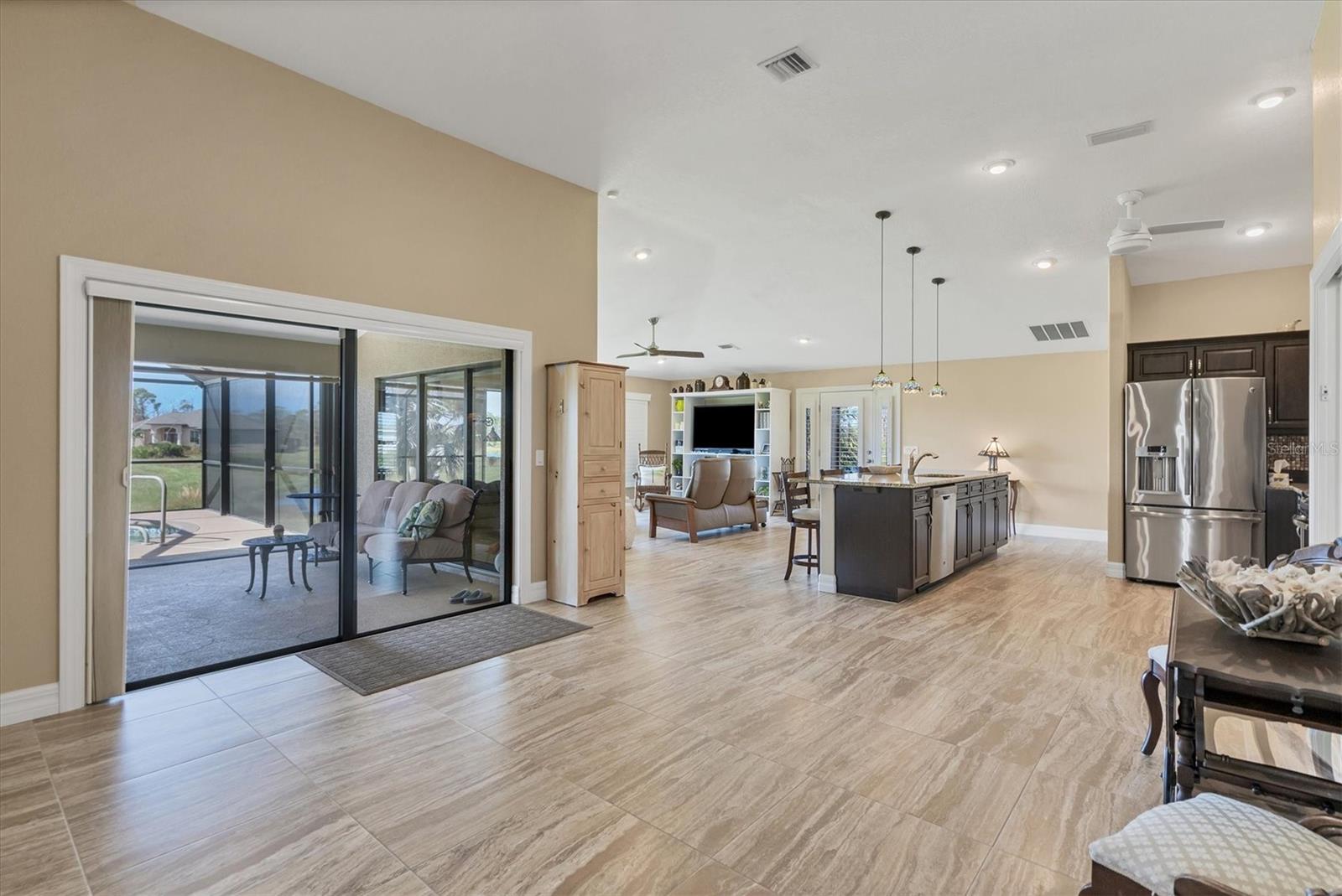 Casa construída sob medida em três lotes em uma zona de inundação X. Projetado para aproveitar ao máximo suas belas vistas abertas do lago. Quarto primário, lanai, sala de jantar e grande sala, desfrute de vistas desobstruídas da natureza em constante mudança, da vida selvagem da Flórida e da água cintilante. Sem mencionar o pôr do sol espetacular. Desde o momento em que você entra nesta grande sala aberta projetada para casa, você está banhado em luz natural das grandes janelas e inúmeras portas de vidro deslizantes que o atraem em direção à piscina de água salgada coberta de tamanho grande e enjaulado. Belos pisos de ladrilhos em toda a área de estar interior fornecem calor e facilidade de cuidado. A cozinha sofisticada possui utensílios de aço inoxidável, balcões de granito tops de ladrilhos personalizados de back-slash, fã de aço inoxidável e ilha de cozinha aberta. Banheiro primário de luxo com caminhada romana de tamanho grande no chuveiro e vaidades duplas. O quarto primário possui um teto de alojamento, portas de vidro deslizantes que se abrem para a área de Lanai e piscina e 2 armários grandes. O segundo banheiro tem um passeio no chuveiro romano e acessa o 2º. e 3 quartos. Lavanderia interna. Cercado no quintal. Generac Generac Generac inteiro conectado a uma tomada de propano de 500 libras o manterá você se o elétrico for apagado. As persianas do acordeão ajudarão a proteger contra os elementos. As atualizações incluem nova pintura exterior (2024), garagem isolada, porta mais ampla para acesso a cadeira de rodas. Venha conferir esta casa bem conservada. Convenientemente localizado para fazer compras, restaurantes, campos de golfe, pioneira de bicicleta, marinas com acesso direto ao Golfo do México e à hidrovia entre coastal, praias primitivas do Golfo, ilha de Boca Grande e pesca de classe mundial. Se você está procurando sua casa especial de sonho da Flórida, encontrou -a.