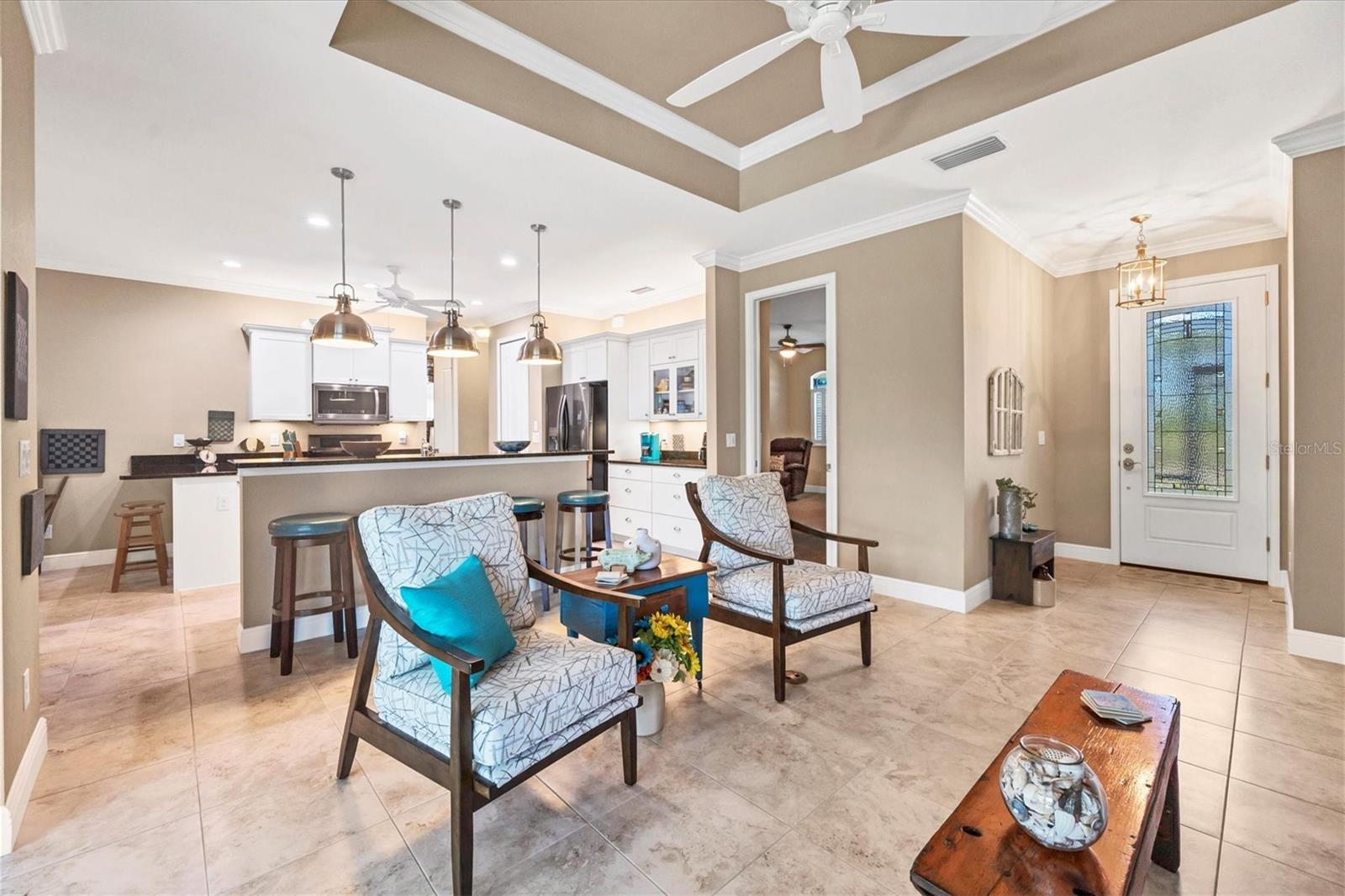 Bem-vindo à casa dos seus sonhos, situada na tranquila comunidade de Rotonda Sands, onde o luxo encontra o conforto nesta residência personalizada de 3 quartos e 2 banheiros, com um quarto bônus, bem como um quarto familiar e uma vista pitoresca do lago. Entre para descobrir o epítome da elegância com portas internas sólidas de 2,10 metros que guiam você pelos amplos espaços de estar. O coração desta casa está na sala de estar, onde as reuniões acontecem sem esforço tendo como pano de fundo vistas serenas do lago. Cada detalhe exala sofisticação, desde os armários atualizados até as reluzentes bancadas de granito da cozinha gourmet, onde as criações culinárias ganham vida. Experimente tranquilidade com janelas de impacto por toda parte. Delicie-se com o máximo relaxamento com telas inteligentes contra tempestades elétricas adornando a varanda, integrando perfeitamente espaços internos e externos. Abra as portas de correr da varanda e mergulhe na brisa suave e nas vistas cativantes. Retire-se para o luxuoso banheiro principal com banheira personalizada e box amplo, convidando você a relaxar após um longo dia. As sancas adornam as principais áreas de estar, adicionando um toque de requinte a cada canto. O telhado foi substituído em 2024, garantindo tranquilidade duradoura. Abrace o estilo de vida da Flórida com uma piscina aquecida de água salgada com vista para o lago tranquilo, oferecendo um oásis sereno para relaxamento e recreação. Diga adeus aos problemas de irrigação com irrigação alimentada por lago, garantindo uma vegetação exuberante durante todo o ano. Bem-vindo a um estilo de vida de luxo e tranquilidade em Rotonda Sands, onde cada detalhe foi meticulosamente elaborado para o proprietário exigente que busca a combinação perfeita de elegância e conforto.