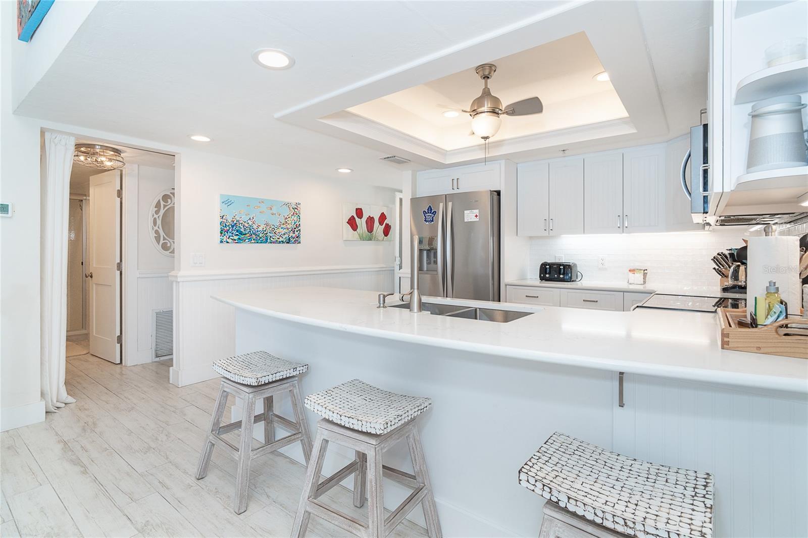 A villa da sua ilha dos sonhos aguarda! Uma das melhores vistas disponíveis no Palm Island Resort. Encontre a beleza nesta vila para combinar com as belas praias e o pôr do sol da Soutwest Florida. A ilha é acessível apenas por balsa ou barco e localizada entre Ft. Myers e Sarasota. Aproveite o som das ondas do convés superior com vistas panorâmicas ou a tela inferior na varanda com vistas panorâmicas também! Primeiro, observe que esta villa tem ladrilhos leves de madeira ao longo do tempo, é brilhante e fácil de limpar. A cozinha está aberta às áreas de jantar e de estar e equipada com utensílios de aço inoxidável, características extras, bancadas de superfície dura e uma altura do balcão fica na barra. O quarto principal possui janelas de 3/4 de comprimento para ver a praia e uma porta de acesso à varanda com chuveiro de ladrilho neutro. Todos os detalhes estão cobertos! A área do loft possui uma grande sala de bônus atualmente mobiliada com 2 gêmeos e cama de dia conversível. O espaço do loft frontal criou para trabalhar com uma vista ou para dormir convidados extras na cama Murphy. O amplo armazenamento acabado fechado no andar superior. Saia da porta deslizante da varanda superior para obter uma visão de um pássaro do espetacular pôr do sol noturno do Golfo. Pegue sua toalha de praia e faça o seu sonho da ilha se tornar realidade hoje!