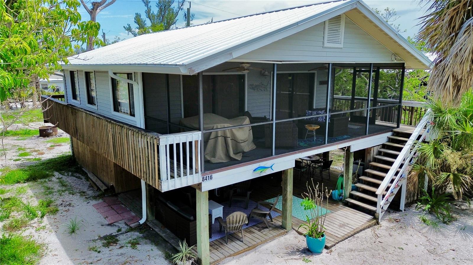 Esta casa de 2 quartos e 1 banhado na Little Gasparilla Island fica a terceira volta da baía e ancoradou com vistas da baía do deck inferior ou da triagem superior em Lanai. A doca é uma doca comunitária, primeiro a chegar primeiro a ser servido e a taxa anual é de US $ 250. A casa possui uma grande triagem em Lanai, combinação de salas de cozinha, dois quartos de tamanho agradável e banheiro completo. O ar condicionado tem cerca de 7 anos e o telhado tem cerca de 10 anos. Sob a casa, existem duas grandes áreas de armazenamento; Um tem espaço para todos os seus brinquedos de praia, equipamento de pesca e ferramentas, o outro tem uma lavadora e secadora e muito espaço para outras necessidades de armazenamento, e há outro quarto que pode ser usado como um terceiro quarto. Sob a casa, onde está totalmente decorado, é um ótimo lugar para sair e relaxar e há um chuveiro ao ar livre para desfrutar ao voltar da praia ou um dia no barco. Little Gasparilla Island é uma ilha de barreira sem ponte, acessível apenas por táxi aquático ou barco particular e não possui supermercados, restaurantes ou lojas, mas temos 3 quilômetros de praia sem aglomeração para passear e coletar conchas de mar e dentes de tubarão, nadar, peixe ou sentar com um bom livro e suavizar o sol. É uma curta caminhada ou carrinho de golfe até a praia. Há uma grande pesca nas águas circundantes para cantar com cantarina, snook, pargo, truta e muito mais. Dirija seu carrinho de golfe nas trilhas arenosas e conheça todos os vizinhos amigáveis. Então, traga seu maiô e chinelos e comece a viver o sonho da ilha.