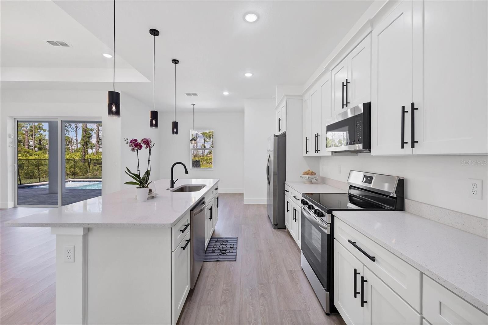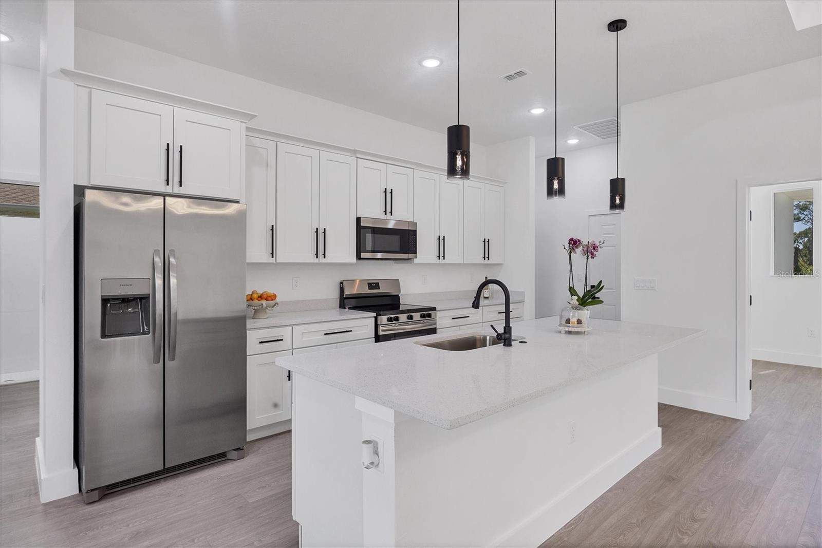 Nova casa de construção em Rotonda Meadows, projetada com estilo moderno e conforto diário em mente. Esta residência de um andar oferece 3 quartos, 2,5 banheiros, uma cova versátil e uma piscina privada-ideal para entretenimento e relaxamento. A suíte primária apresenta um espaçoso closet e um banho inspirado em spa com pias duplas e um chuveiro. A cozinha de conceito aberto inclui uma ilha de quartzo, aparelhos premium e flui perfeitamente para a área de estar principal. Em toda a casa, o piso de tábua de vinil de luxo adiciona durabilidade e estilo. Um Den fornece espaço flexível para um escritório em casa ou retiro criativo. Saia da sua piscina privada em um deck de pavimentação, com um meio banho conveniente no pátio. A área da cozinha ao ar livre está totalmente preparada e pronta para terminar o seu gosto. Destaques adicionais incluem janelas resistentes ao impacto, tetos altos e acabamentos elegantes que reúnem conforto e sofisticação. O lote diretamente atrás da casa também está disponível para compra separadamente ou juntos, criando uma oportunidade expandida e vista do lago Esta comunidade popular está em uma parte relativamente tranquila da cidade, longe da agitação, mas a poucos minutos das ótimas compras, refeições, vários campos de golfe e as praias intocadas do Golfo. Os fãs de esportes desfrutarão da curta distância de dois campos de treinamento de primavera. Perto das trilhas e trilhas para andar de bicicleta e caminhada. Pronto para o prazer imediato, esta casa é a mistura perfeita de estilo, qualidade e função. Não perca esta rara oportunidade de possuir uma casa excepcional no paraíso!