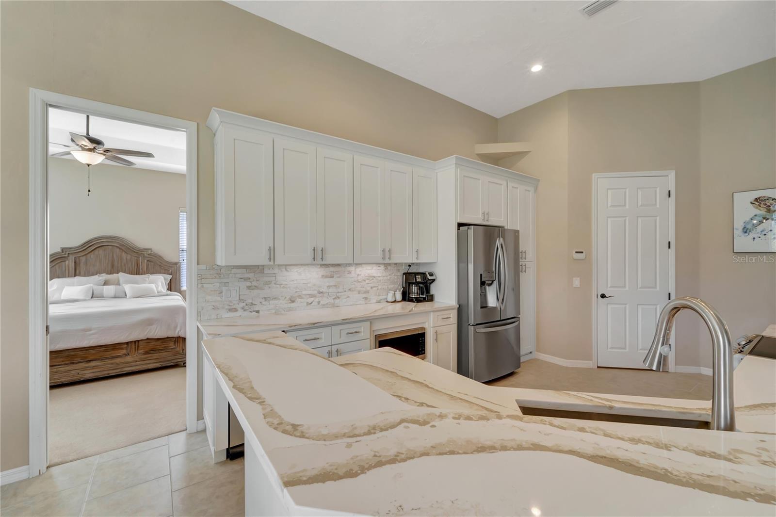 Chave de turno mobiliado para começar a viver esse estilo de vida da Flórida imediatamente ou seria um ótimo aluguel (30 dias min). 3 quartos, 2 banheiros, garagem de 2 carros com piso epóxi, 1732 m². Planta espaçosa, tetos de 12 'nas principais áreas de estar, portas de bolso sólidas de 8'. Portas de Lanai telescópicas. Cozinha personalizada com armários de shaker de 42 ", bancadas de quartzo, backsplash de pedra, eletrodomésticos, compactadores de lixo, iluminação de gabinete. Grande sala de jantar formal, bem como um recanto de café da manhã com vidro aquático. Quarto principal com teto de trey, seus e seus armários. Banho mestre com vaidade dupla, balcão de granito e passeio no chuveiro Lote.
