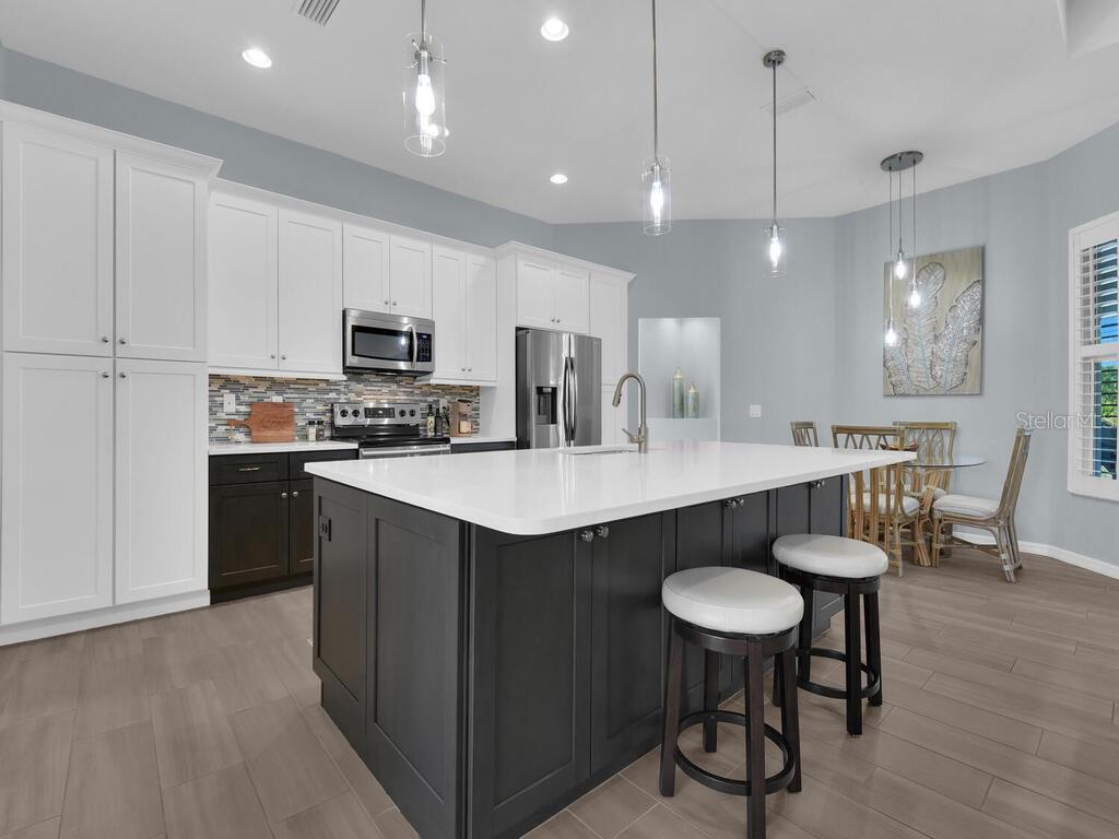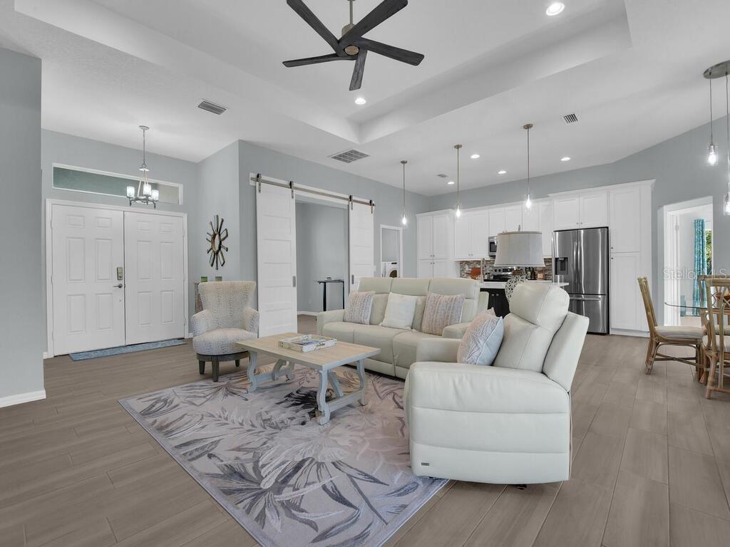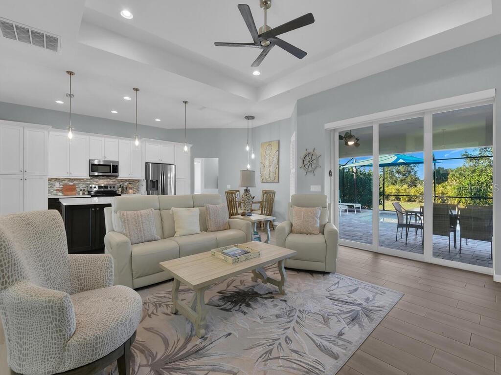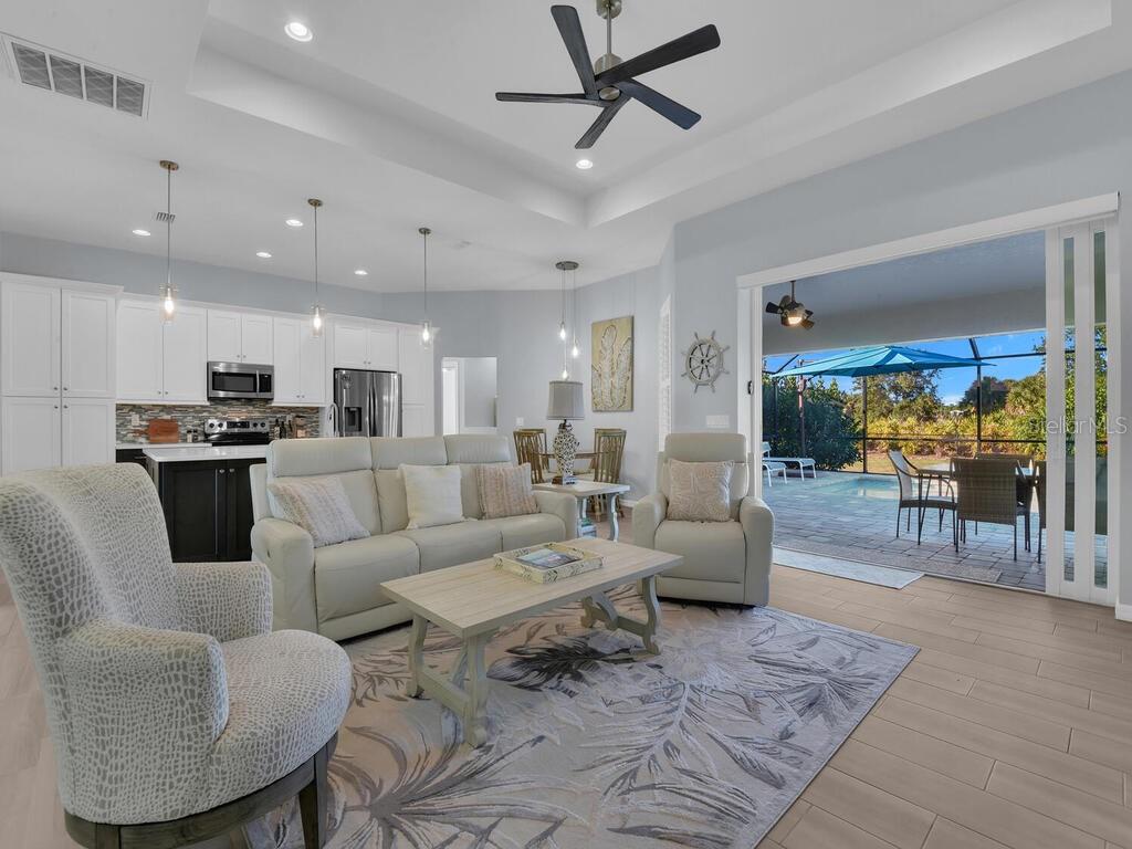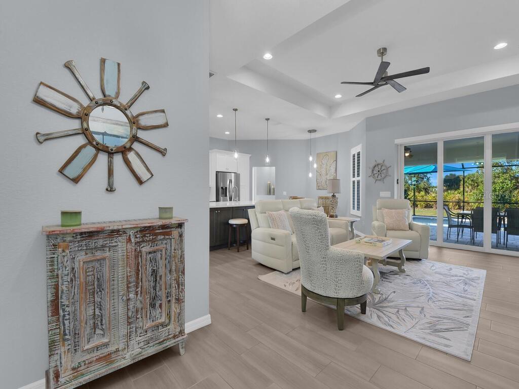Desfrute da vida elevada na Flórida, na pacífica comunidade costeira de Placida, onde esta casa com piscina cuidadosamente projetada combina elegância moderna com conforto diário. A casa oferece três quartos espaçosos e dois banheiros lindamente decorados, ideais para uma vida descontraída e divertida. Portas de entrada duplas dão-lhe as boas-vindas, conduzindo a um espaço flexível que se adapta facilmente às necessidades do seu estilo de vida. O piso de tábuas flui por toda a casa, criando uma aparência coesa e contemporânea que é elegante e de baixa manutenção. O coração da casa é a cozinha deslumbrante, completa com uma grande ilha de quartzo, armários com fechamento suave, prateleiras removíveis e eletrodomésticos de aço inoxidável - perfeitos para jantares casuais ou para organizar reuniões memoráveis. Portas de vidro deslizantes abrem para um oásis privativo ao ar livre, onde um deck pavimentado circunda uma piscina cintilante com uma espreguiçadeira relaxante. Uma cozinha de verão ao ar livre completa o espaço, tornando-o ideal para refeições ao ar livre e entretenimento sob o sol da Flórida. A suíte principal privativa serve como um verdadeiro retiro, com teto falso, closets de cedro e banheiro privativo com pias duplas e box amplo de grandes dimensões. Dois quartos adicionais de bom tamanho, cada um aprimorado com armários de cedro personalizados, compartilham um banheiro de hóspedes projetado com bom gosto. Janelas resistentes a impactos e uma garagem anexa para dois carros proporcionam maior segurança e conveniência. Situada na desejável comunidade de Rotonda Sands, esta casa está cercada por belezas naturais e um ambiente tranquilo. Esta propriedade excepcional oferece o melhor da vida costeira sofisticada. Agende sua exibição privada hoje e descubra tudo o que esta joia de Placida tem a oferecer.