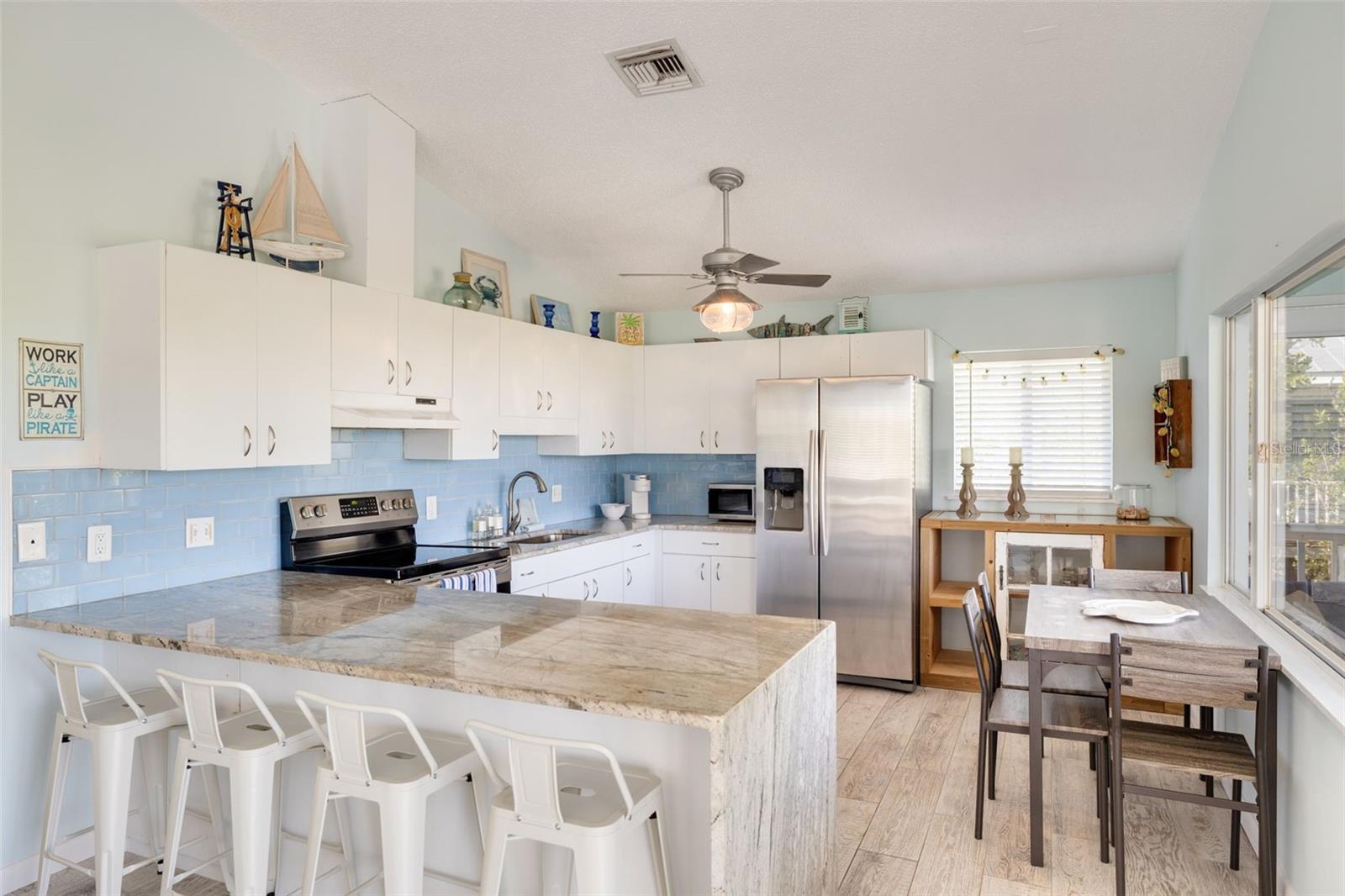 Aninhado entre o Golfo Sereno do México e o porto de Placida no exclusivo Little Gasparilla, uma ilha de barreira acessível apenas de barco, esta casa promete um retiro como nenhum outro. Se sua fuga ideal envolve pescar, se aquecer em uma praia isolada e testemunhar a magia das eclifes da tartaruga marinha, então este é o refúgio que você está procurando. Construído em 1993, esta residência em estilo de palafita possui três quartos, dois banheiros e aproximadamente 1.180 pés quadrados de espaço de vida meticulosamente criado. Entrando nesse oásis, você descobrirá um interior totalmente mobiliado, adornado com a decoração costeira, envolvendo você no ambiente autêntico da vida na ilha. O primeiro nível revela um espaçoso e privado ENSuite, medindo aproximadamente 17x18, completo com seu próprio banho-um retiro ideal para sogros ou convidados que buscam um toque de isolamento. A construção elevada não apenas transmite um encanto exclusivo, mas também oferece benefícios práticos, como armazenamento adicional, estacionamento de carrinho de golfe, um chuveiro ao ar livre e uma sala de serviços públicos de tamanho generoso. Subindo para o segundo nível, você será recebido por uma varanda de envoltório, com a parte frontal examinada e aprimorada por um ventilador de teto refrescante. As portas deslizantes revelam um espaço de vida aberto e cheio de luz sob tetos abobadados, com dois quartos, outro banheiro, uma sala familiar considerável e uma cozinha com amplo espaço para comer. O piso de azulejo em forma de madeira, armários de cozinha brancos, balcões de granito e utensílios inoxidáveis misturam perfeitamente elegância moderna com charme costeiro. O Hideaway de Gaspar oferece docas comunitárias para pessoas com embarcações pessoais, juntamente com um calçadão mais novo, orientando você à praia intocada. Esteja você cambaleando em um tarpão na vizinha Boca Grande Pass ou passeando ao longo da costa coletando dólares de areia e dentes de tubarão, esta residência convida você a saborear o verdadeiro estilo de vida da ilha. Dê o próximo passo para fazer deste sonho a sua casa, ligando hoje para uma turnê privada. Abrace o fascínio da ilha que vive na ilha de Little Gasparilla!