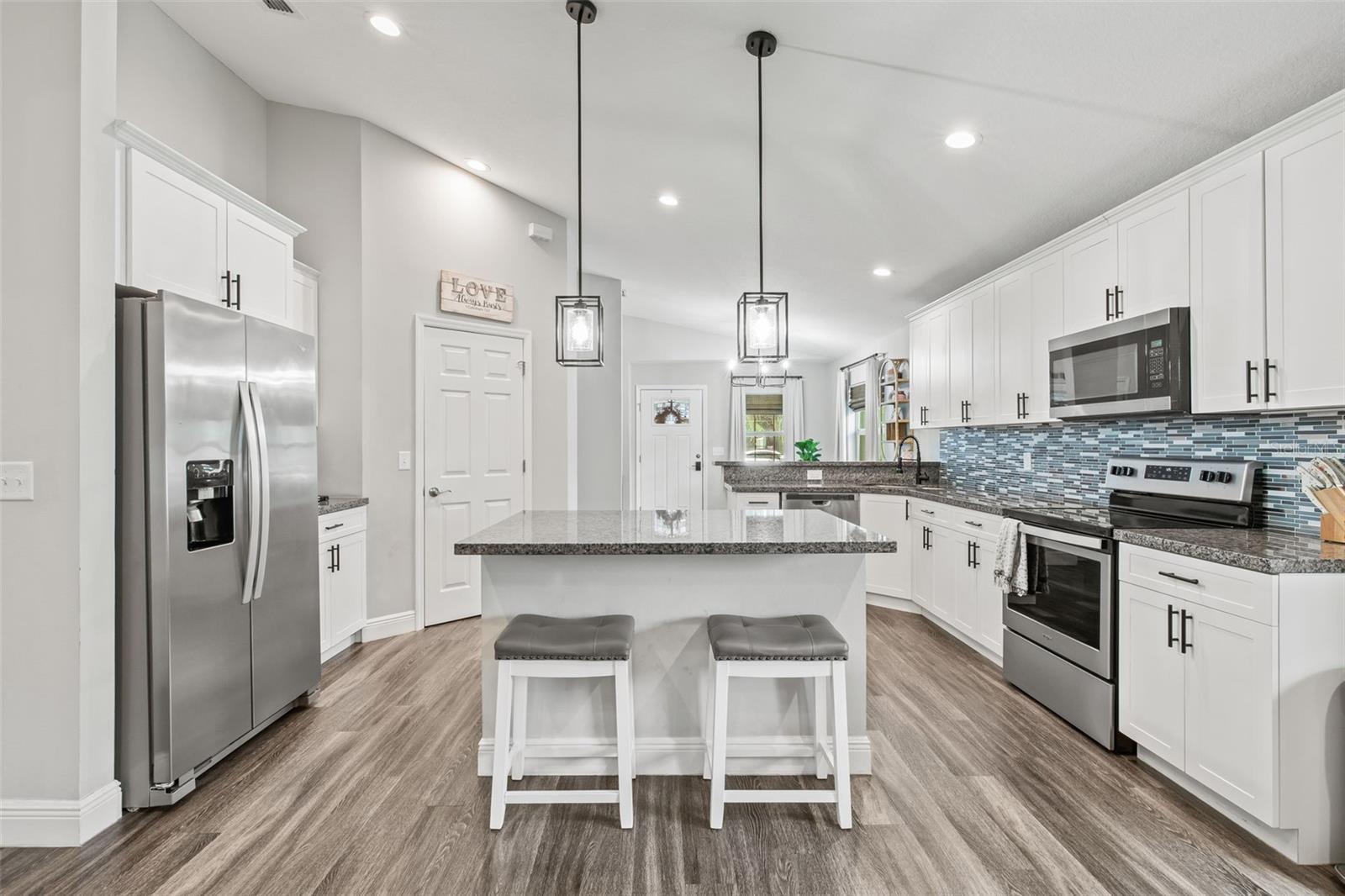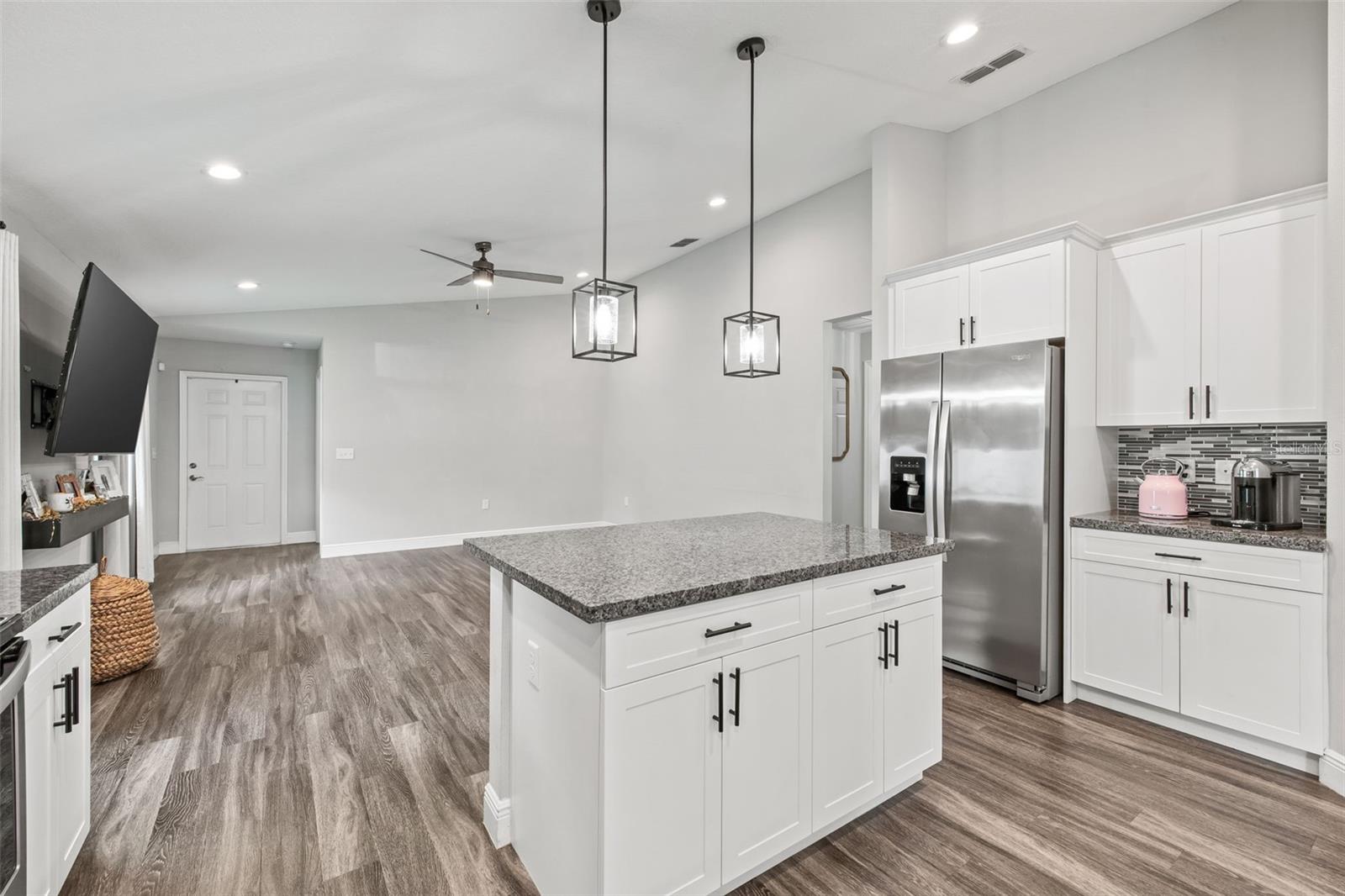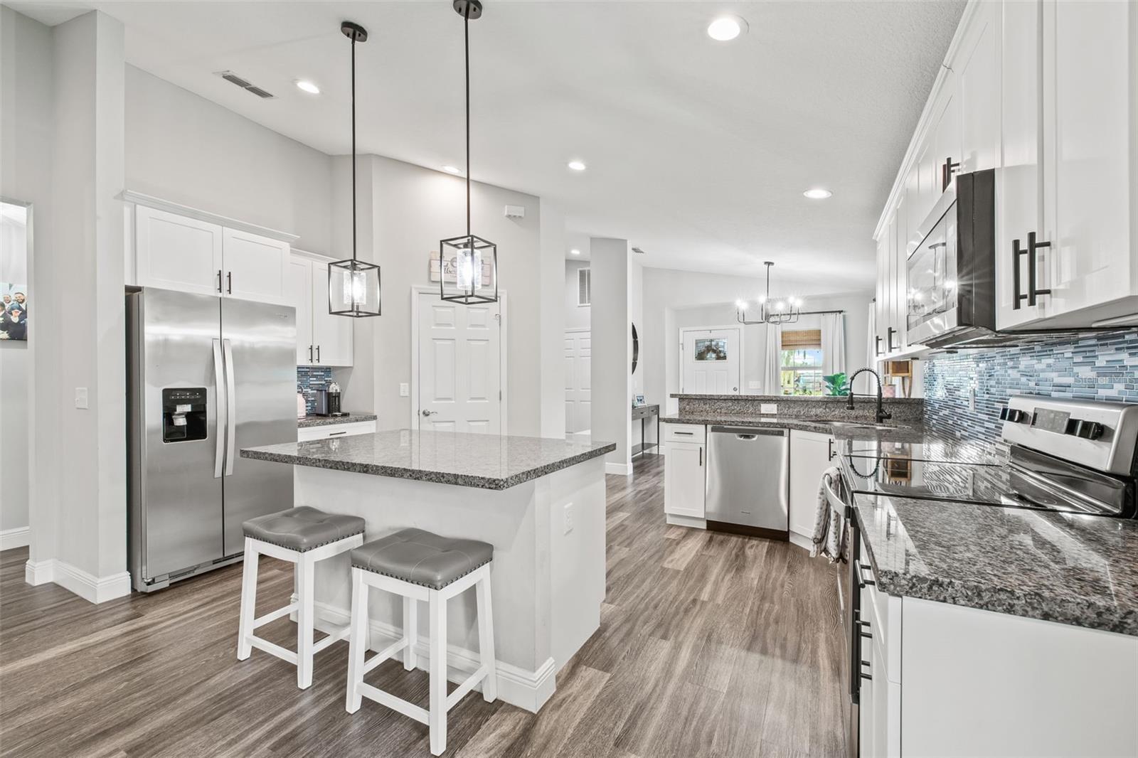 Procurando uma nova casa sem esperar? Não perca essa rara chance de possuir uma residência encantadora no coração de Plant City. Construído em 2018, esta casa de 3 quartos e 2 banheiros não possui HOA nem taxas de CDD! Entre para descobrir acabamentos modernos e uma cozinha deslumbrante com bancadas em granito brilhantes, uma ilha e armários brancos desejáveis. Com amplo armazenamento para todos os seus itens essenciais culinários, esse espaço é perfeito para entreter amigos e familiares na área de estar de conceito aberto. A espaçosa sala de estar é ideal para noites de cinema ou assistir ao seu time de esportes favoritos. O expansivo quarto principal inclui armários duplos e muito espaço para um conjunto de quarto inteiro. Relaxe em sua luxuosa banheira de imersão ou chuva de chuva no banheiro principal. A planta baixa oferece excelentes opções de armazenamento, incluindo uma área de utilidade dos sonhos com uma zona de queda personalizada e uma lavanderia separada. A casa vem com cortinas romenas e cortinas de bambu personalizadas. Desfrute de uma vida ao ar livre em seu quintal totalmente cercado, perfeito para grelhar em dias ensolarados da Flórida ou brincar com seus animais de estimação no pátio lateral. Com sua construção de 2018, esta casa nova vem com um telhado mais recente, sistema HVAC e aquecedor de água, economizando você de substituições caras. Localizado a poucos minutos das compras, restaurantes e a uma curta distância da Plant City High School!