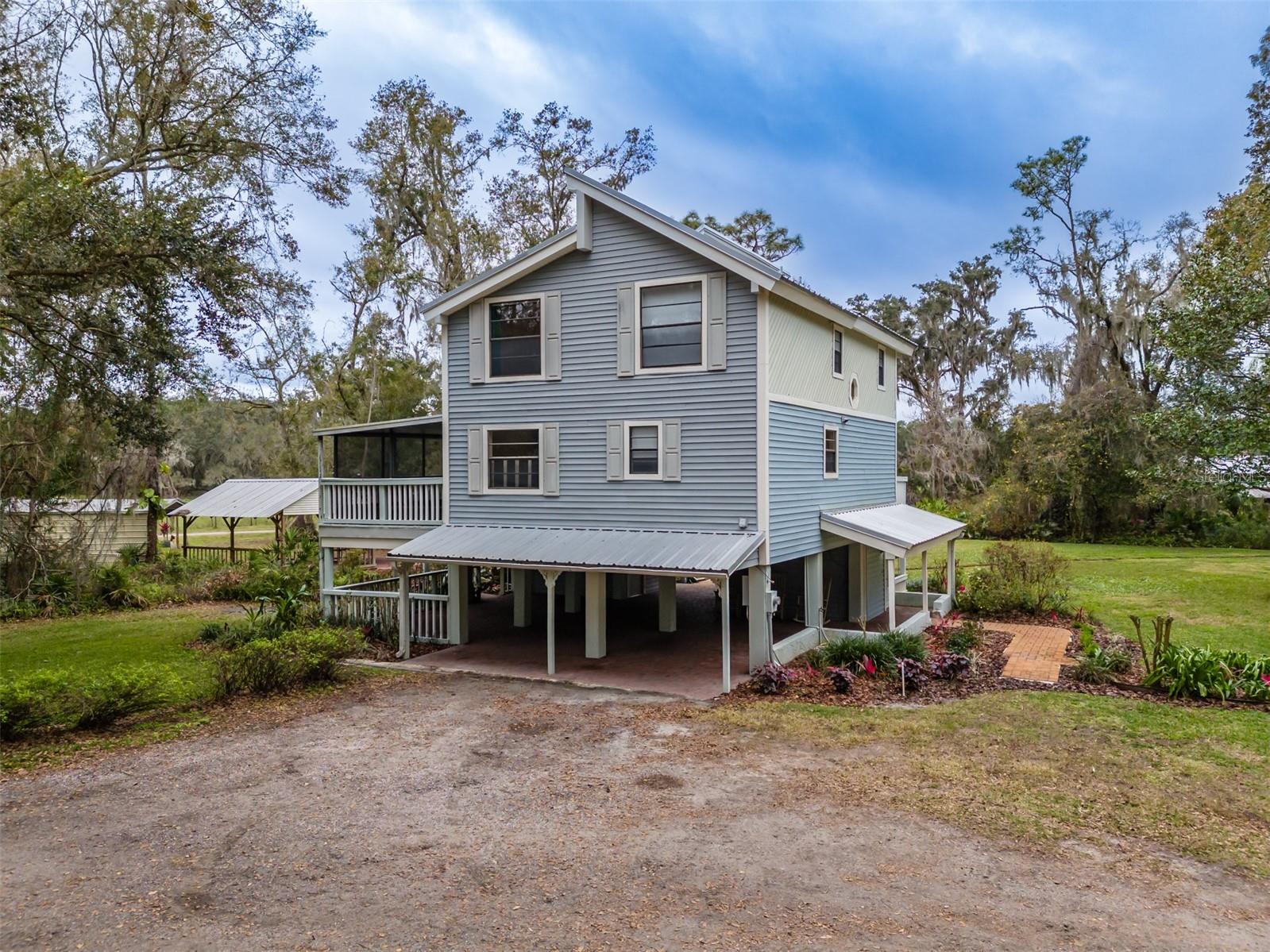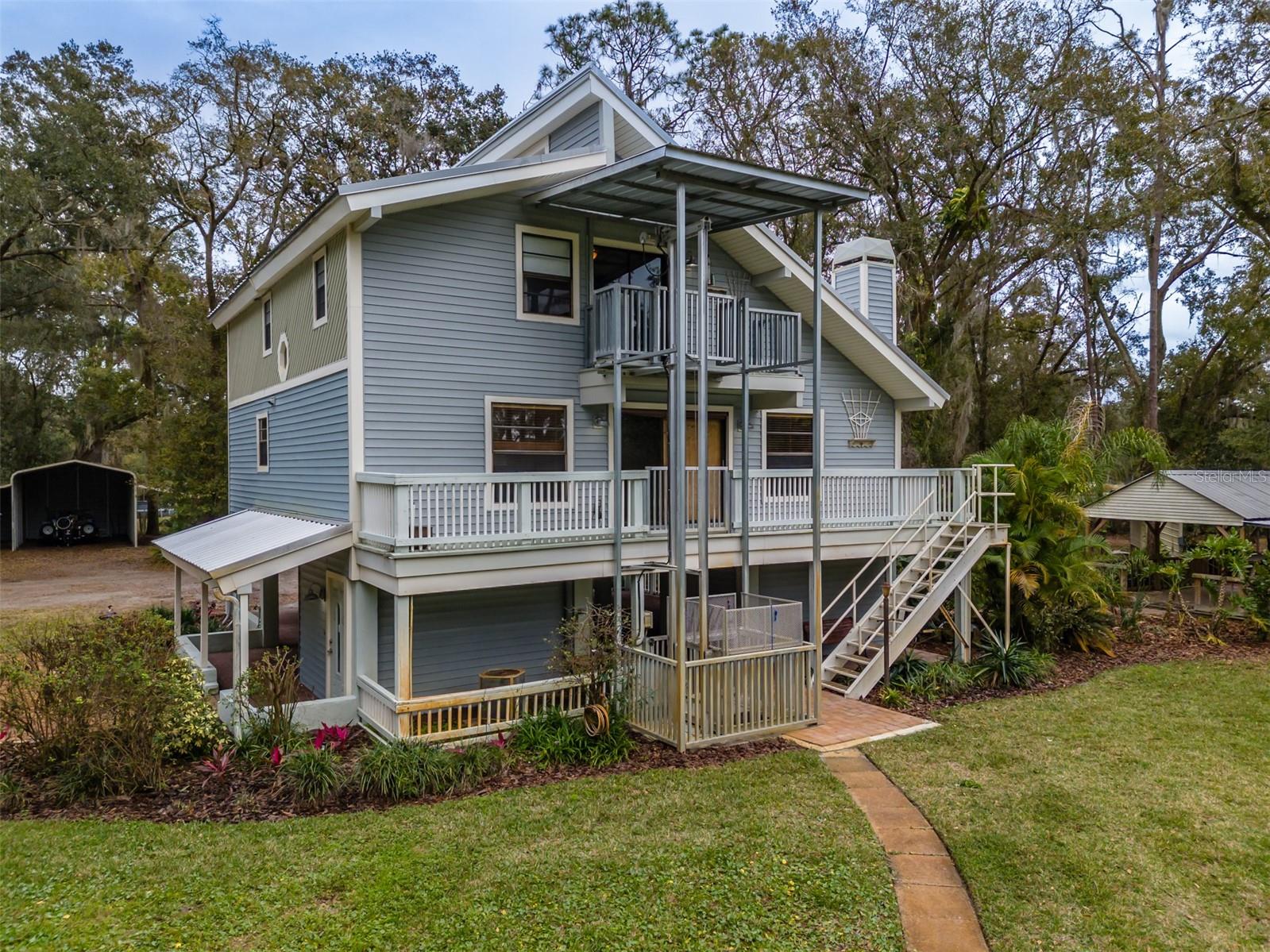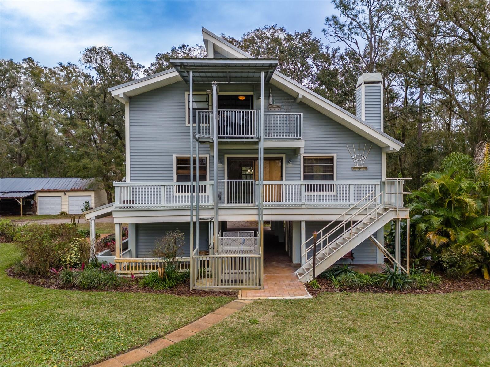 Uma ou mais fotos foram virtualmente encenadas. Bem-vindo ao lar! Este tipo único de 3 quartos/2,5 banheiros fica em 4 acres e está situado em uma longa entrada ladeada por carvalhos, pinheiros e muito mais. Oferece vários espaços de estar ao ar livre, incluindo um alpendre aberto com arrecadação adicional e casa de banho completa com combinação banheira/chuveiro. Fora da varanda principal, você encontrará diversas outras áreas cobertas que oferecem uma extensão da vida ao ar livre, ideal para reuniões familiares ao ar livre. O proprietário já tinha uma cozinha externa configurada. Ao percorrer a propriedade, você encontrará 2 galpões adicionais para armazenamento e 2 garagens metálicas de 3 vagas, ideais para carrinhos de golfe, armazenamento de barcos e estacionamento para trailers com tomada de 50 A. Na parte de trás da propriedade, você encontrará uma oficina de metal (aproximadamente 40' x 62') com sistema de monotrilho suspenso e 2 depósitos dentro da oficina. Abra a porta da frente e você encontrará uma escada de madeira que leva à área de estar principal, completa com lareira, varanda com vista para a parte de trás da propriedade, escadas que levam até a varanda e um pátio externo ao lado do jantar. sala. A cozinha está completa com eletrodomésticos, incluindo geladeira, lava-louças, fogão e micro-ondas. Fora da cozinha você encontrará a lavanderia e a despensa. Você também encontrará seu lavabo logo na sala, no caminho para o terceiro andar. O terceiro andar é onde você encontrará o quarto principal e o banheiro, além de 2 quartos adicionais e um banheiro completo. Fora do quarto principal há outra varanda com vista para o quintal. A casa também oferece um sistema de elevador externo que pára em todos os 3 andares, que pode ser usado para levar mantimentos ou outros itens para o 2º e 3º andares. A casa é construída em cedro e envolta em revestimento, os pilares são construídos em concreto e o piso é isolado por baixo. Esta propriedade também inclui um amaciador de água e sistema de irrigação. Considere ainda a possibilidade de incluir o primeiro andar para mais espaço habitacional ou uma suite Sogra, que já tem casa de banho completa embutida. Há tanto para oferecer que não pode ser destacado apenas pelas fotos. Venha ver por si mesmo!