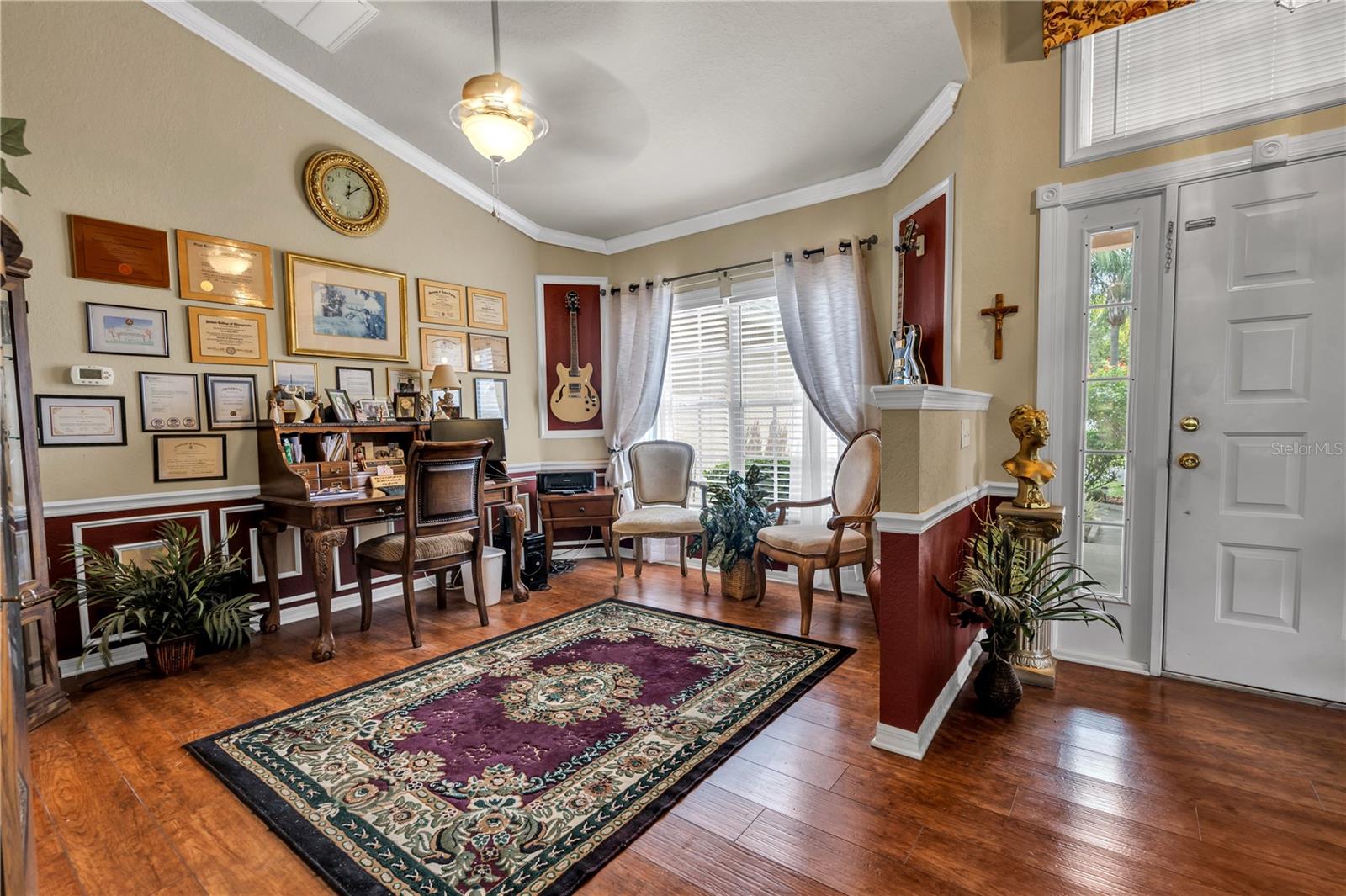 Condição intocada e pronta para se mudar! Lot de canto com grandes carvalhos. Novos pisos de tábua de vinil impermeáveis por toda parte, exceto os quartos. Carpete novo em quartos. Sala de jantar formal, vestíbulo espaçoso, sala de família alegre e alegre com lareira. Cozinha grande com novas bancadas, nova pia e torneira, bar de café da manhã, iluminação embutida, estação de trabalho da ilha central, lava -louças mais recente. Uma enorme área de café da manhã com ventilador de teto, janelas de imagens e controles deslizantes para a Florida Room. Plano de quarto dividido. A suíte master inclui ventilador de teto, dois armários de walk-in, carpete novo, piso de tábua de vinil em banho, banheira e chuveiro separado, pias duplas com bancada de mármore e novas torneiras. Lareira na suíte Mater. Ambos os quartos secundários têm ventiladores de teto e armários grandes. O banho de hóspedes possui combinação de banheira/chuveiro e pia de vaidade única. Outras atualizações incluem nova tinta interior e exterior, nova bomba de A/C/Heat 2018, novo teto de telha dimensional de 30 anos em 2019, medidor de água separado para sistema de irrigação e sala de Flórida totalmente fechada. Localizado em um lote de canto de 1/3 de hectare no bairro desejável da Floresta Esmeralda. Atualizações recentes adicionais incluem molduras de coroa em toda a casa, juntamente com o revestimento de Wanes, trilho de cadeira, tinta recente interior e exterior. A sala traseira fechada pode ser uma metragem quadrada adicional se a A/C for adicionada. Sem vizinhos traseiros, lavanderia de tamanho agradável e ele e ela andam em armários no grande quarto principal. Sete novos ventiladores de teto. Duas lareiras com toras elétricas. Todos os tetos recém -pintados. Venha ver por si mesmo !!!
