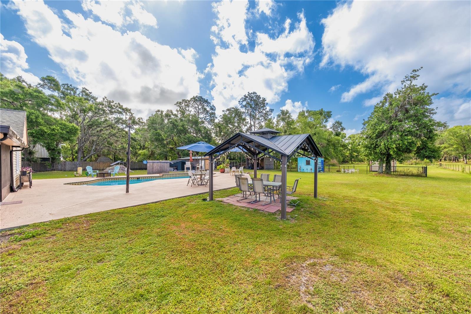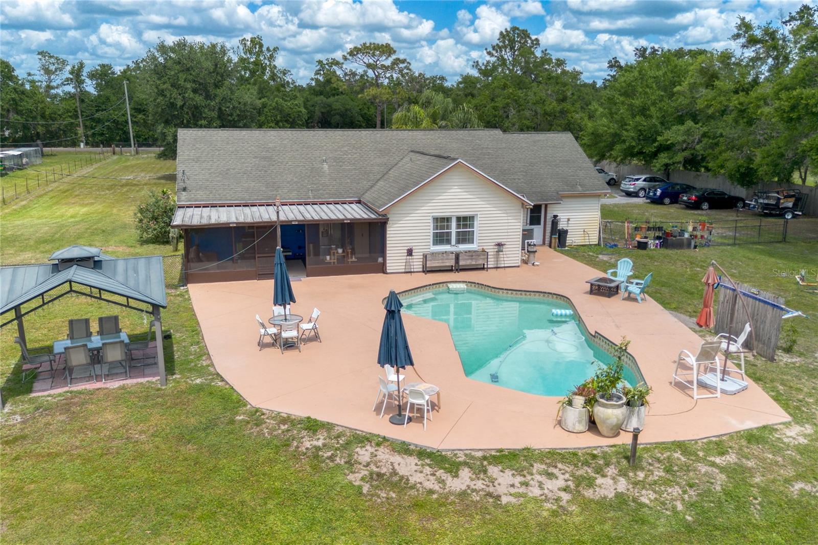 ** Farm Life Fabulous! ** Experimente o melhor país que vive em quase 4 acres com este lar de 3 quartos e 2 banheiros atualizados, oferecendo 1.872 pés quadrados de espaço de estar, uma piscina refrescante no solo e elegibilidade do financiamento do USDA! Traga seus animais, brinquedos e hobbies - há espaço para tudo! Cavalos e gado são bem -vindos nesta propriedade totalmente cercada. Desfrute de manhãs tranquilas na espaçosa Lanai, ou hospede reuniões inesquecíveis nas duas áreas de estar separadas, sala de jantar formal e espaço maciço ao ar livre. A área da piscina é o sonho de um artista! ** Atualizações recentes incluem: ** - Novas portas francesas - bloco de estacionamento expandido - Novo microondas e lava -louças - Novo amaciador de água e filtro de ferro - pátio resenhado - Langueira de retenção expandida - Novo revestimento de vinil - Novo campo de drenagem de grandes dimensões (2023) - Atualizada bomba de poço, tanque e linha de água (nos últimos 10 anos) -Janelas de vinil de dupla sedimento com eficiência energética (nos últimos 10 anos) RECURSOS ADICIONAIS: *Lavanderia interna *, *Sala de armazenamento *, *10x14 galpão de metal *, *10x20 galpão de madeira *e uma *barraca de execução *para seus animais. A * calçada circular pavimentada * adiciona apelo ao meio -fio e amplo espaço de estacionamento. Este retiro clássico no estilo do rancho com atualizações modernas não durará muito-** agende sua turnê privada hoje! **