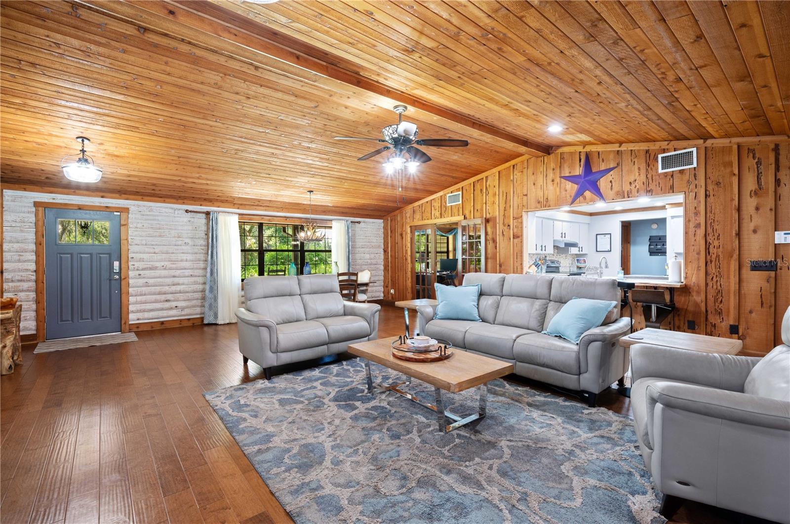 SEM taxas HOA ou CDD~Conveniente para Tampa e I-4~Descubra o charme desta linda cabana de madeira, uma joia de 4 quartos e 3 banheiros espalhada por 2.750 pés quadrados aquecidos e situada em 2,19 acres de terreno pitoresco. Esta casa foi parcialmente remodelada recentemente e possui uma planta dividida convidativa, com piso de madeira e azulejos, tetos altos e acabamentos rústicos em cedro e cipreste. A cozinha atualizada é um oásis culinário com bancadas de granito com pia embutida, balcão de madeira personalizado, eletrodomésticos de aço inoxidável, ilha removível de madeira maciça e piso de madeira. Desfrute de jantares formais na elegante sala de jantar ou trabalhe confortavelmente em casa, no escritório com portas francesas. A ampla suíte principal é um retiro por si só, completa com armários duplos e banheiro privativo com pias duplas e box amplo. Uma suíte para sogros com entrada privativa oferece espaço adicional e privacidade para os hóspedes. A sala Flórida é um bônus que oferece um espaço flexível para jogos, uma sala de jogos ou uma sala de artesanato. Relaxe na piscina de água salgada aquecida a gás, adicionada em 2023, com recursos adicionais, como controles de smartphone Pentair, luzes de festa LED, seis jatos, bancos, deck, sistema automático de varredura automática e borbulhador. O deck da piscina possui portão de segurança para segurança da família ou convidados. As comodidades exteriores incluem uma grande oficina (24x20) com 2 vãos e 2 portas de entrada, um celeiro (24x28) com energia, um telheiro para dois carros com arrecadação e calhas novas. Nova pintura externa também foi adicionada. Recursos práticos, como um gerador para toda a casa alimentado por um tanque de propano de 500 galões, nova bomba de poço, caixa de relé e tubo, e um sistema de água Culligan para toda a casa com torneira de osmose reversa, garantem uma vida perfeita. O celeiro aberto é perfeito para abrigar animais com energia e água. Uma garagem adicional com 2 vagas é perfeita para estacionar seus barcos, trailers ou outros brinquedos. A propriedade também inclui uma hipoteca assumida VA à baixa taxa de juros de 2,375%. Traga seus animais para esta propriedade totalmente cercada e comece a viver a vida dos seus sonhos hoje mesmo. Não perca esta oportunidade extraordinária! Agende já seu passeio.