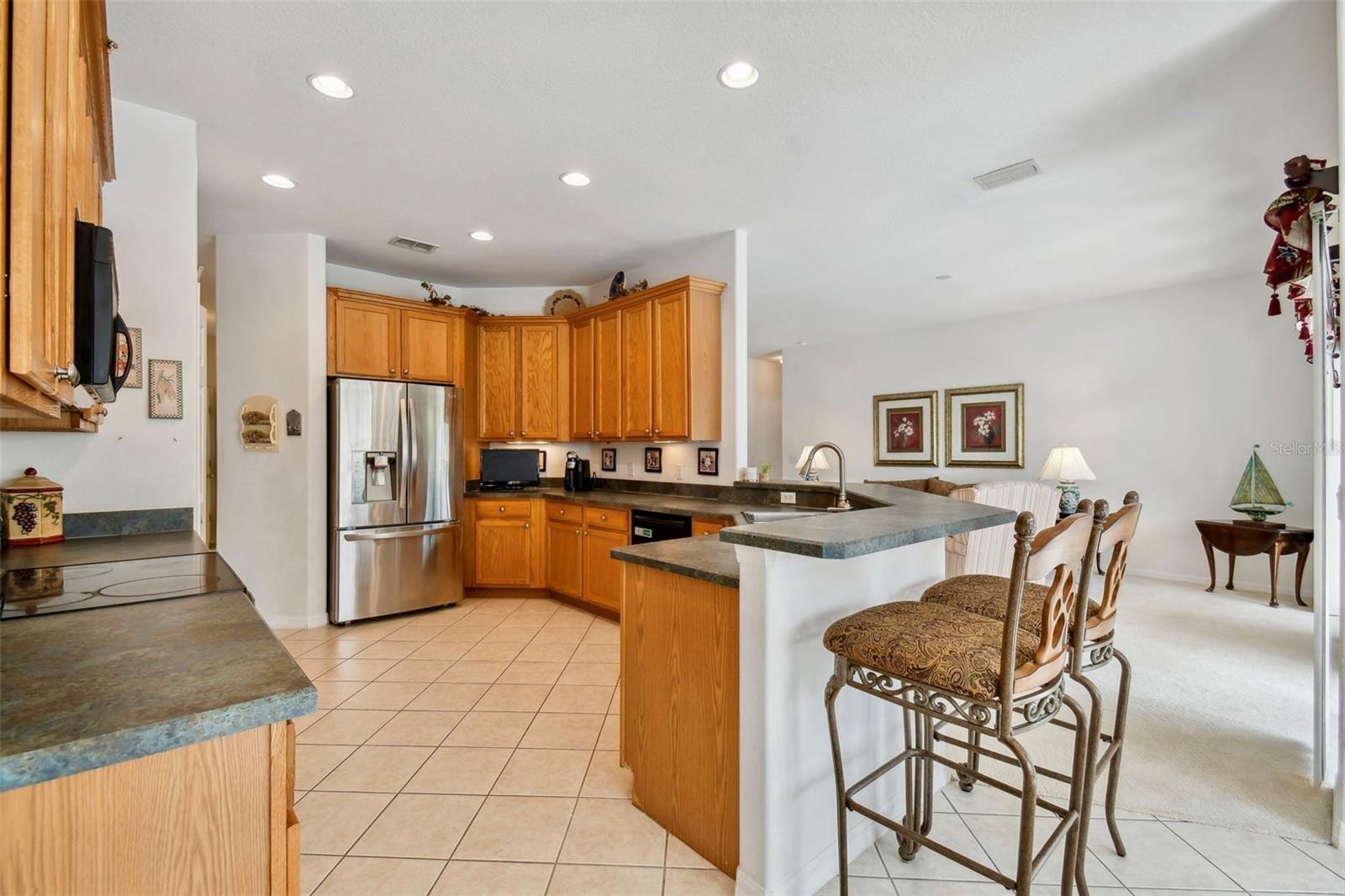 Melhor valor para uma casa com spa/piscina em Solivita!!! Charmoso 2 Quartos mais modelo DEN Mozart com CARRETEL DE ÁGUA SALTA no loteamento Terra Vista da Solivita em lote de grandes dimensões. TELHADO NOVO instalado em JULHO DE 2023. EXTERIOR PINTADO em 2020. Arrumos podem ser usados como TERCEIRO QUARTO. Carpete em todos os quartos, sala Florida e arrumos com CERÂMICA na DIAGONAL na cozinha, lavanderia e banheiros. Ótimo PISO ABERTO com muita luz natural. A cozinha possui armários de 42 polegadas, iluminação RECESSADA, balcão para café da manhã, despensa e eletrodomésticos pretos com geladeira MAIS NOVA. O quarto Florida é um ótimo espaço para relaxar e possui controles deslizantes para a varanda. A SUÍTE PRIMÁRIA é de tamanho generoso e possui JANELAS SAÍDAS, acesso deslizante à varanda e um BANHEIRO DE SUÍTE anexo com chuveiro, banheira de imersão separada, pias duplas com penteadeiras elevadas, armário de roupas de cama e closet grande. A planta dividida desta casa permite privacidade aos hóspedes com um segundo quarto adicional com banheiro completo adjacente no lado oposto. A grande varanda ESTENDIDA e TELADA é o seu retiro ao ar livre perfeito, onde você pode relaxar e desfrutar de um mergulho no carretel GUNITE de água salgada com uma paisagem exuberante ao seu redor. Lavanderia espaçosa com LAVADORA e SECADORA INCLUÍDOS e amplo armário/despensa. Porta de entrada frontal com inserção em VIDRO CHUMBO e laterais. VENTILADORES ATUALIZADOS em todos os quartos, sala Den e Florida. Garagem para DOIS CARROS COM NOVA PIA DE UTILIDADE. Solivita possui aproximadamente 150.000 pés quadrados de comodidades, incluindo 36 buracos de golfe profissional, 3 restaurantes, 14 piscinas aquecidas, 4 quadras de bocha, 4 quadras de shuffleboard, um campo e diamante de softball bem cuidado, 3 poços de ferradura, quilômetros de ciclovias e mais de 200 clubes residentes . Aproveite seus anos ativos neste pedaço de paraíso que chamamos de Solivita!!!