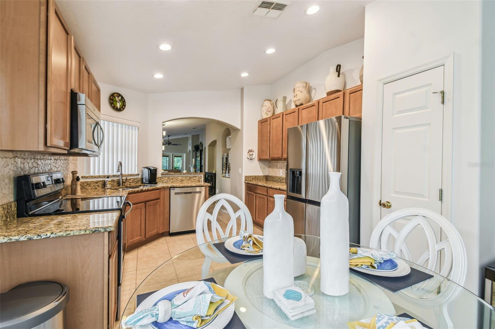 Você pode olhar para o resto, mas este é o melhor! Descubra esta impressionante vitrine de 2 quartos e 2 banheiros, com um Den/Estudo versátil, situado em um canal pacífico e um lote de conservação com pátios de frente e traseira lindamente personalizados. Nenhum tapete para facilitar a manutenção e uma sensação moderna. Entrando pela porta da frente de vidro com chumbo, você notará a área de estar e jantar de conceito aberto possui um teto abobadado e oferece vistas pitorescas através das portas francesas personalizadas para a extensa Lanai com a extensa água e vistas de conservação-perfeitas para relaxar ou divertir. A cozinha possui um acolhedor canto de café da manhã, bancadas em granito, um elegante backsplash de telha e aparelhos novinhos em folha (2024). A suíte primária é destacada pelo luxuoso piso de tanque de vinil, um banho de suíte com balcões de granito, pias duplas, um chuveiro espaçoso e um grande closet. O segundo quarto é destacado pelo luxuoso piso de tábua de vinil de alto brilho e está convenientemente localizado perto do banheiro de hóspedes. A casa também inclui um estudo/covil dedicado com ladrilhos de cerâmica, ideal para trabalhar em casa. As atualizações adicionais incluem um novo telhado e calhas (2023), New HVAC (2021), nova tinta externa (2024) e novos aparelhos (2024), nova abertura de porta de garagem (2024), janelas coloridas e está conectada para um sistema de segurança. Lavanderia interna (lavadora e secadora incluída) aumenta a conveniência da casa. A Solivita é conhecida por sua vibrante comunidade de mais de 55 anos, oferecendo uma abundância de atividades e comodidades para adultos ativos. Esteja você desfrutando de uma rodada de golfe, envolvendo aulas de fitness ou simplesmente passeando ao longo de caminhadas cênicas, esse bairro promove um estilo de vida ativo e gratificante com mais de 200 clubes, esportes e atividades. Aproveite o clube da comunidade, o campo de softbol, 14 piscinas, uma pista de caminhada interna e muito mais. Todo dia oferece algo novo para explorar e aproveitar! Esta casa também apresenta fácil acesso a lojas próximas, restaurantes e cuidados de saúde, oferecendo o equilíbrio perfeito de conveniência e privacidade. Não perca esta propriedade excepcional com atualizações modernas e vistas serenas da água - escemue sua exibição hoje!