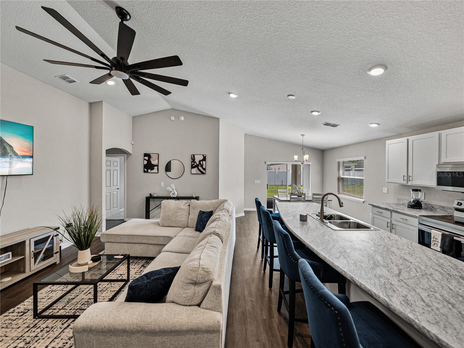 Bem-vindo à sua casa de sonho na comunidade procurada e bem cuidada de Auburn Cove. Esta casa lindamente mantida de quatro quartos e dois banheiros com uma garagem de dois carros em Polk City oferece a mistura perfeita de conforto e conveniência. Você desfrutará de uma vida tranquila a poucos minutos da I-4, permitindo viagens fáceis para Orlando, Tampa e atrações próximas. O piso plano aberto apresenta tetos abobadados, criando um ambiente de vida espaçoso e arejado. A grande ilha da cozinha serve como peça central para reuniões, preparação de refeições e refeições casuais. O quarto principal é um verdadeiro retiro com um closet e um banho de banho com uma banheira de jardim e chuveiro. Saia para um espaçoso Lanai com vista para um belo e espaçoso quintal. Como bônus, a comunidade está convenientemente localizada perto da pavimentada Auburndale Teco Trail e do Auburn Cove Community Dog Park. Não perca a oportunidade de possuir uma fatia de tranquilidade com confortos modernos. Programe sua exibição particular hoje.