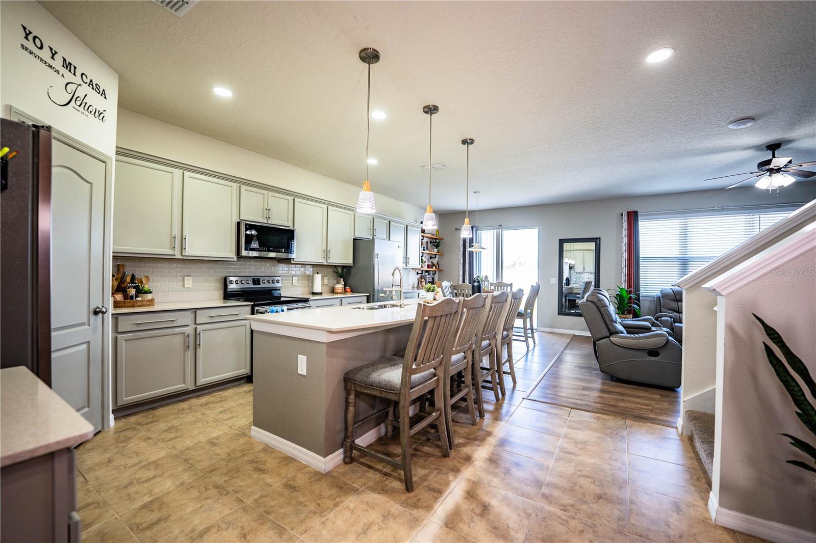 Drástica redução de preço de $ 46.000. Vendedor motivado. Venha ver esta deslumbrante casa de 2.600 pés quadrados com 4 quartos, 3 banheiros e um quintal totalmente cercado - perfeita para entretenimento e vida familiar. Ao entrar, você é recebido por uma bela e espaçosa área de estar com piso laminado que flui perfeitamente para a cozinha ampliada. A cozinha possui armários elegantes, uma grande ilha com bancadas de quartzo, iluminação de designer, backsplash de azulejos e geladeira e freezer separados – uma verdadeira peça de exibição para qualquer chef. A cozinha abre-se para duas espaçosas áreas de estar e uma sala de jantar, criando o layout perfeito para reuniões ou noites relaxantes. Portas de vidro deslizantes levam ao quintal cercado com uma impressionante varanda de concreto de 11' x 40' - ideal para refeições ao ar livre, brincadeiras ou entretenimento. Um quarto no primeiro andar com banheiro completo próximo (equipado com box amplo) oferece flexibilidade para hóspedes ou vida multigeracional. No andar de cima, você encontrará uma generosa área de loft perfeita para sala de TV, escritório ou home office. A espaçosa suíte principal inclui closets duplos e um luxuoso banheiro privativo com pia dupla e box amplo. Dois quartos adicionais e outra casa de banho completa completam o segundo andar. Esta comunidade está convenientemente localizada perto das principais rodovias e estradas, proporcionando fácil acesso à Disney e Orlando, a leste, e às atrações de Tampa e às belas praias do Golfo, a oeste. Aproveite os benefícios de viver em Lakeland com acesso à Berkeley Charter School e a várias escolas particulares próximas. Ligue hoje para agendar sua exibição privada desta linda casa!