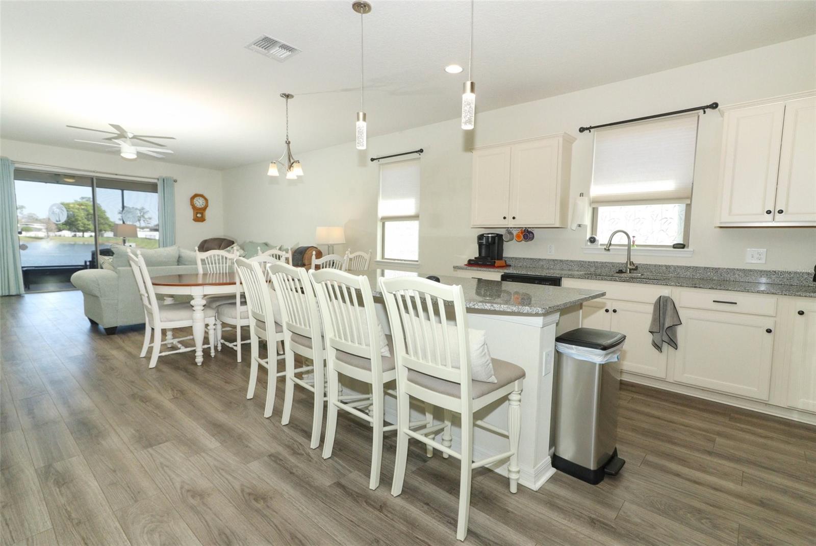 Confira a casa deste snowbird, ela está em ótimo estado e quase não foi habitada! Casa em frente ao lago no Fountain Park (sem vizinhos traseiros). Muitas atualizações para esta casa quando foram construídas e depois. Exibido no pátio da frente com uma porta de vidro com fechadura. O pátio dos fundos foi ampliado (20 X 10) e protegido por ventilador de teto para que você possa aproveitar a noite sem a natureza incomodar. As vistas do pátio são incríveis, com muitos pássaros para citar, e a calma do lago com fonte é a melhor! A área de estar principal e a cozinha possuem laminado LPV. O espaço flexível frontal é ótimo para uma sala de jogos, área de leitura ou escritório; uma parede inteira é estante de livros. Todos os eletrodomésticos ficarão com a casa e serão atualizados para Maytag. A casa tem calhas por todos os lados, para que você não perca a cobertura morta dos jardins. Esta casa tem o sistema de pragas embutido na parede HomeTeam e nenhum produto químico na casa. Eles também têm um título WDO transferível na casa. Não perca esta casa única! O vendedor declarou US$ 10.000. crédito no fechamento com um contrato aceitável.