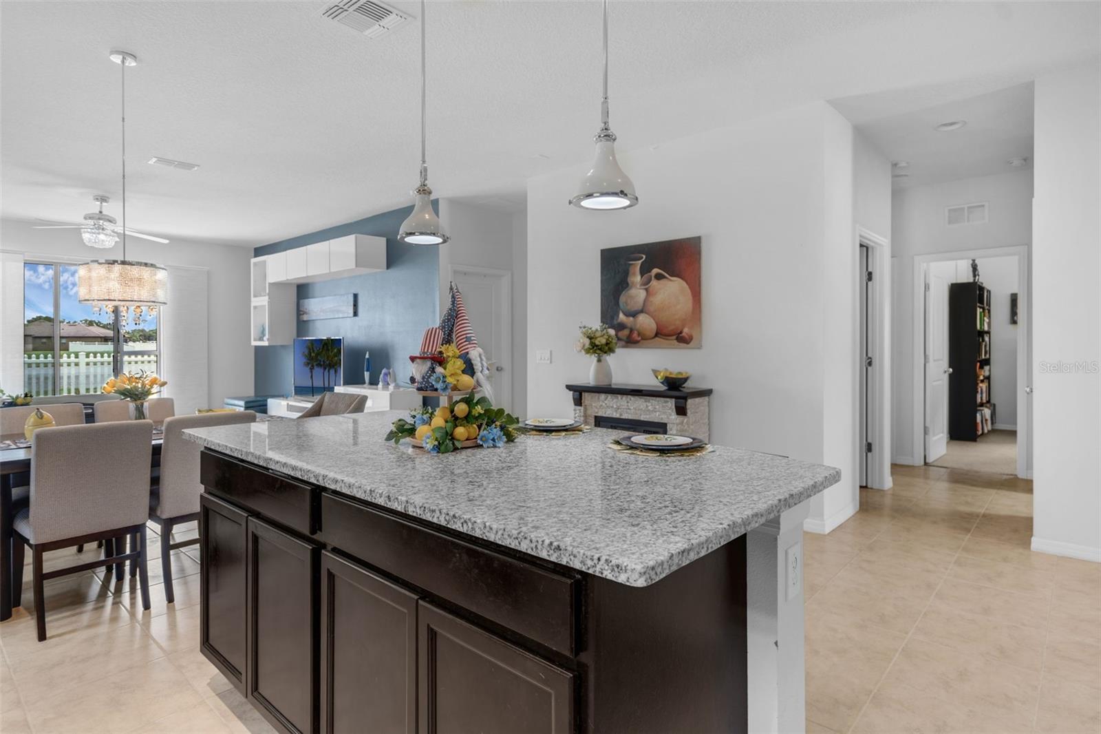 Esta casa lindamente mantida de 4 quartos e 3 banheiros está localizada na comunidade desejável do Fountain Park. Construído em 2019, ele apresenta um layout de conceito aberto com acabamentos modernos por toda parte. A cozinha oferece bancadas elegantes, armários amplos e flui perfeitamente para a área de estar - ideal para entretenimento. Desfrute de manhãs tranquilas com uma vista serena do seu quintal. A suíte primária inclui um banheiro privativo, e quartos adicionais oferecem espaço para hóspedes, família ou escritório em casa. Outros destaques incluem uma garagem para dois carros, recursos de casa inteligentes e taxas mensais de HOA baixas. Convenientemente localizado perto da I-4, com fácil acesso a Lakeland, Orlando e comodidades locais.