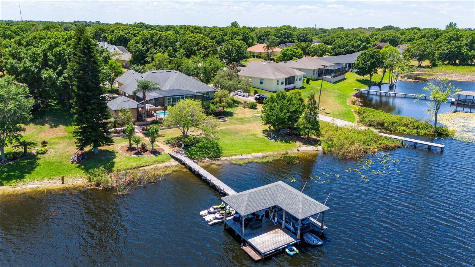 AJUSTE DE PREÇO! Seu pedaço do paraíso o aguarda! CASA COM PISCINA À FRENTE DO LAGO! Esta notável casa construída sob medida está localizada no Lago Agnes, um lago público de 377 acres, perfeito para passeios de barco, esqui, pesca do robalo ou apenas sentado na DOCA COBERTA observando o belo pôr do sol, esta casa com PISCINA Executiva foi imaculadamente mantida e oferece um RESORT LIKE espaço externo com VISTAS DESLUMBRANTES, cozinha ao ar livre e seu quintal leva até uma doca coberta com elevador para barco a motor e estacionamento para jet ski. Esta casa oferece 3.366 pés quadrados de área útil que inclui 4 QUARTOS, 3 BANHEIROS COMPLETOS, QUARTO FLORDIA, quarto Cabana ou “MAN CAVE”, salas de estar e jantar formais, uma SALA DE BÔNUS ou JOGOS e uma cozinha para refeições com bancadas em GRANITO e aparelhos de aço inoxidável. Os tectos altos com abundância de janelas e portas de correr oferecem VISTAS TREMENDAS e banham a casa com luz natural realçando a incrível sensação de amplitude. O interior desta casa é perfeito para receber familiares e amigos ou simplesmente relaxar. A planta dividida em três vias mais desejável, com escritório na frente da casa e sala bônus na parte de trás com lareira de pedra a gás, oferece comodidade e funcionalidade. Esta casa é o sonho de qualquer artista! A cozinha aberta com grande ilha possui muitos armários, pia funda, lava-louças e espaço para refeições de grandes dimensões para todos e área de refeições ensolarada com vista para a piscina e o lago. O quarto principal fica no nível principal junto com o segundo e terceiro quartos. A casa oferece pisos de madeira, tetos extra altos e sancas por toda parte. O quarto do andar de cima é grande e também pode servir como sala de mídia, escritório ou sala de bônus. O terceiro banheiro está localizado neste nível. Algumas atualizações adicionais incluem telhado e janelas em 2018, 2 novas unidades de AC em 2019. Marque hoje mesmo sua consulta para ver esta linda casa.