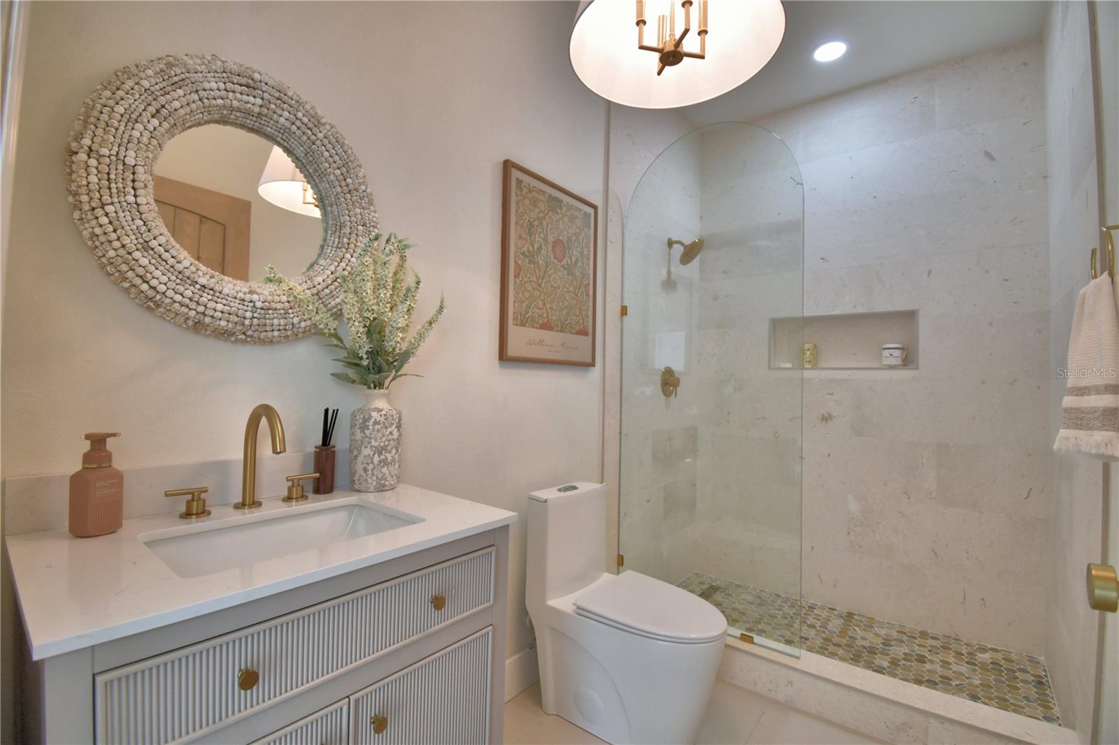 Esta casa personalizada recém-construída combina perfeitamente elementos de design moderno e orgânico com um toque mediterrâneo. Com quatro quartos e quatro banheiros, a residência apresenta acabamentos naturais de alta qualidade, incluindo calcário, mármore e quartzo, complementados por pisos de chuveiro em mosaico polido. O interior possui uma lareira elétrica e acessórios premium por toda parte, com cada quarto cuidadosamente projetado. A vida ao ar livre é aprimorada por vários espaços ao ar livre, enquanto o luxuoso banheiro inclui uma banheira redonda independente que também serve como chuveiro. Os destaques adicionais incluem portas de madeira de bordo natural com puxadores de latão, uma pia frontal de argila refratária sob a montagem e eletrodomésticos de cozinha Forno de última geração. A casa é adornada com requintados porcelanatos 24x24, janelas panorâmicas com baixo consumo de energia e um moderno jardim frontal inclinado com degraus de concreto. Recursos práticos, como calhas perimetrais, uma parede de mármore com detalhes em pedra e uma prateleira embutida no banheiro, uma entrada em arco de arenito, pias de banheiro caneladas com ferragens em tom de latão e uma despensa elevam ainda mais esta propriedade excepcional.