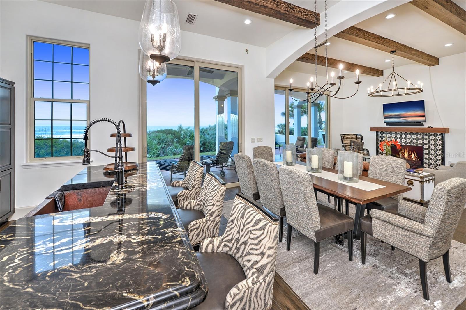 Descubra uma luxuosa casa à beira-mar na histórica cidade costeira de Ponce Inlet, situada em um terreno raro e difícil de encontrar em uma praia sem acesso de carro. Esta linda casa, construída há apenas cinco anos pelo estimado construtor Jack Nunez da ''Forever Homes'', apresenta atenção meticulosa aos detalhes, ostentando eletrodomésticos e acabamentos de alta qualidade, além de comodidades modernas, como aquecedores de água híbridos, sistemas de ar condicionado híbridos por zonas, e um elevador. Azulejos italianos e vigas de madeira expostas acrescentam charme atemporal ao interior, enquanto os espaços ao ar livre oferecem varandas e varandas cobertas com vistas deslumbrantes do oceano, perfeitas para relaxar ou se divertir. Os quartos privativos proporcionam privacidade aos ocupantes, criando retiros pessoais dentro de casa. Com vista para o mar em todos os cômodos, construção em blocos de concreto armado, janelas contra o impacto do furacão, portas de entrada duplas em ferro forjado e uma cozinha gourmet em dois tons com balcões de granito e eletrodomésticos de última geração, esta casa combina elegância com funcionalidade. Recursos adicionais, como lareiras a gás, ventiladores de teto fandelier, despensa de mordomo, piso de tábuas, tratamentos elétricos personalizados para janelas e uma suíte do proprietário com tetos em caixotões embutidos em madeira e um luxuoso refúgio de banho melhoram a experiência de vida. Situado em Ponce Inlet, os moradores têm acesso a atrações como o Farol Ponce Inlet, praias que aceitam animais de estimação, Centro de Ciências Marinhas, restaurantes, trilhas para caminhada, passeios ecológicos e muito mais, tornando este refúgio costeiro uma mistura perfeita de luxo e funcionalidade. Tipo de armário do quarto: Closet (quarto principal).