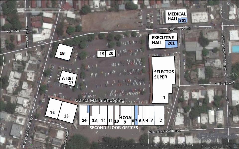 Espaços comerciais e de escritórios disponíveis para aluguer no Centro Comercial Santa Maria. Estão disponíveis espaços de varejo de 150 a 2.000 pés quadrados e espaços de escritórios de até 6.000 pés quadrados.